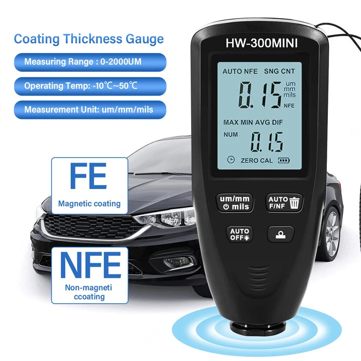 HW-300MINI высокоточный измеритель толщины покрытия противоскользящая пленка краски слой порошка толщиномер автомобильной пленки толщины
