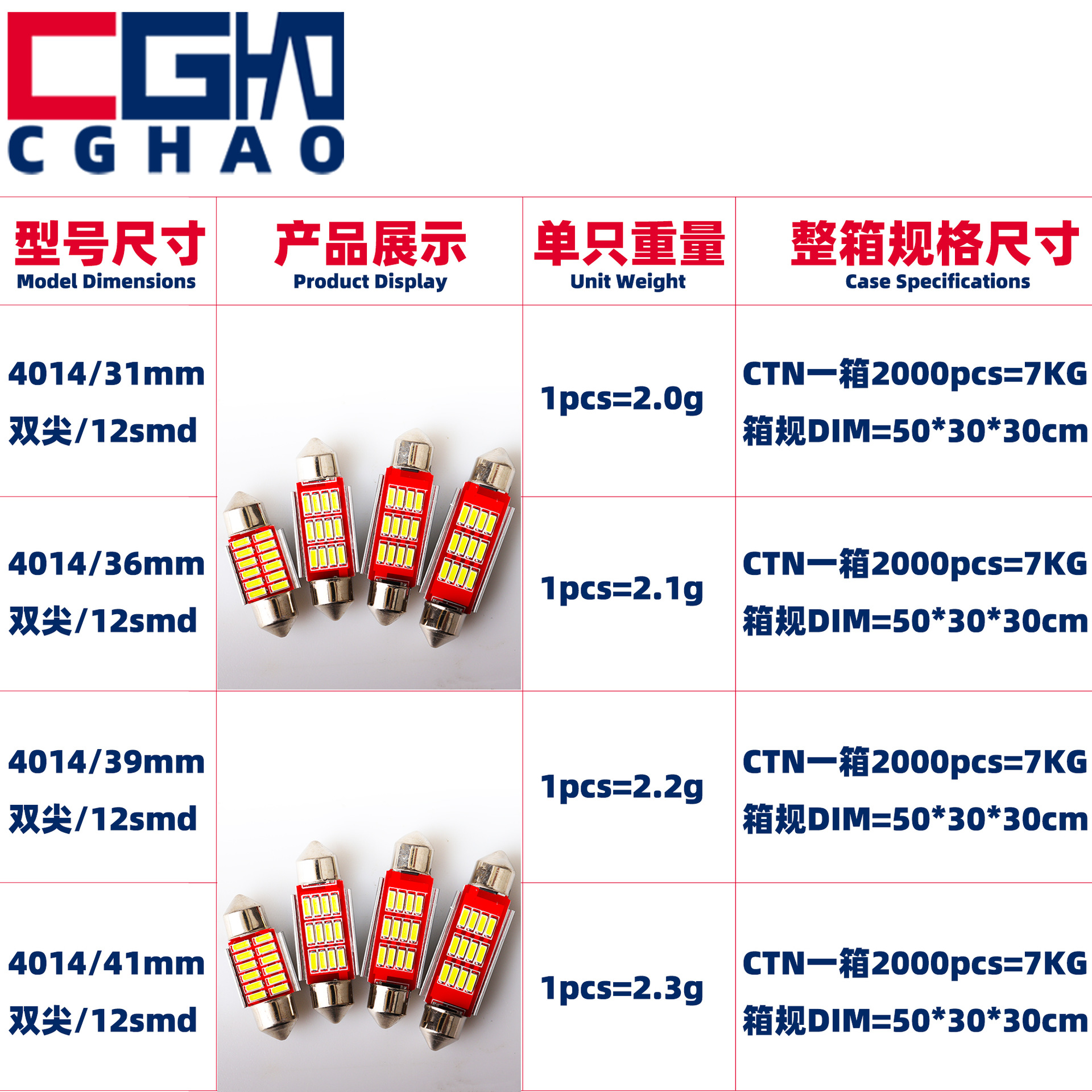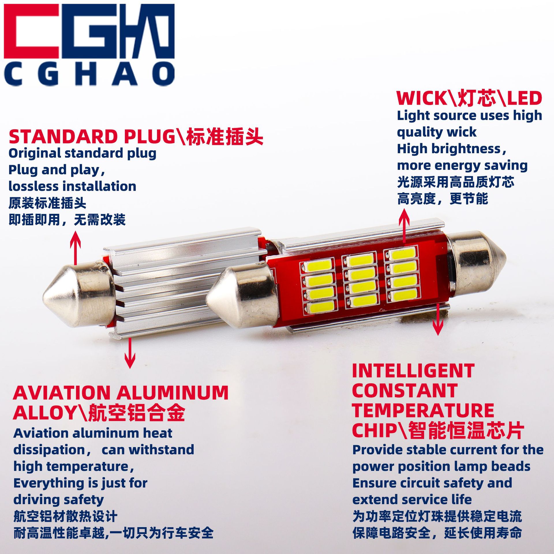 CGHAO двойной заостренные светодиодные потолочные светильники 4014 12SMD для чтения Обещающие полюса 31/36/39/41MM номерные лампы
