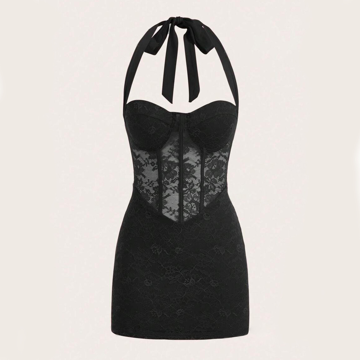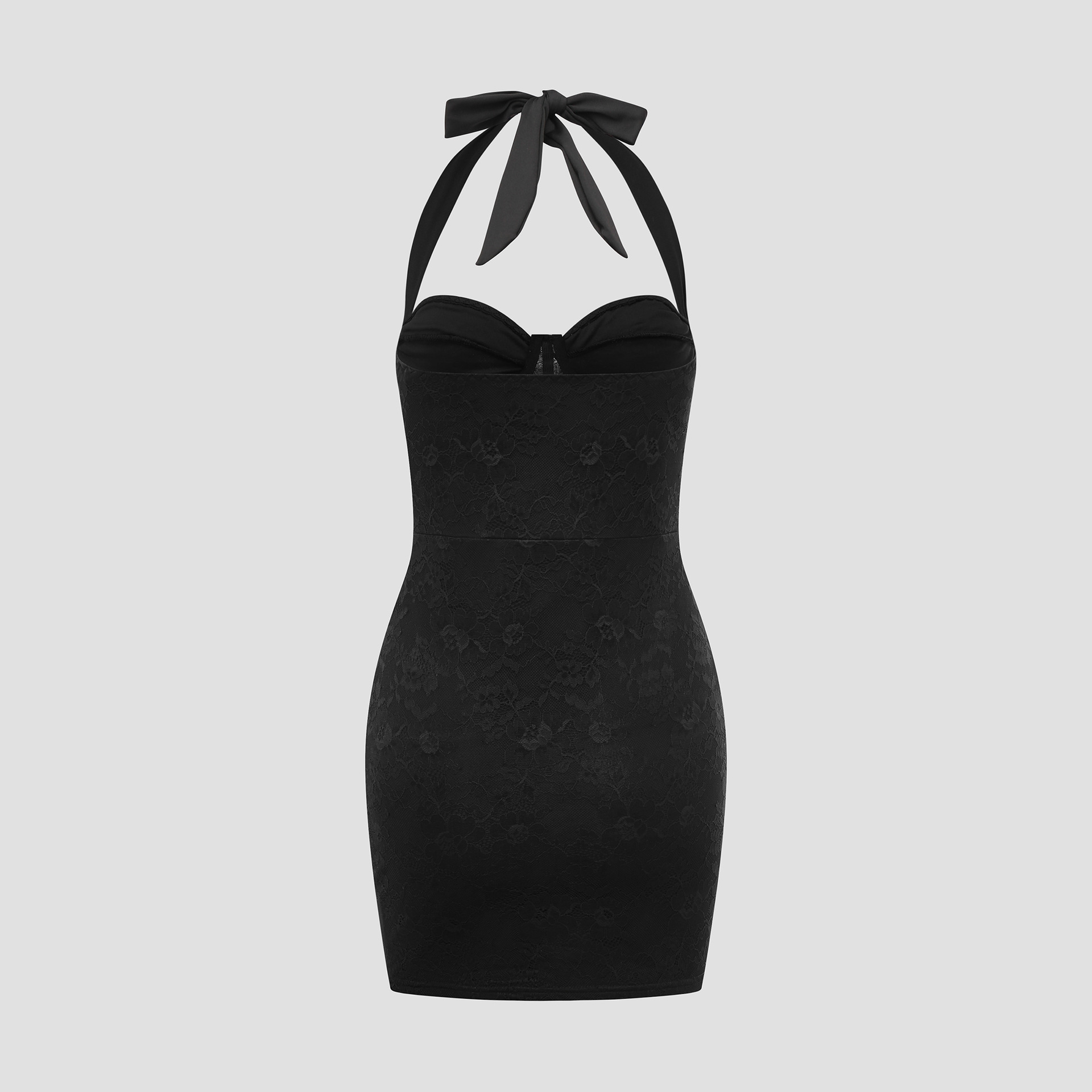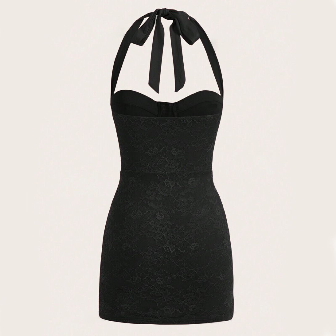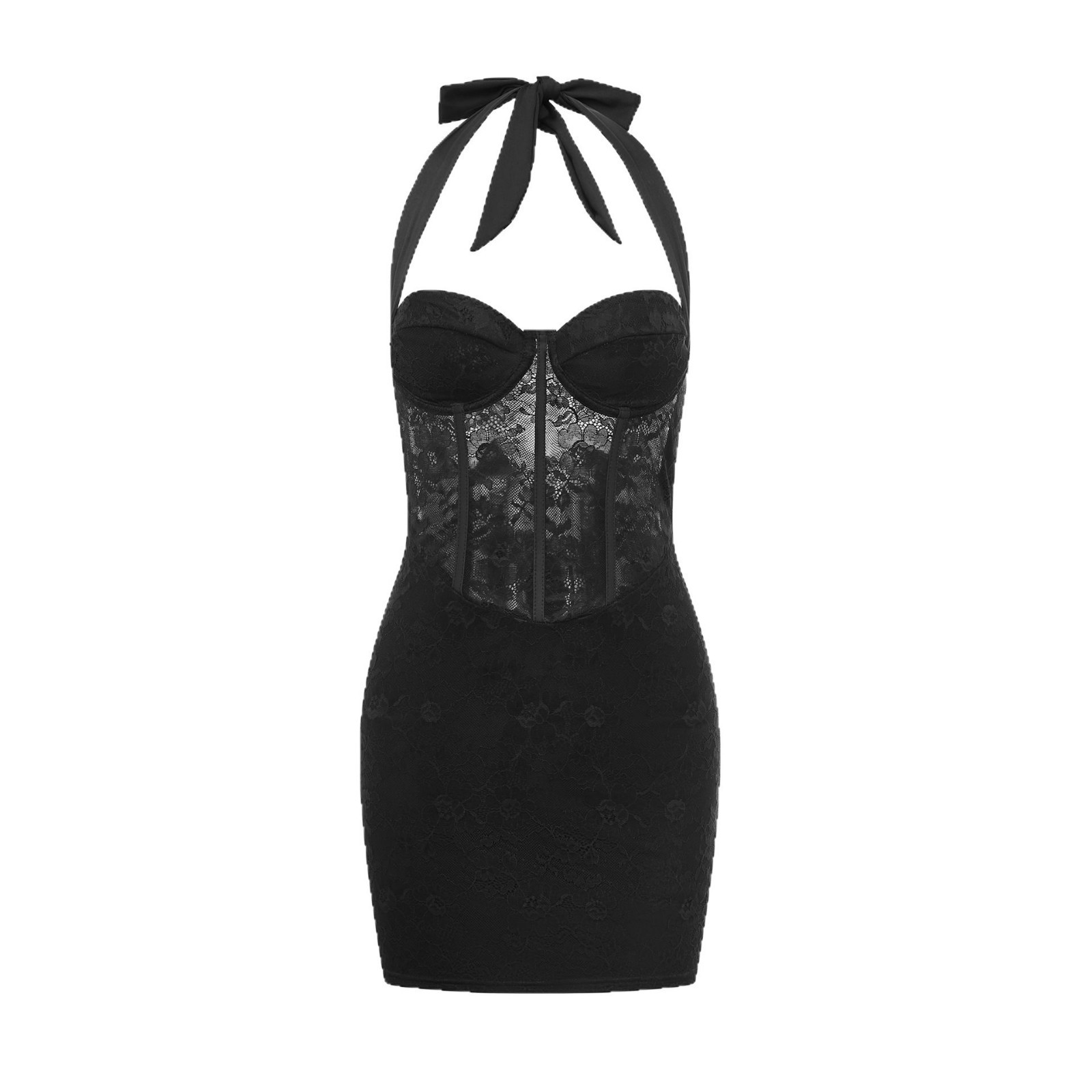 Трансграничная внешняя торговля Американская горячая девушка ветер сексуальная шея дизайн ощущение открытой спины обтягивания бедра короткое платье LY017