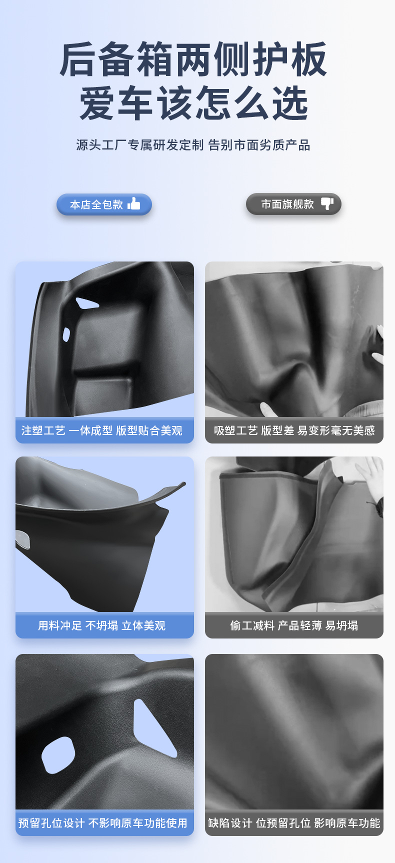 Подходит для новой версии Tesla Model Y: войлочные накладки на боковые панели багажника, полный комплект для модификации интерьера.
