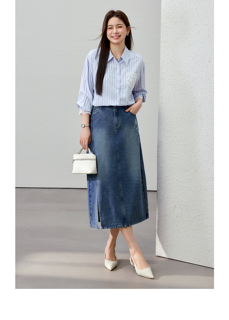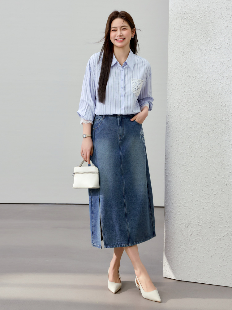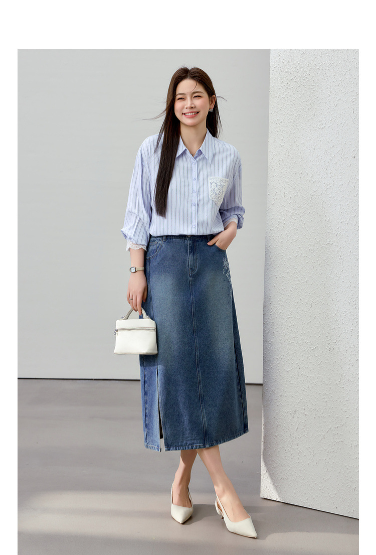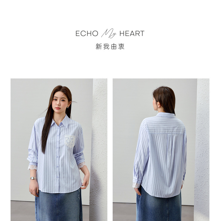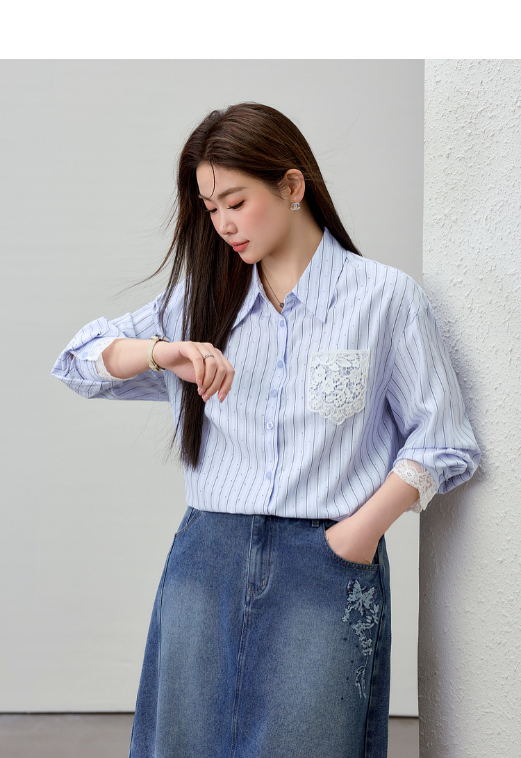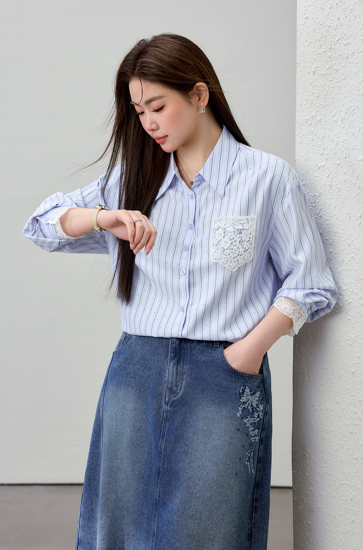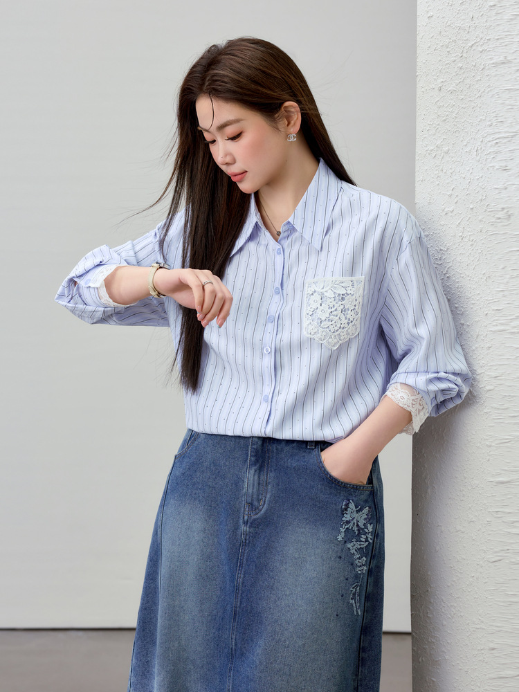 [Слабая дикая пробка в полоску с горячим бриллиантом рубашка] Полосатый большой размер женский толстый mm2025 весенний новый
