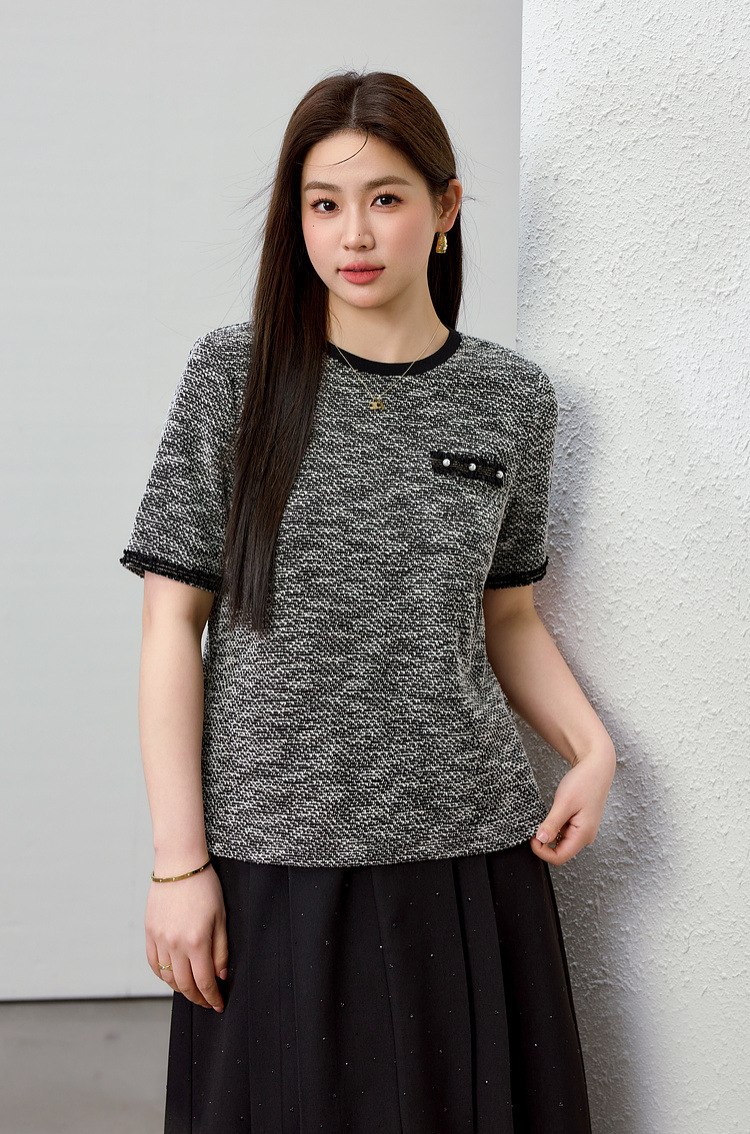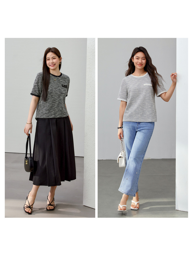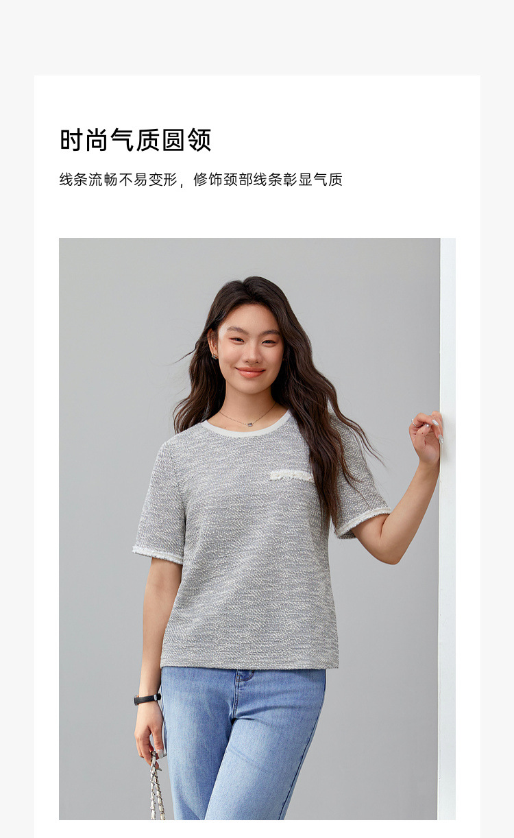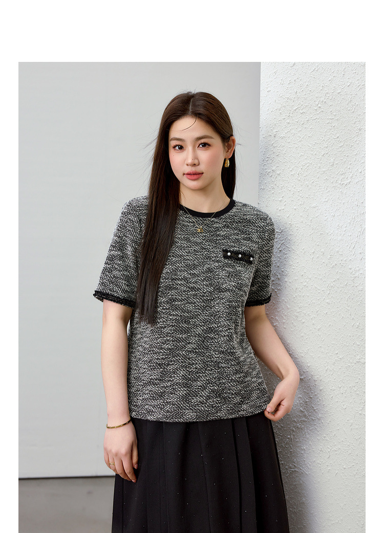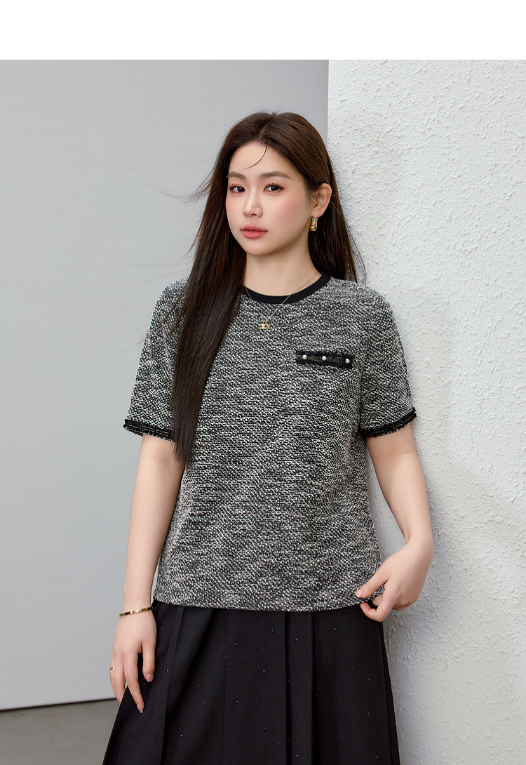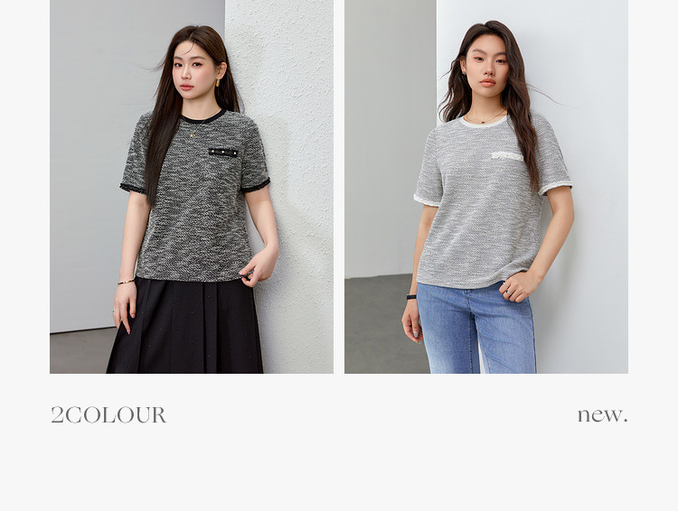 [Французский темперамент минималистский с круглым вырезом, дикий трикотаж] Полноцветный большой размер женский толстый mm2025 весенний костюм новый