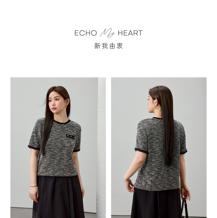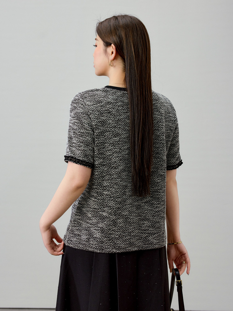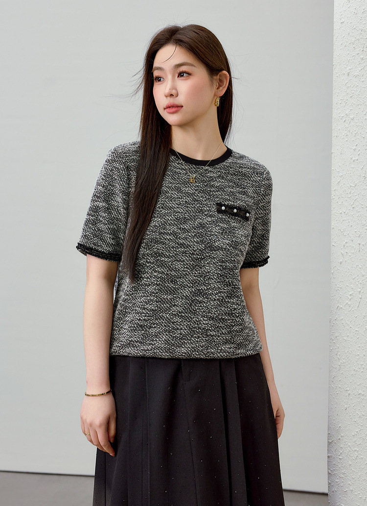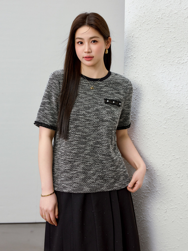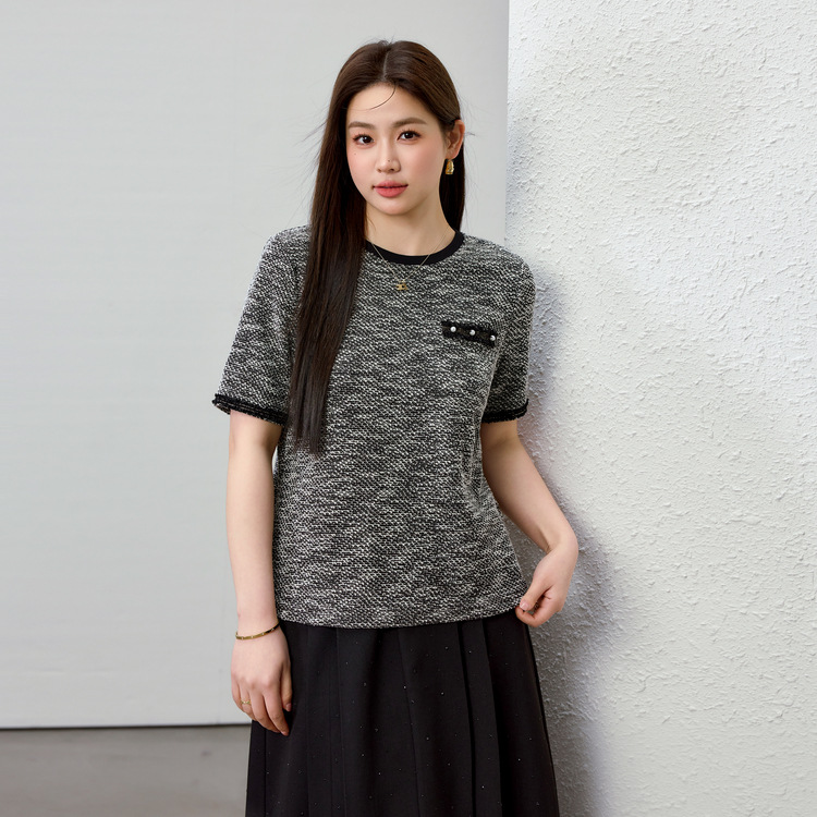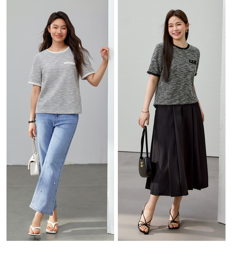 [Французский темперамент минималистский с круглым вырезом, дикий трикотаж] Полноцветный большой размер женский толстый mm2025 весенний костюм новый