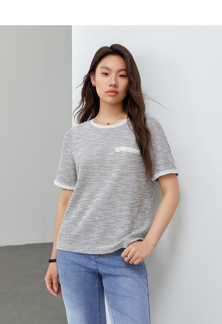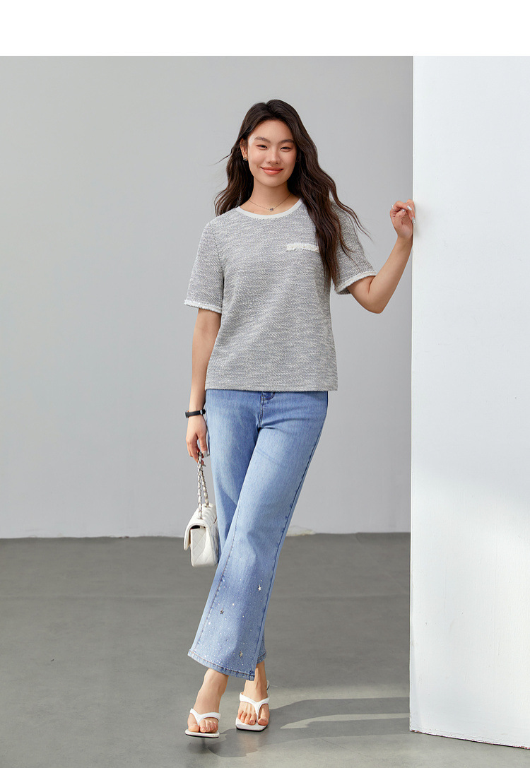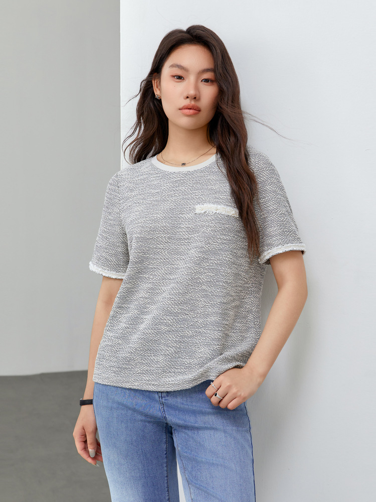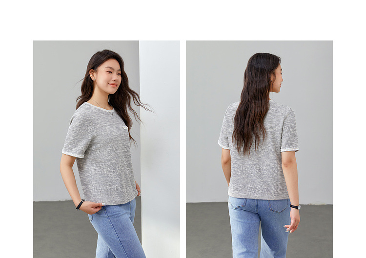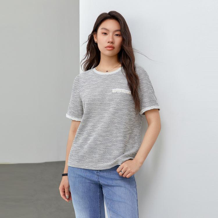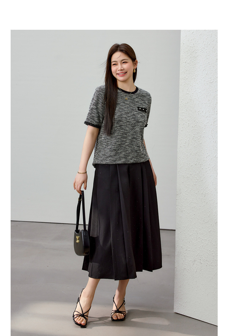 [Французский темперамент минималистский с круглым вырезом, дикий трикотаж] Полноцветный большой размер женский толстый mm2025 весенний костюм новый