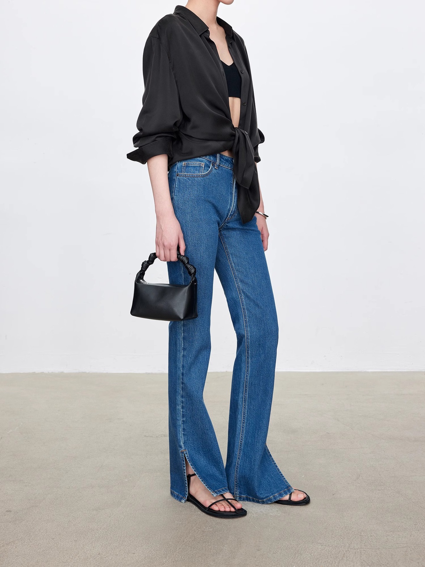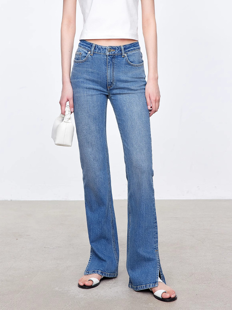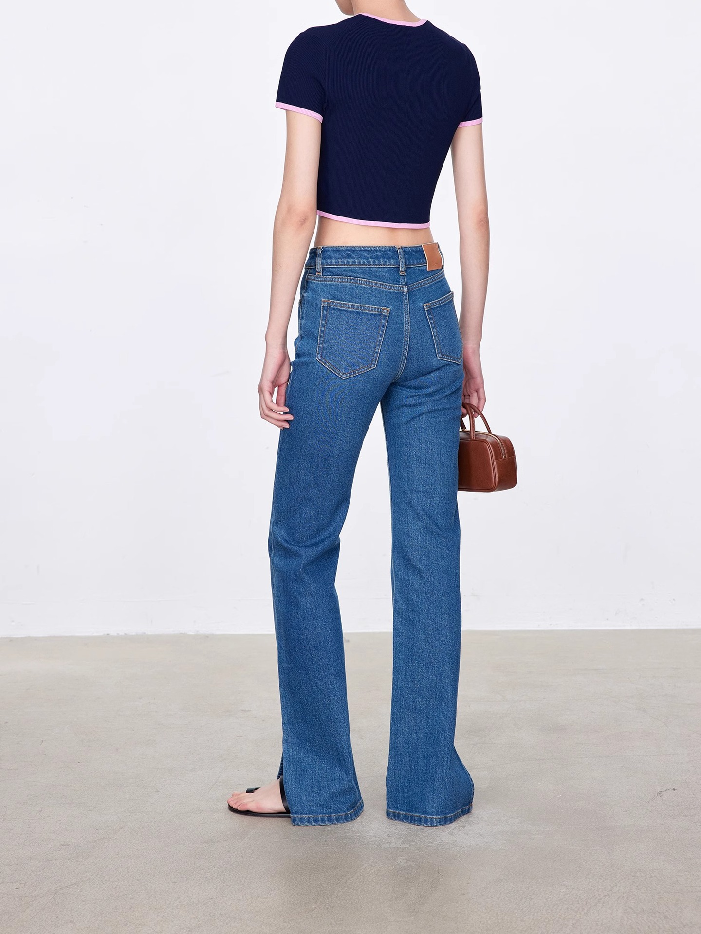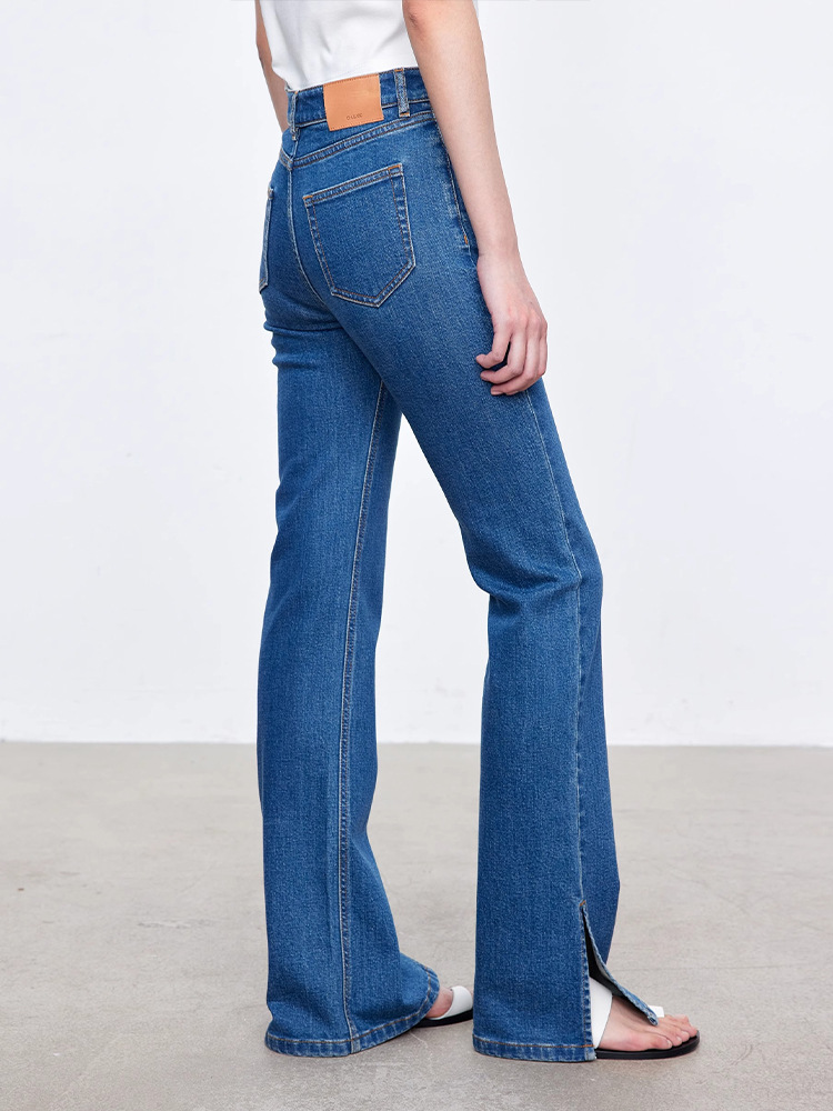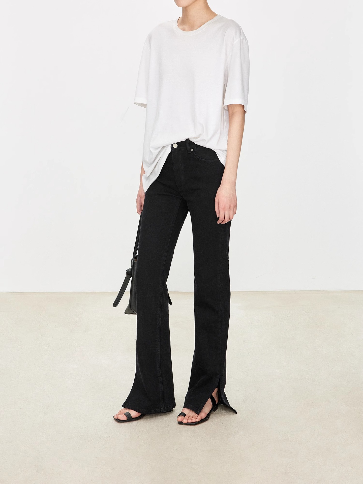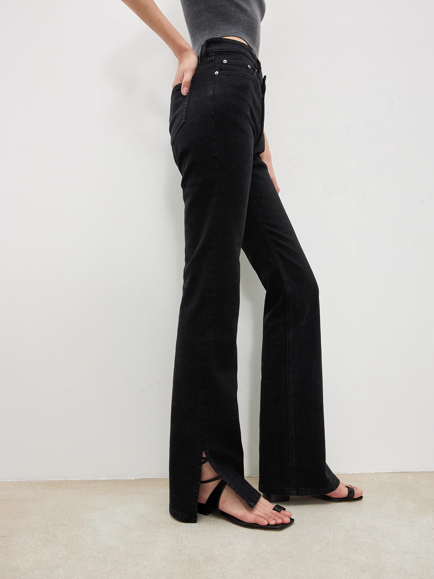 TH~ ROW Итальянские микроэластичные джинсовые брюки с микро-расклешенными штанинами, классические узкие брюки с боковыми разрезами, утягивающие высокие джинсы для женщин