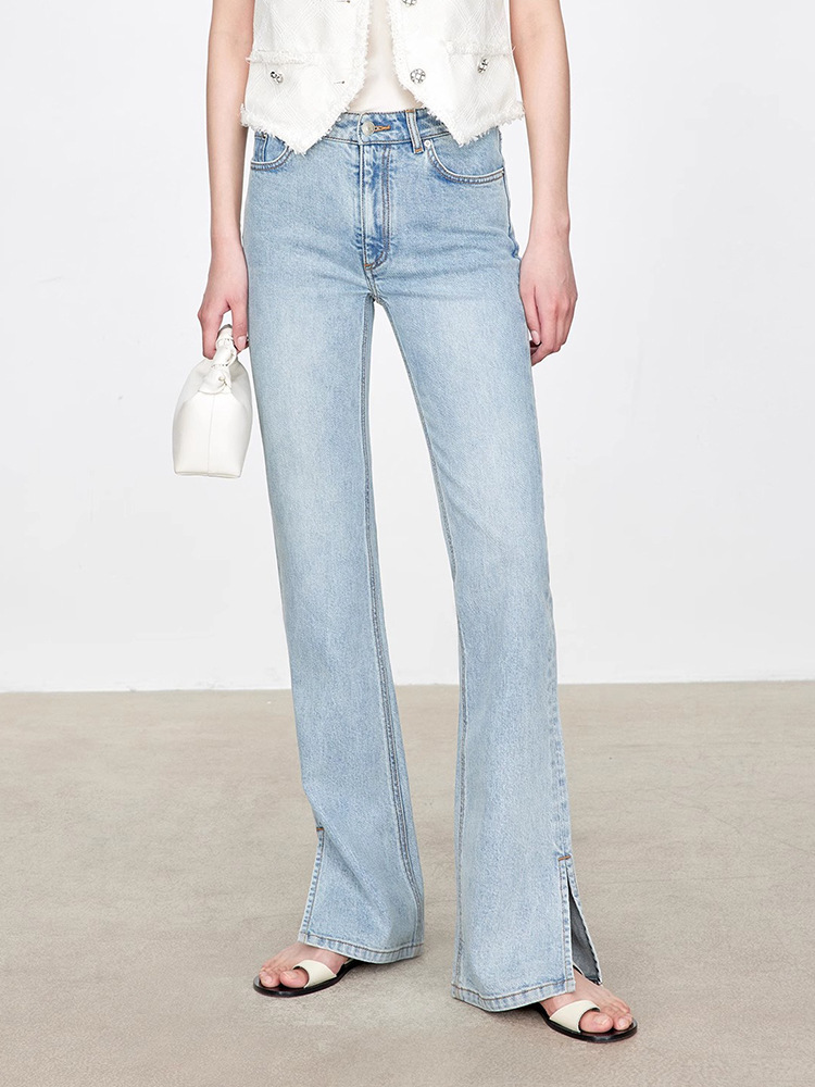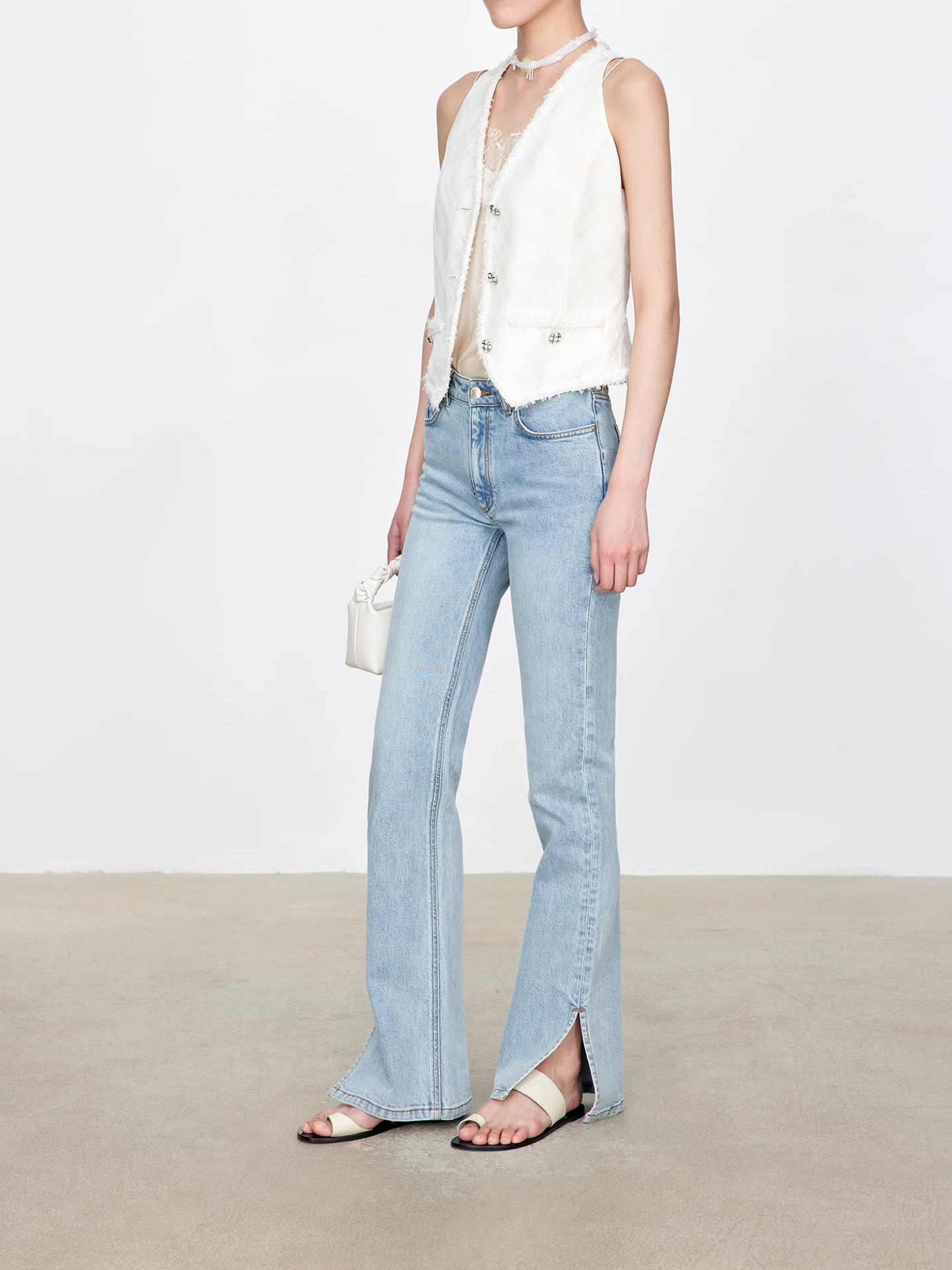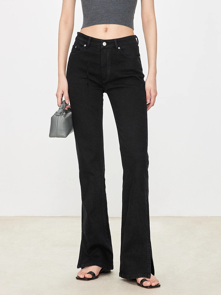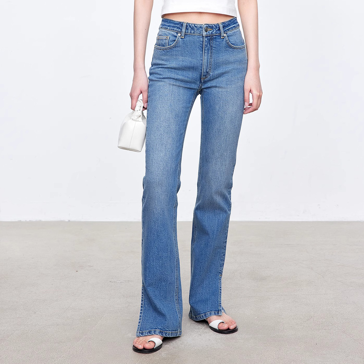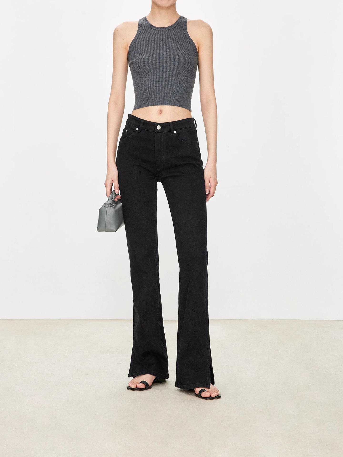 TH~ ROW Итальянские микроэластичные джинсовые брюки с микро-расклешенными штанинами, классические узкие брюки с боковыми разрезами, утягивающие высокие джинсы для женщин