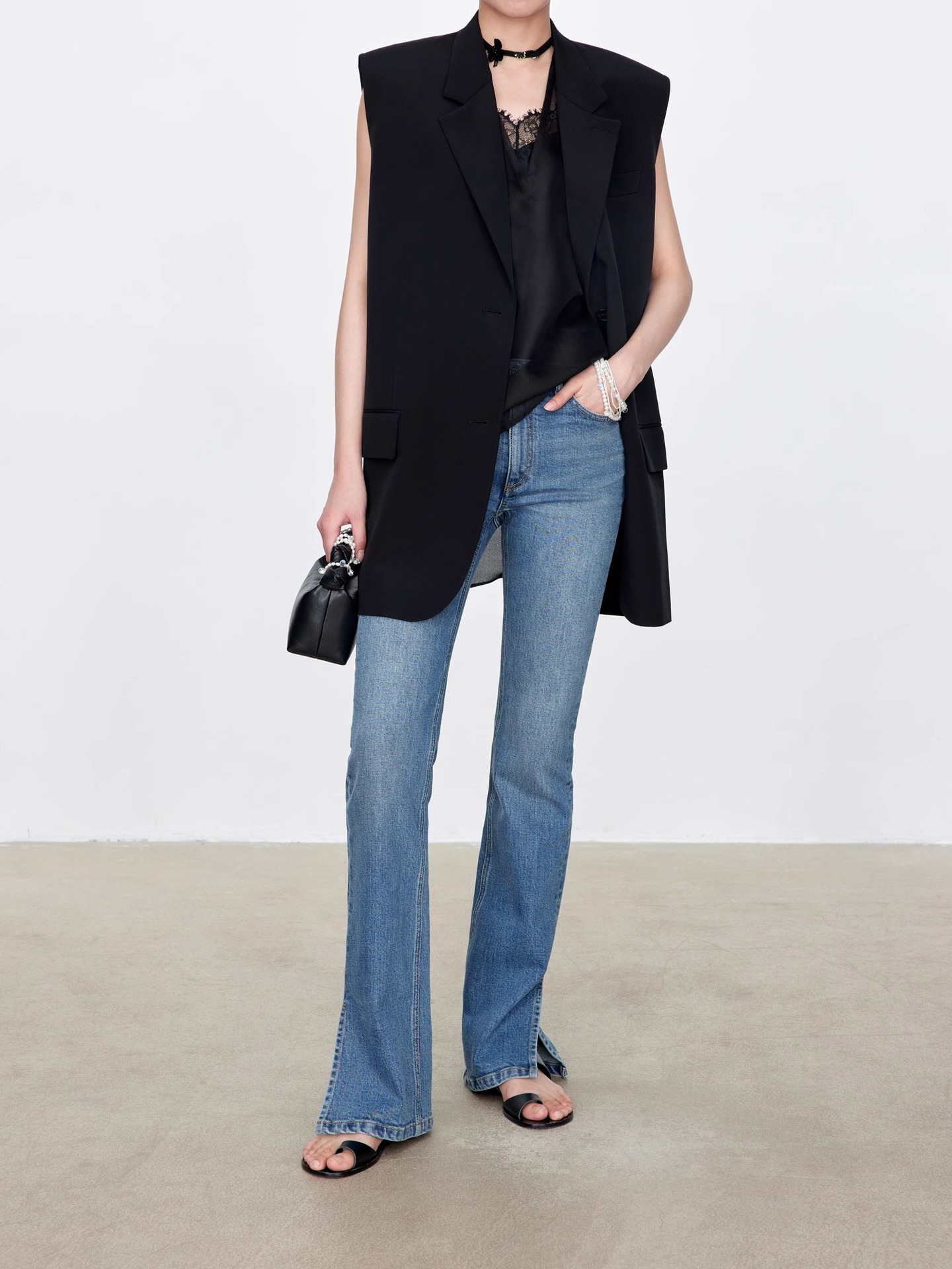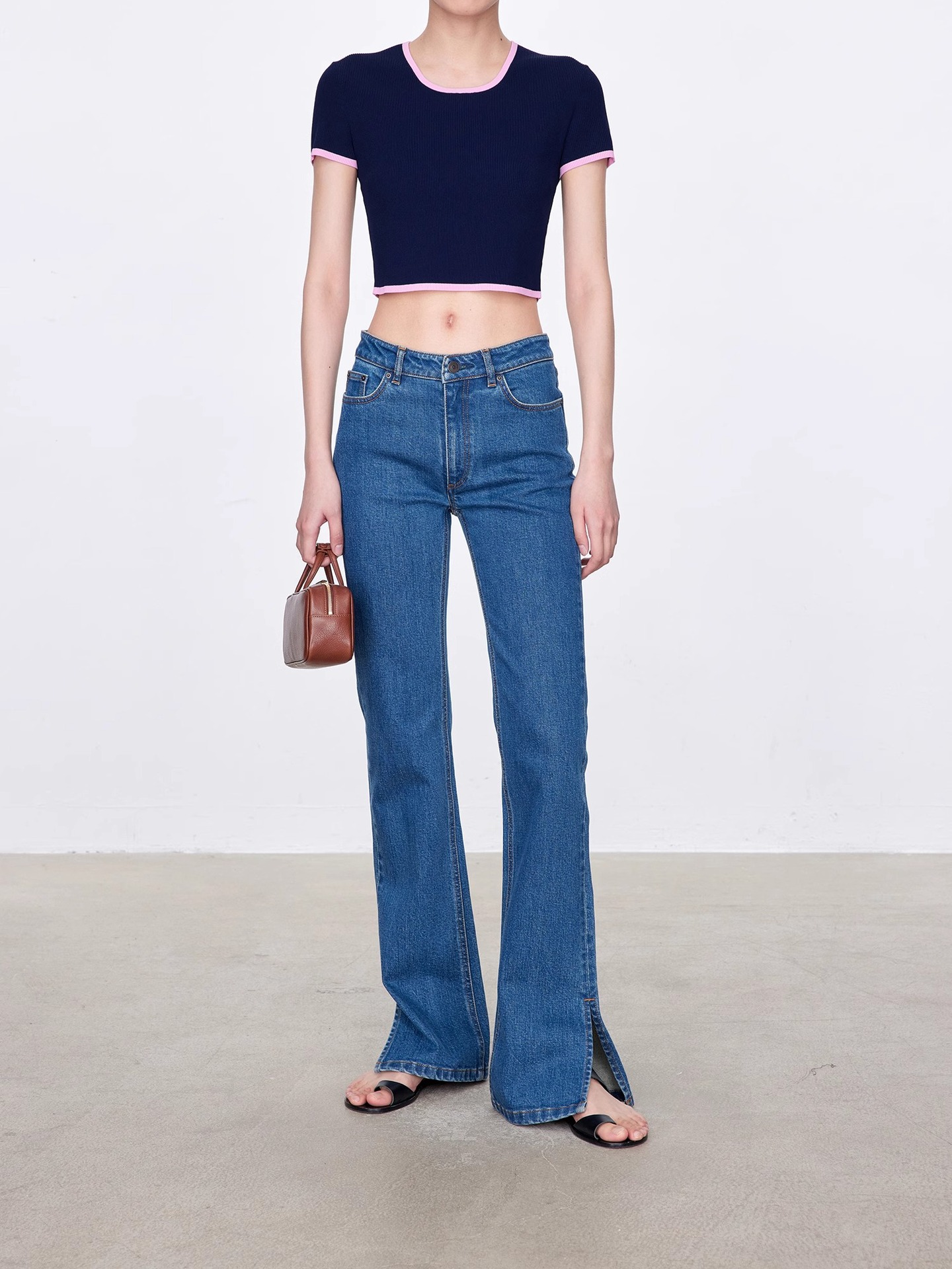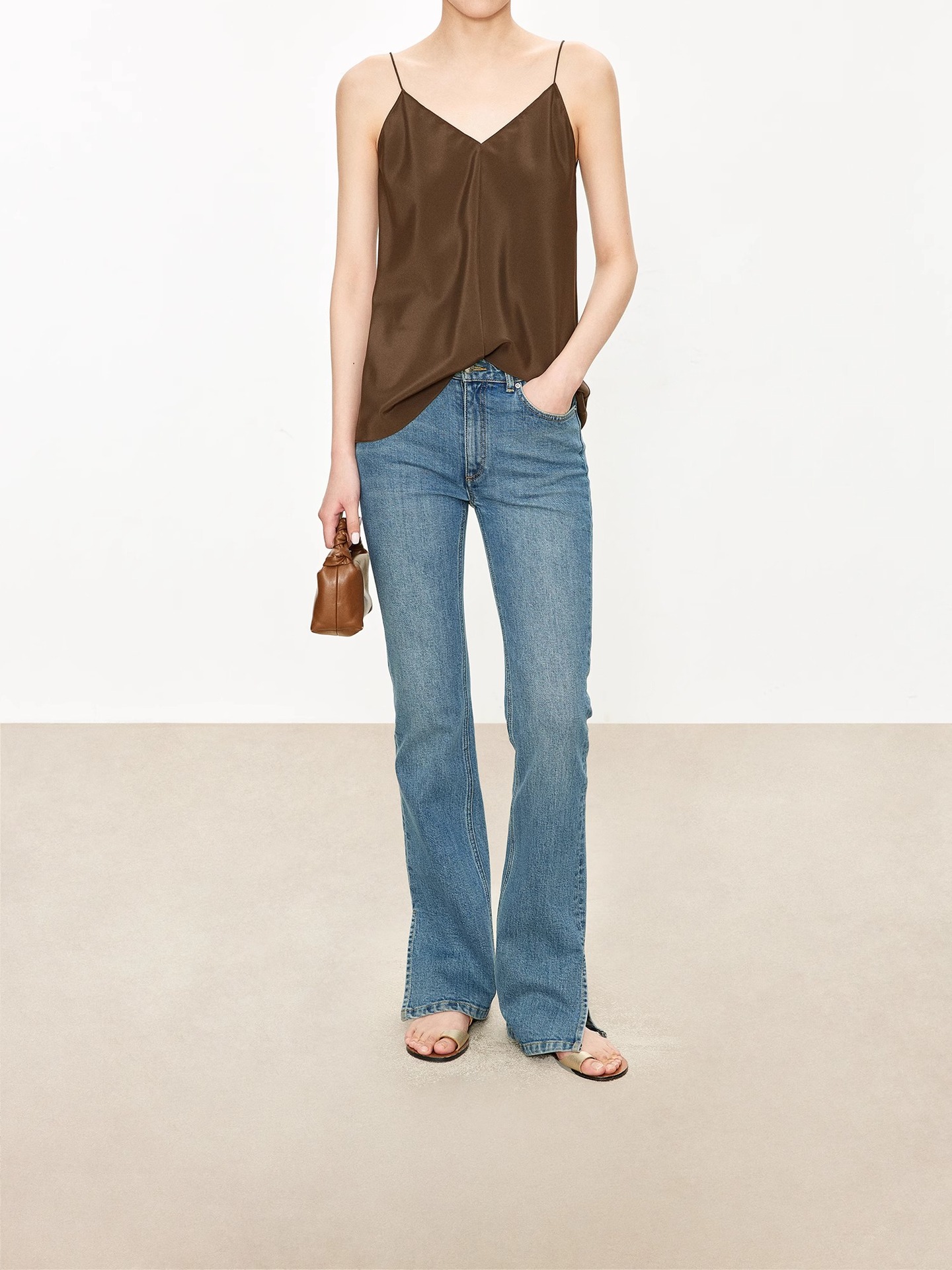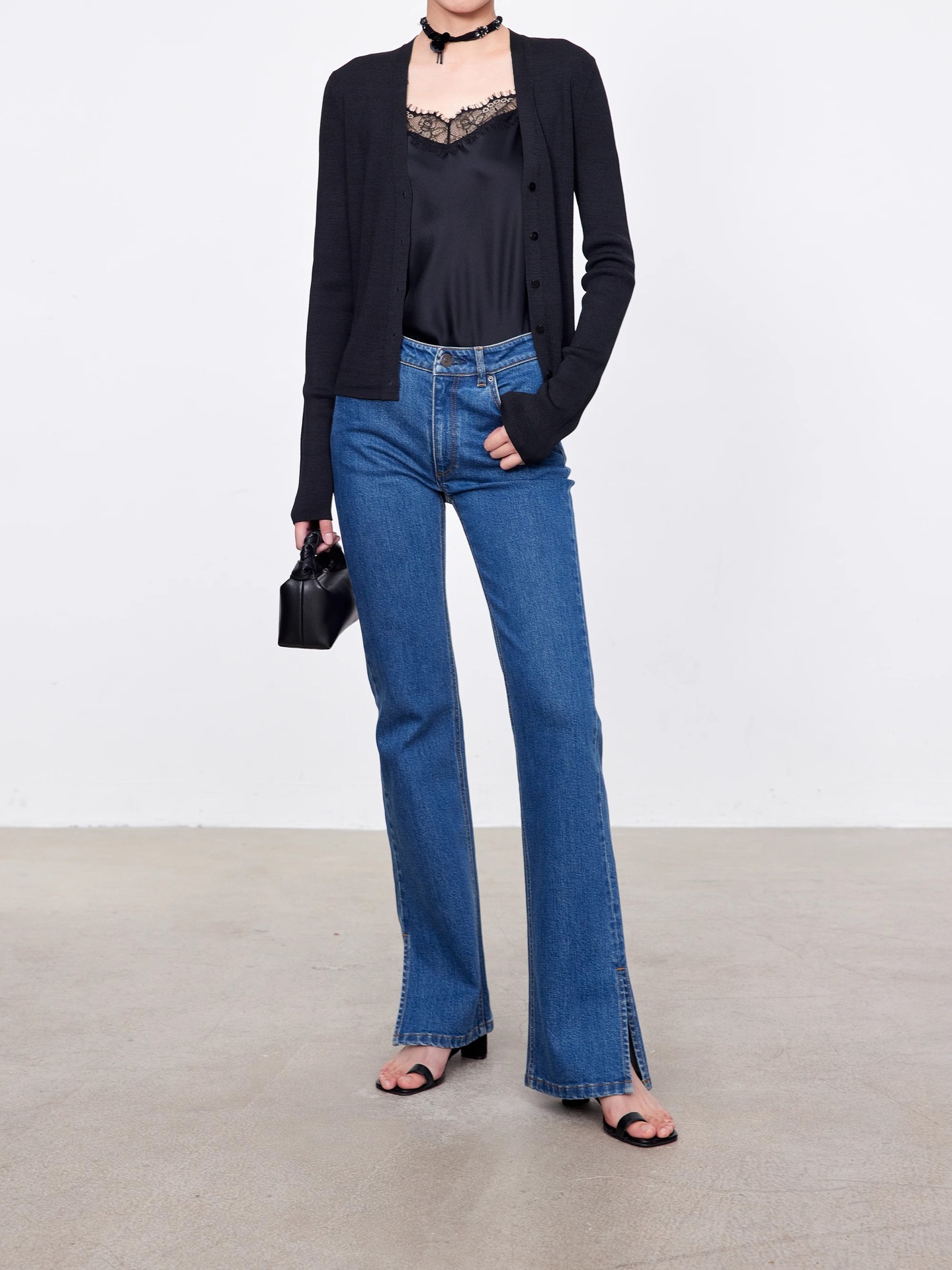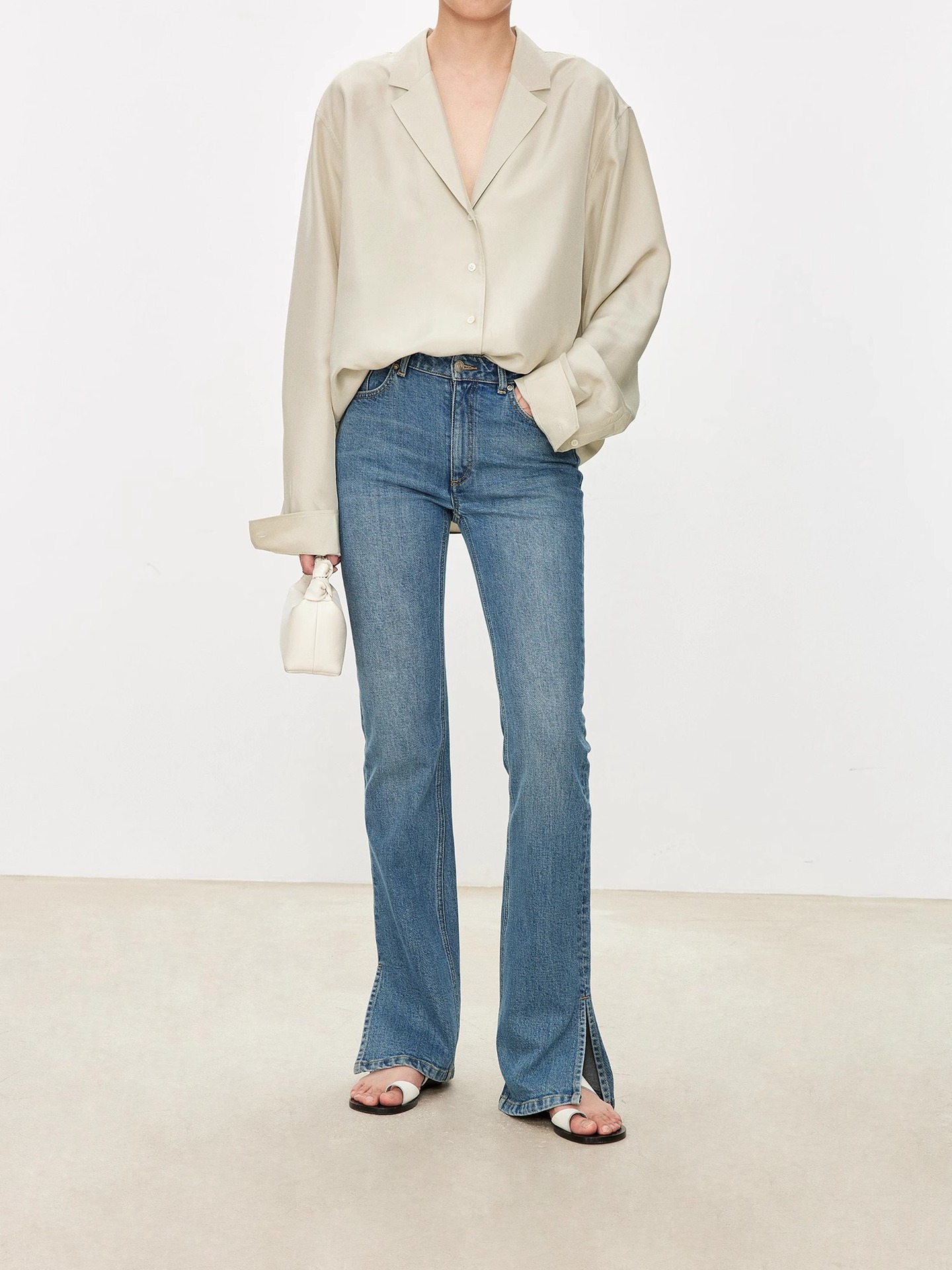 TH~ ROW Итальянские микроэластичные джинсовые брюки с микро-расклешенными штанинами, классические узкие брюки с боковыми разрезами, утягивающие высокие джинсы для женщин
