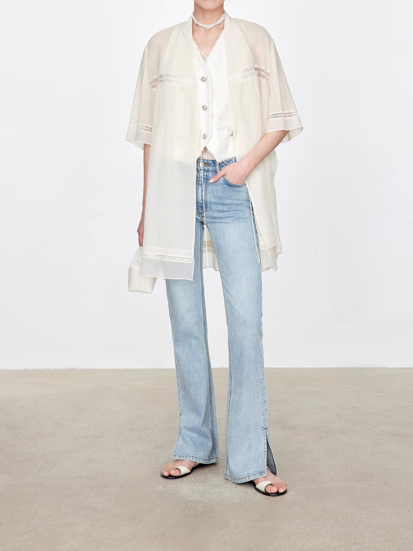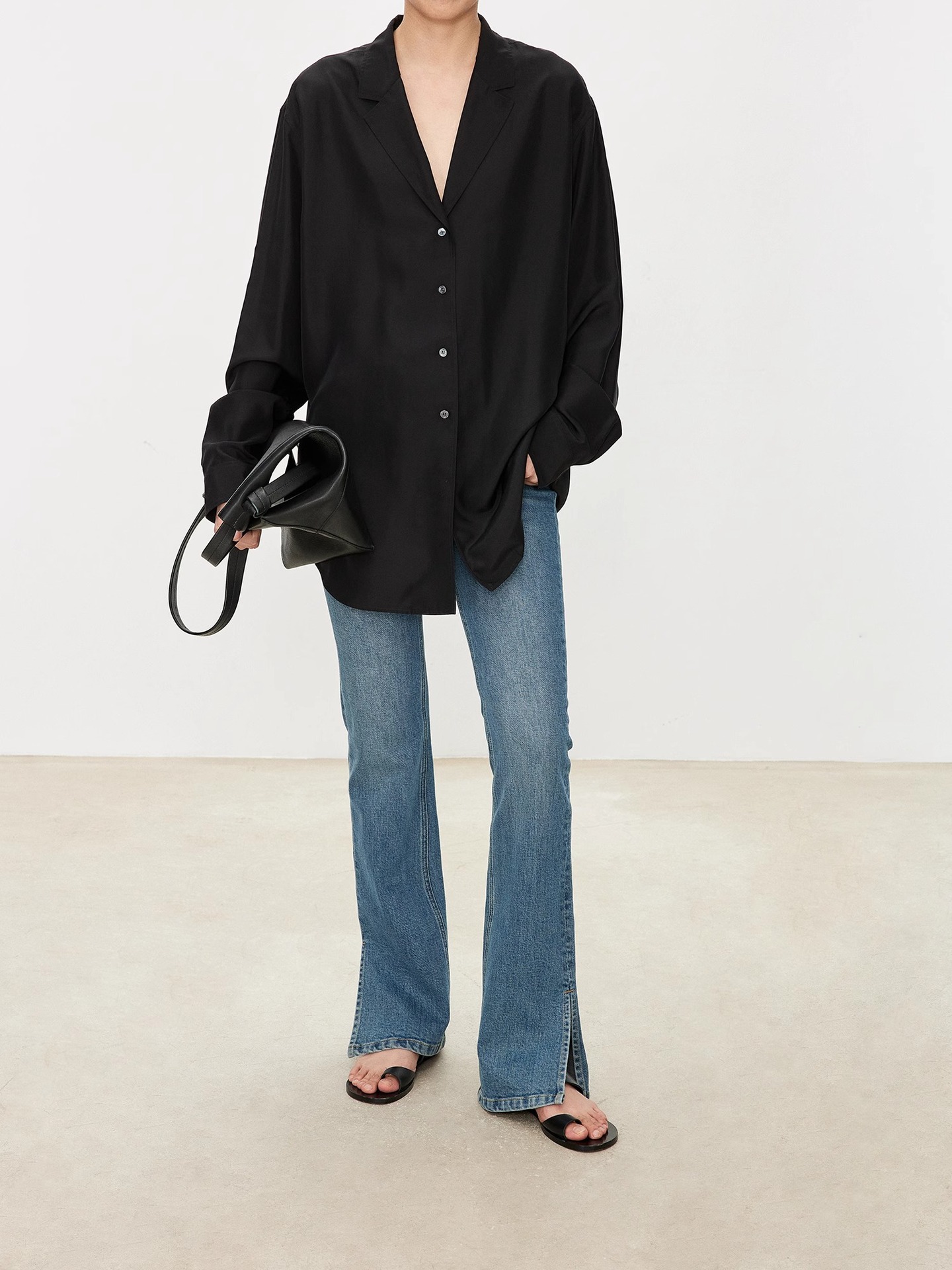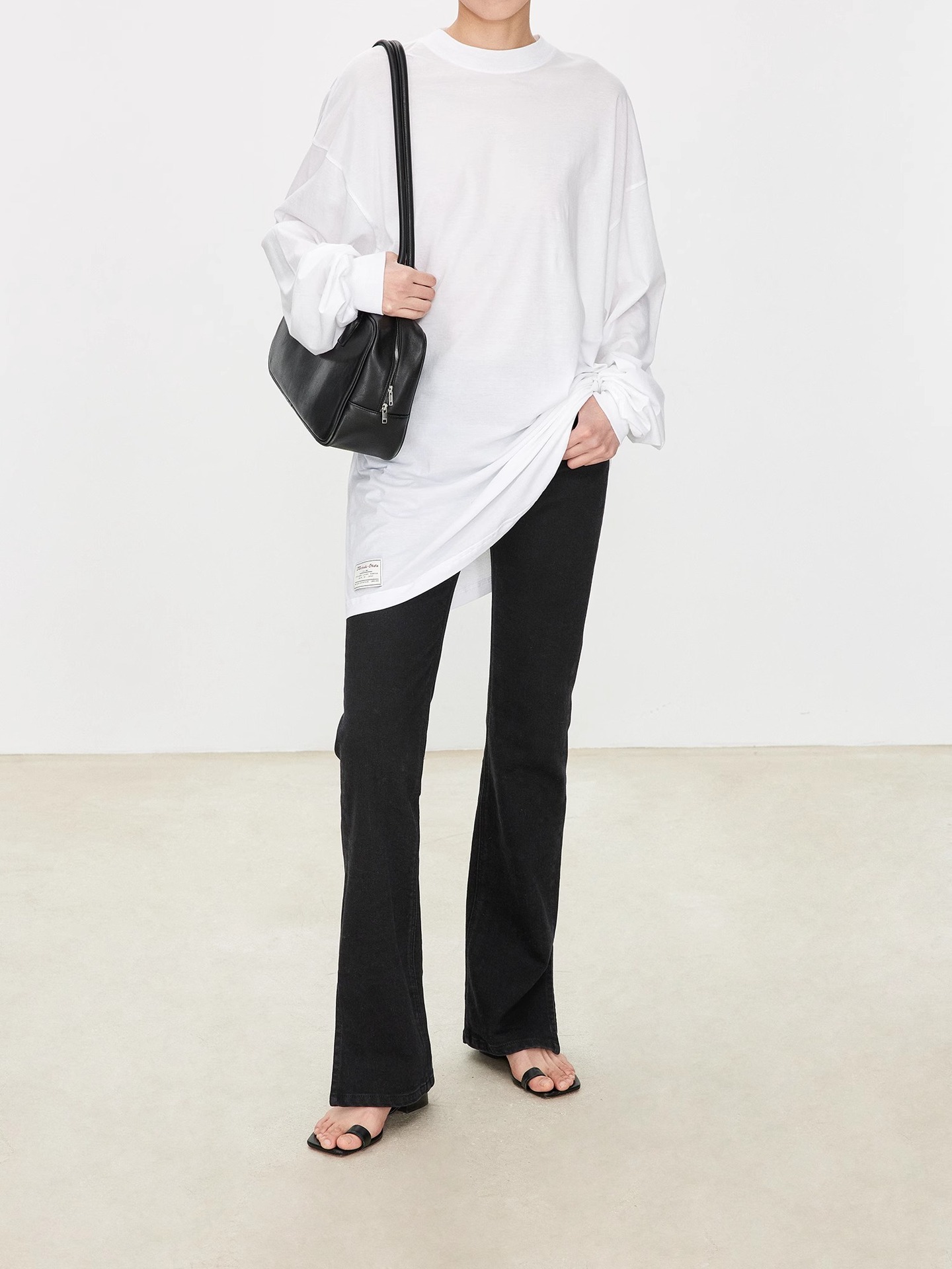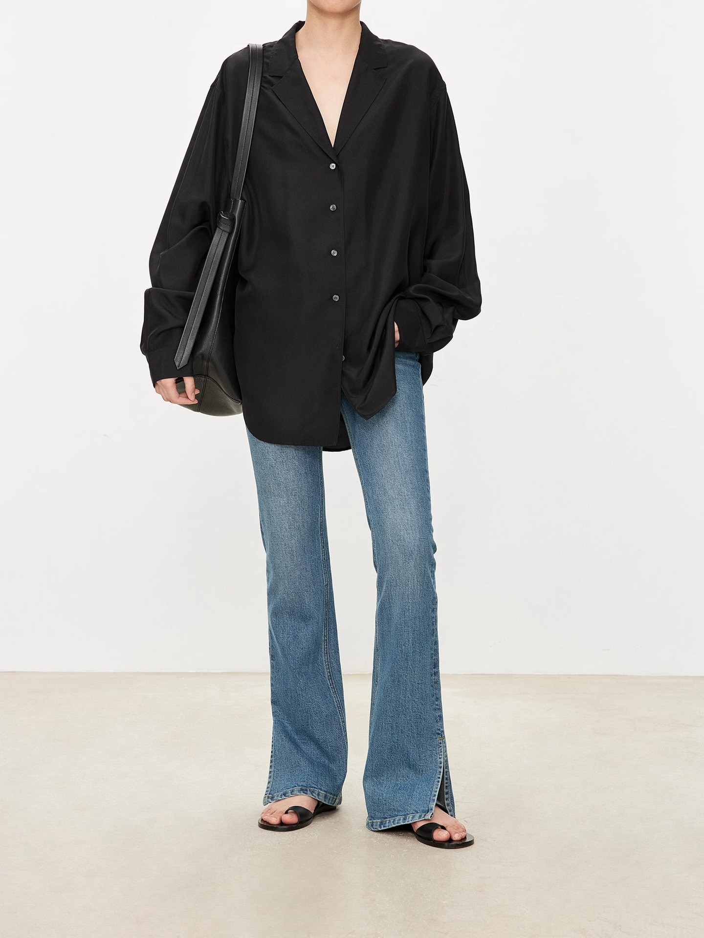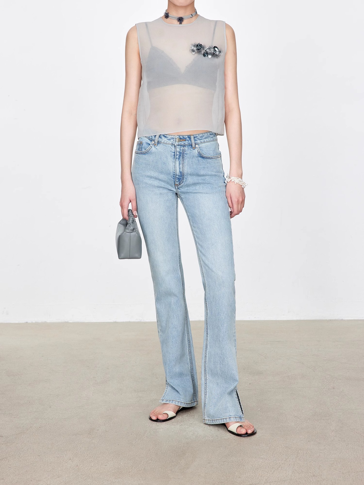 TH~ ROW Итальянские микроэластичные джинсовые брюки с микро-расклешенными штанинами, классические узкие брюки с боковыми разрезами, утягивающие высокие джинсы для женщин