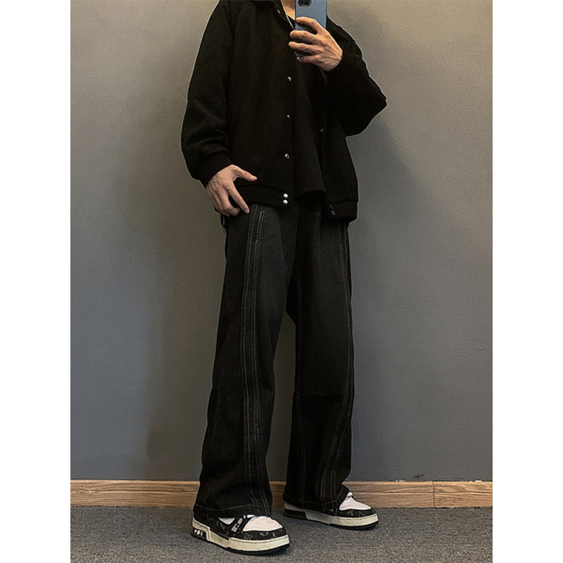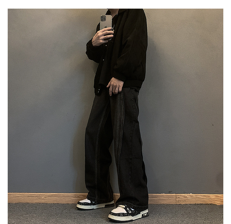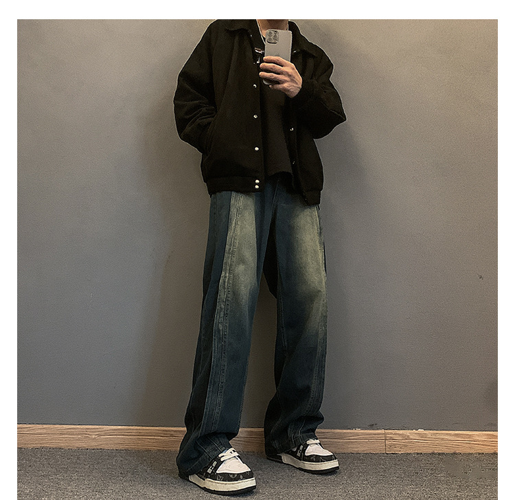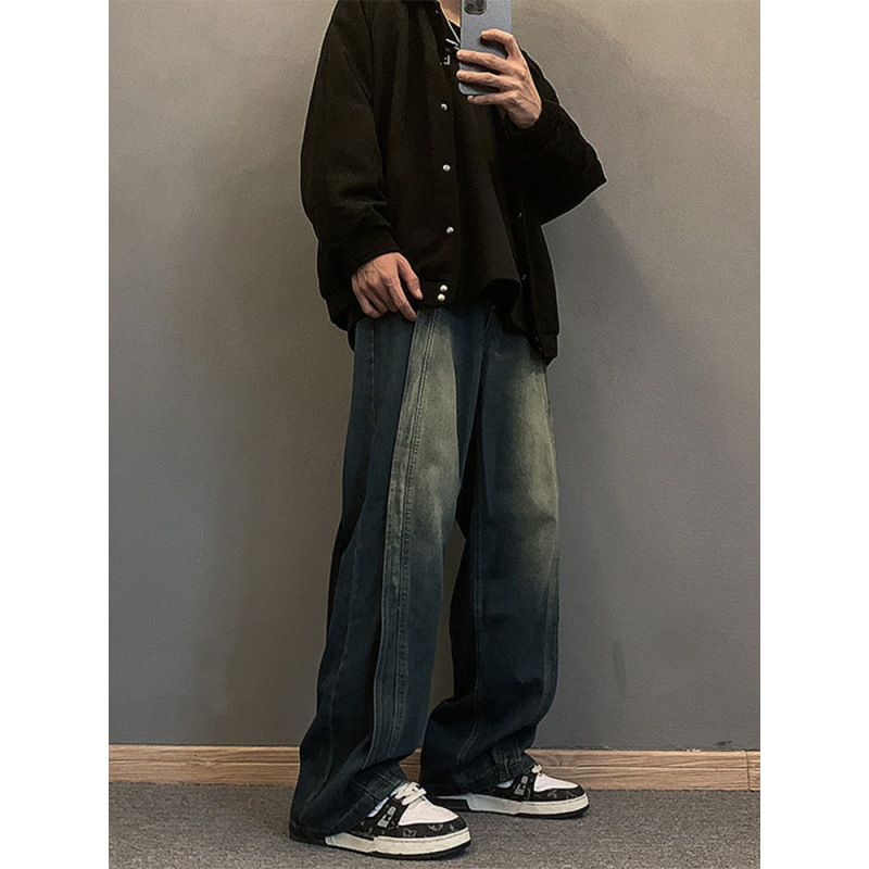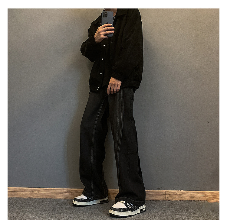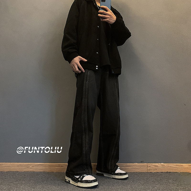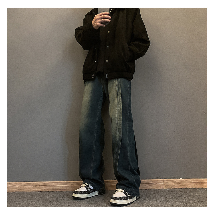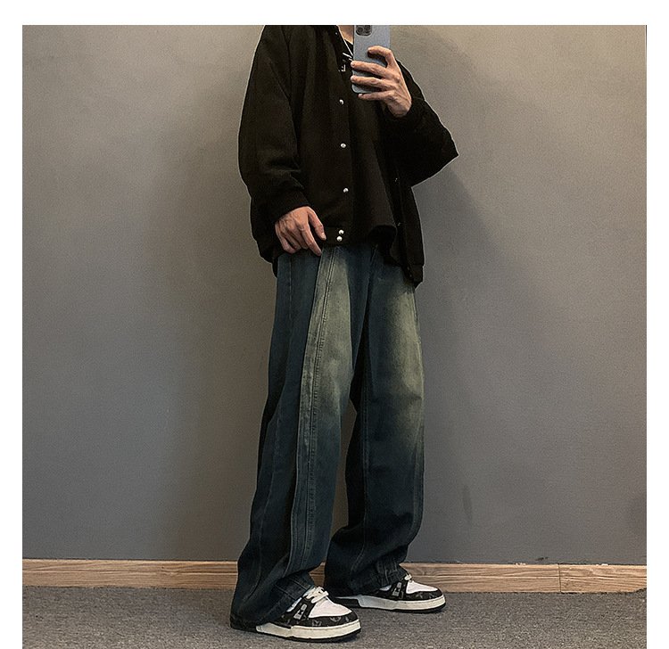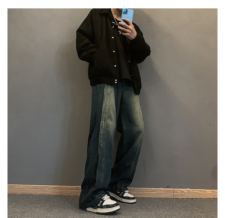 Американские сшитые джинсы с тяжелым весом премиум смысл мужской летний 2024 новый высокий уличный широконожный вертикальный прямой брюки