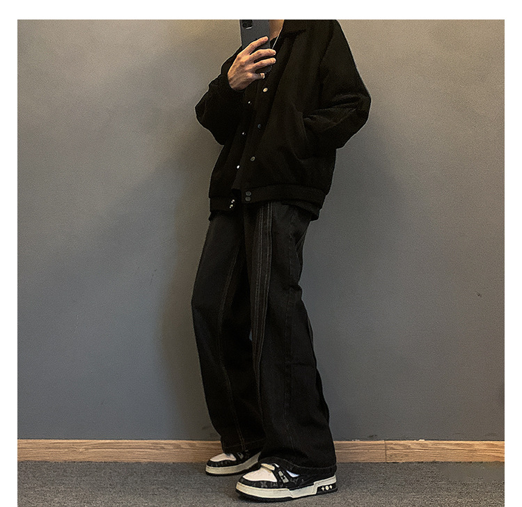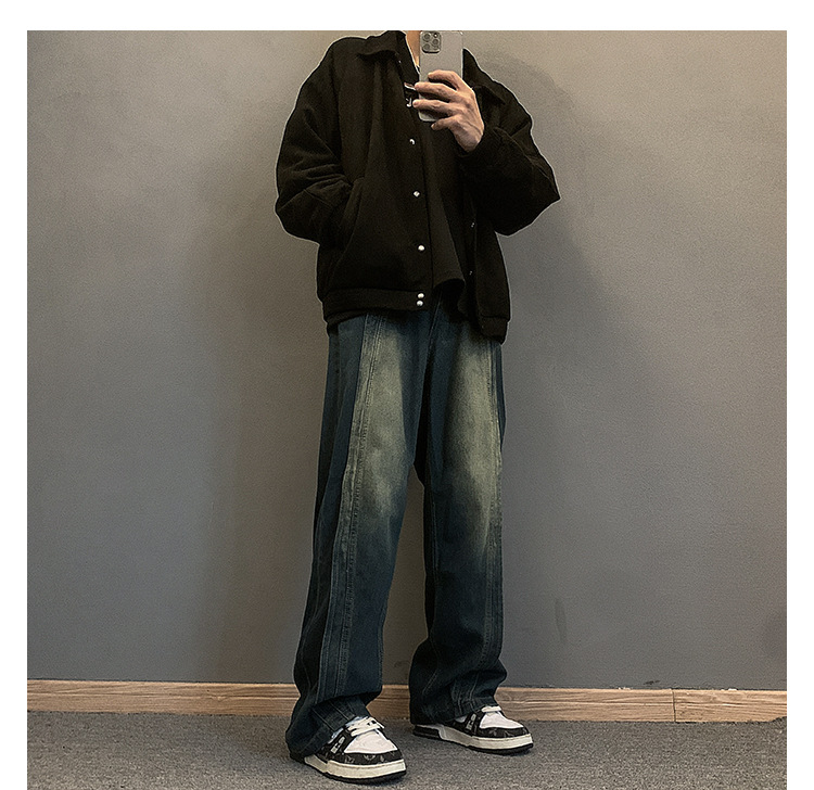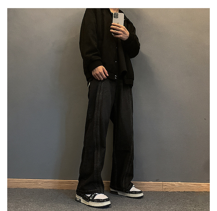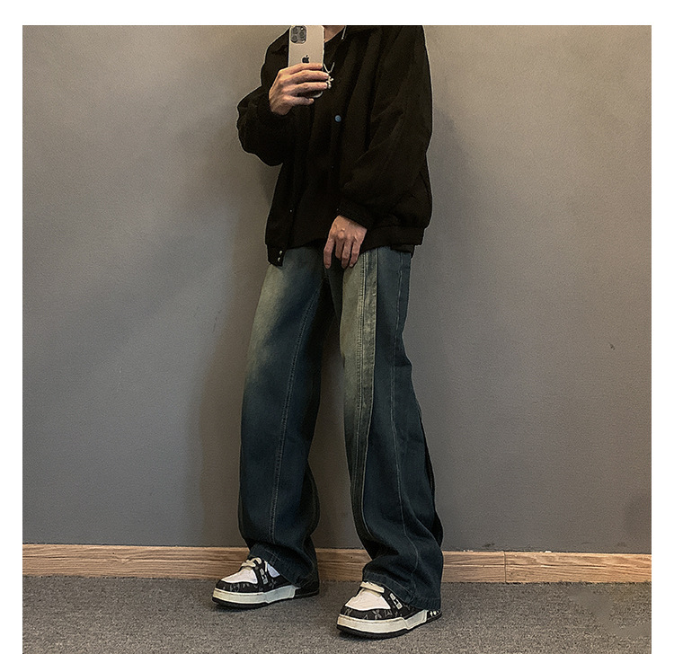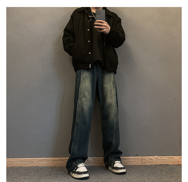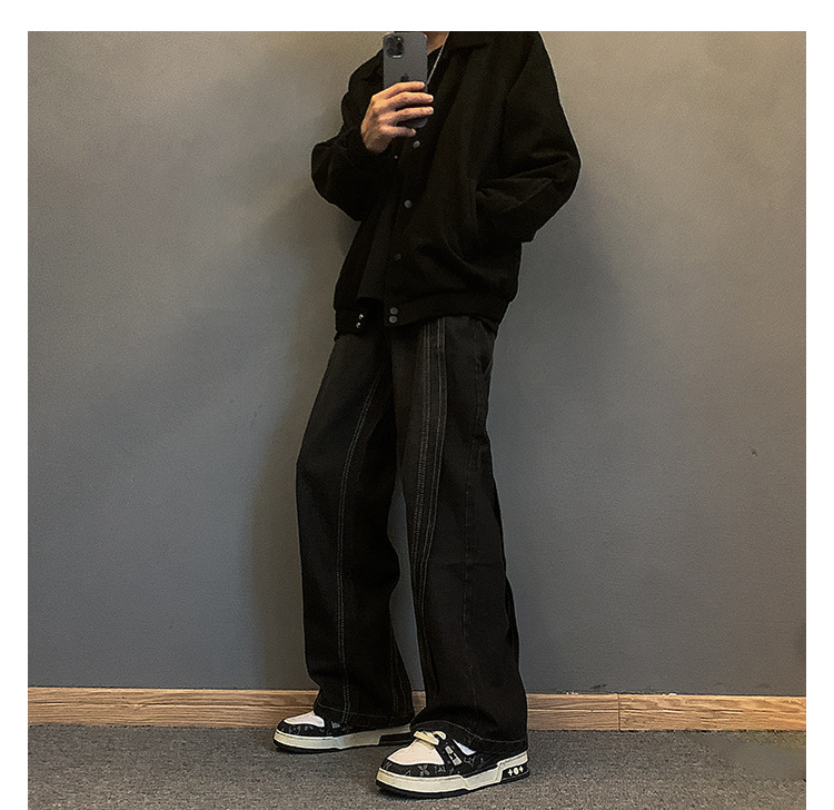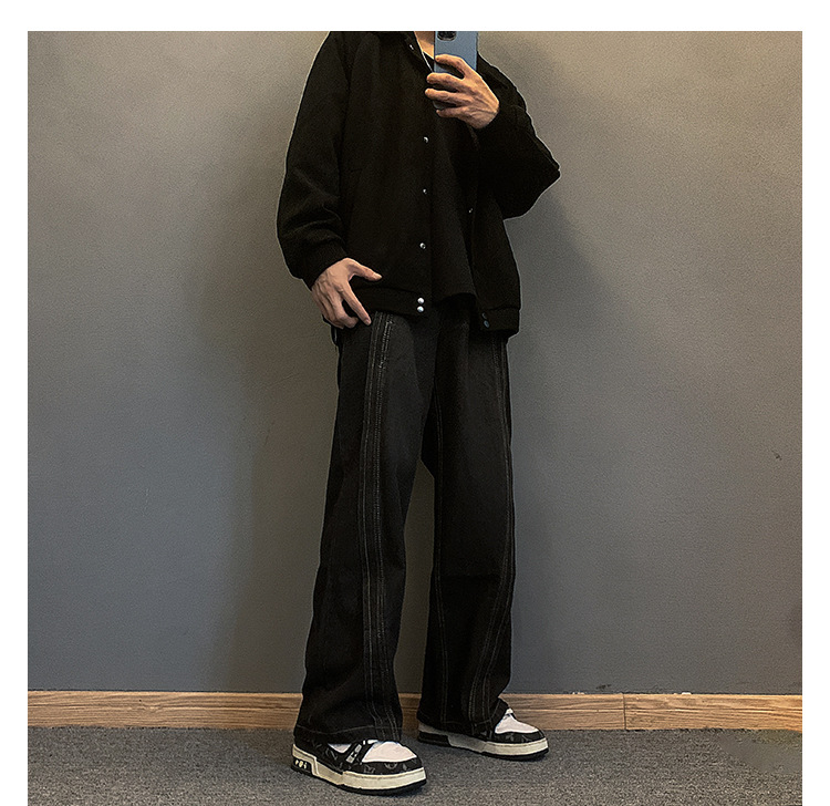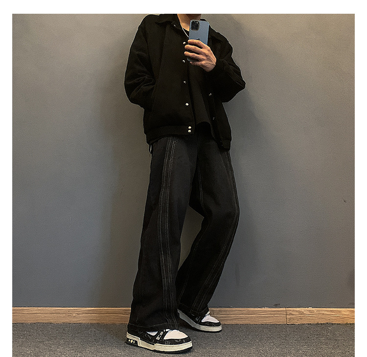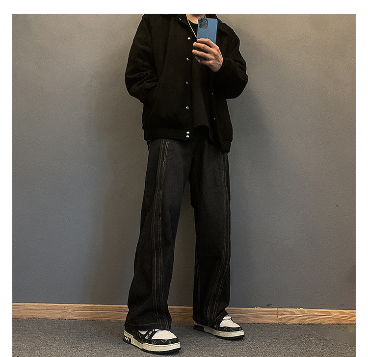 Американские сшитые джинсы с тяжелым весом премиум смысл мужской летний 2024 новый высокий уличный широконожный вертикальный прямой брюки