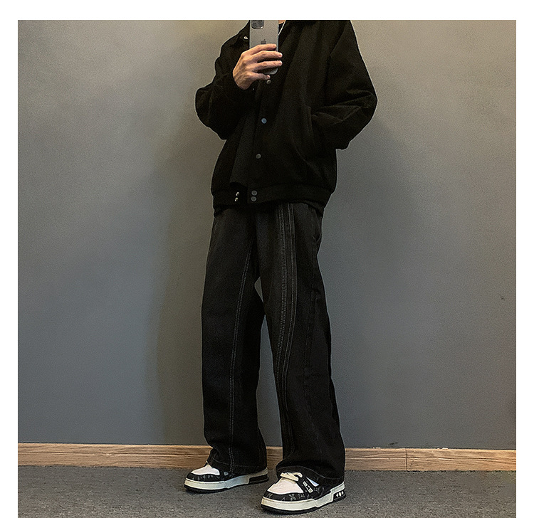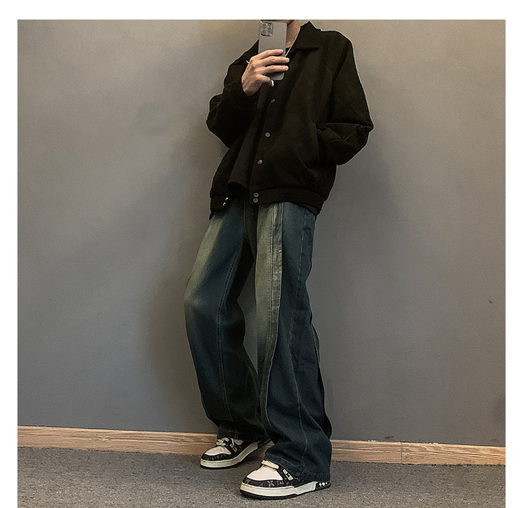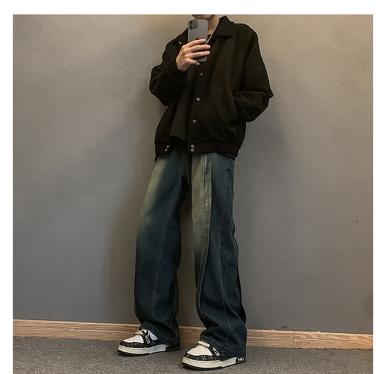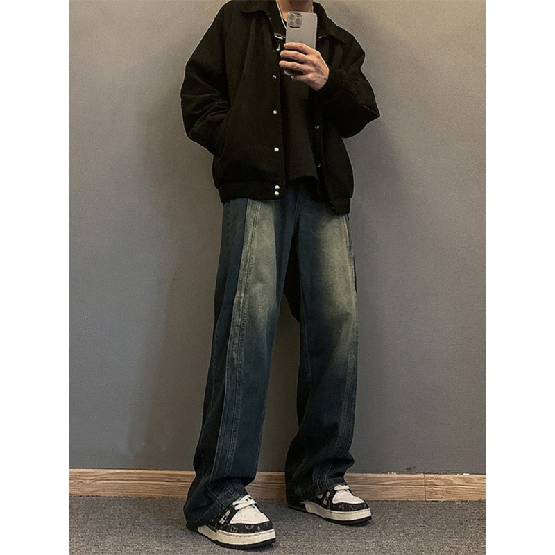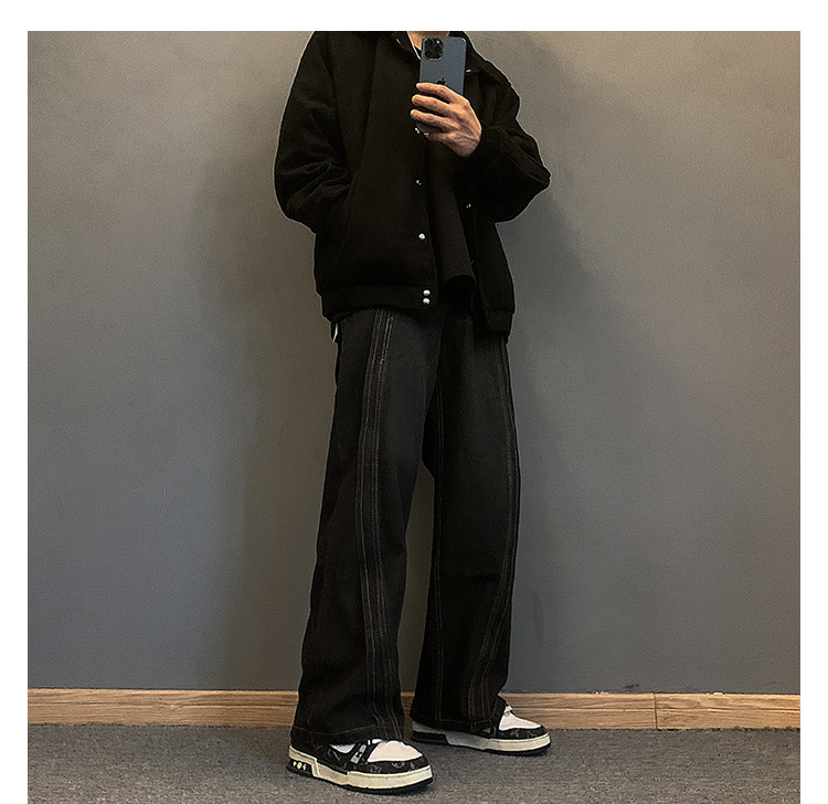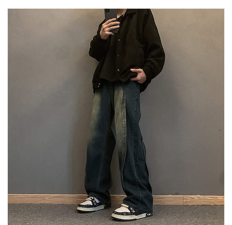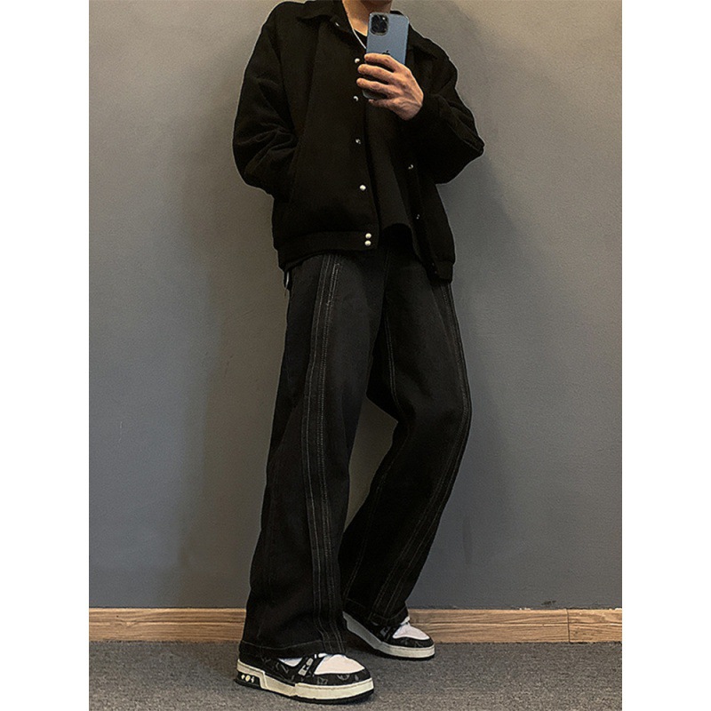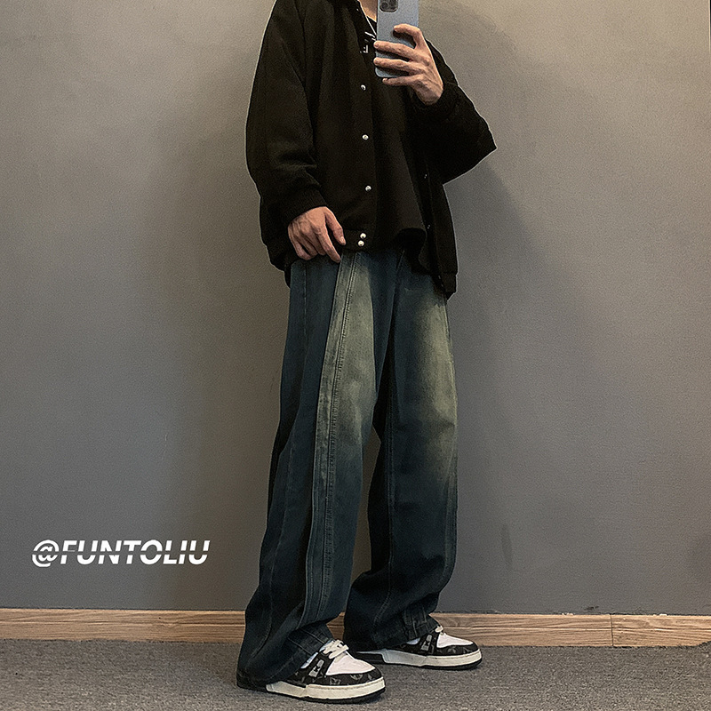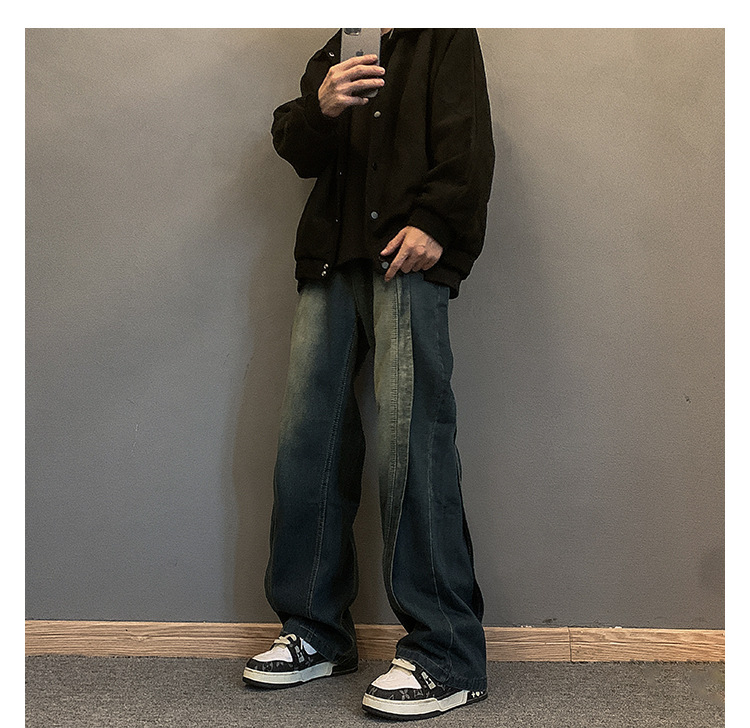 Американские сшитые джинсы с тяжелым весом премиум смысл мужской летний 2024 новый высокий уличный широконожный вертикальный прямой брюки