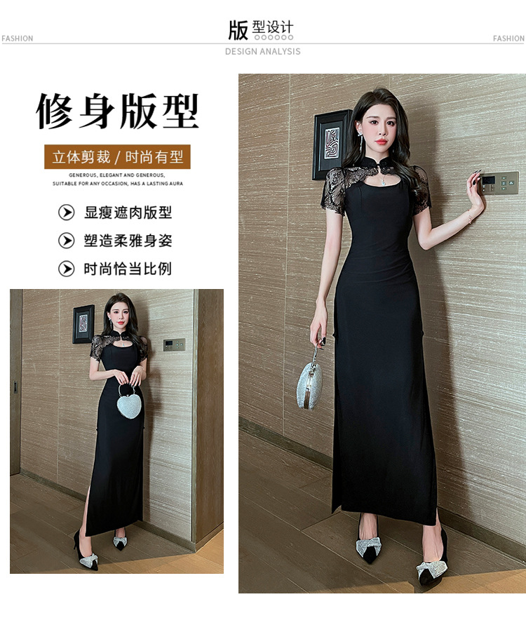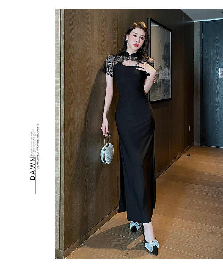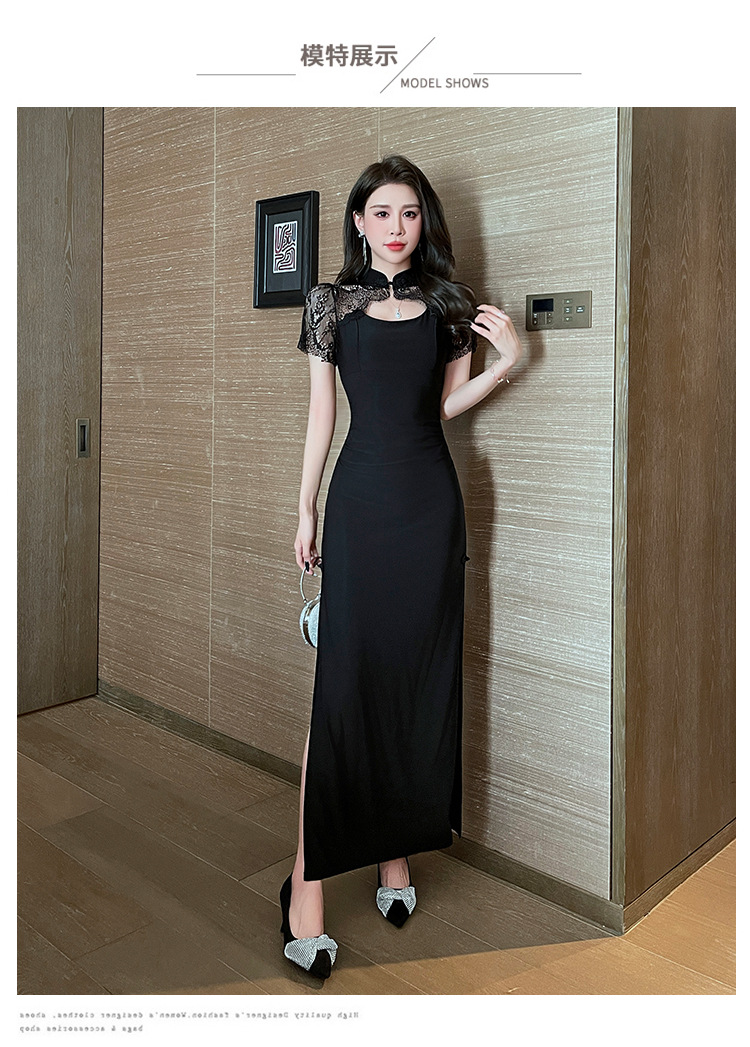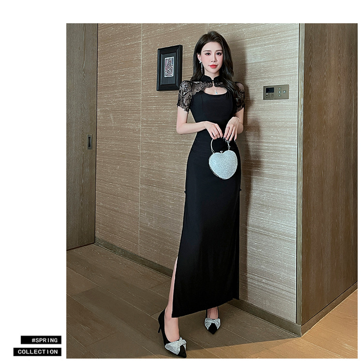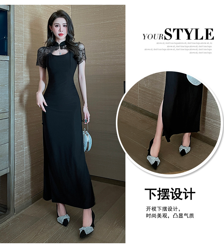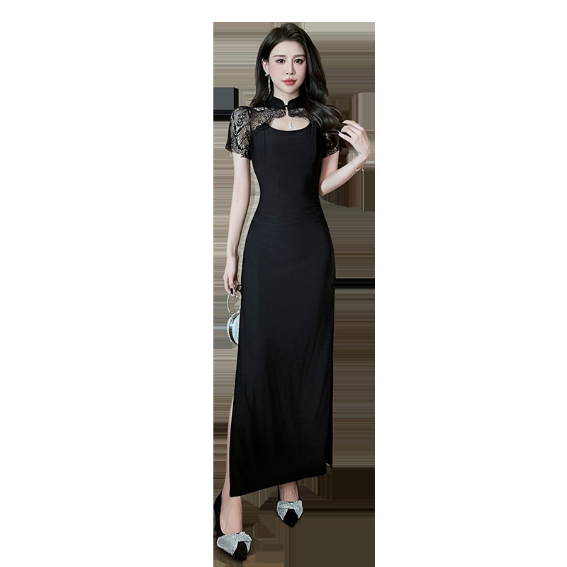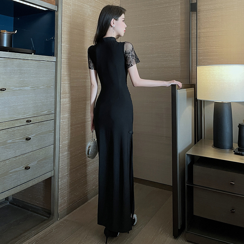 Элитная женская одежда 2025 года, легкий люкс, изысканный и элегантный стиль, новое черное приталенное платье в китайском стиле, лето 1515