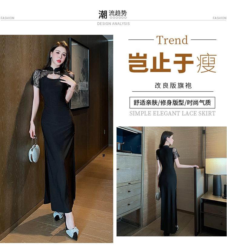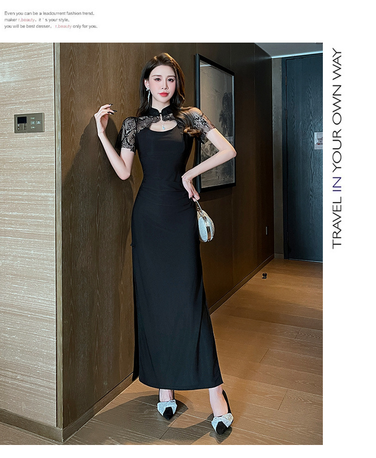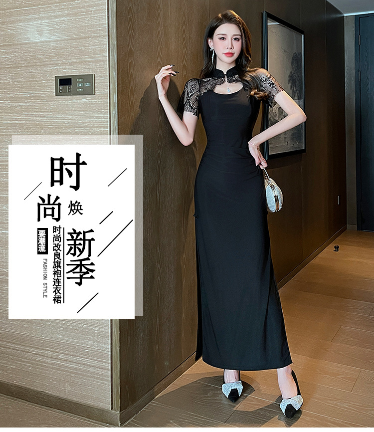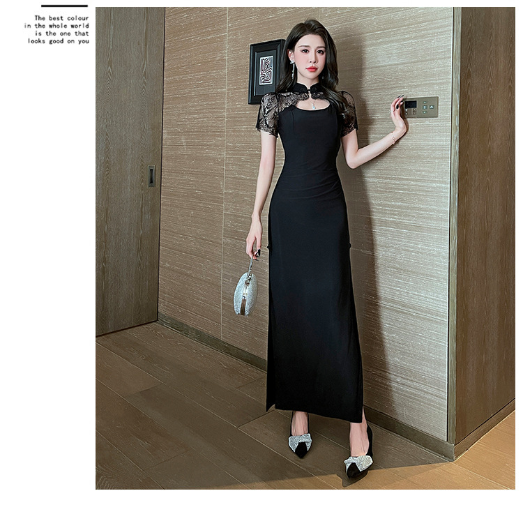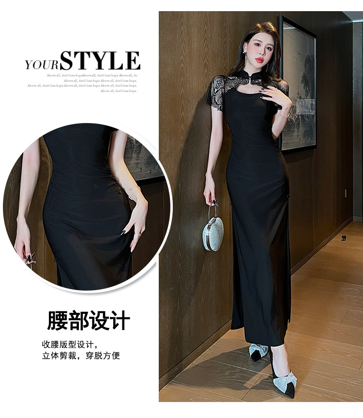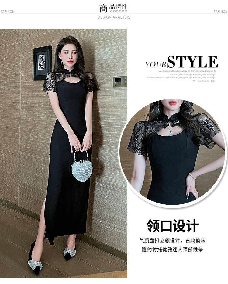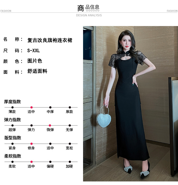 Элитная женская одежда 2025 года, легкий люкс, изысканный и элегантный стиль, новое черное приталенное платье в китайском стиле, лето 1515