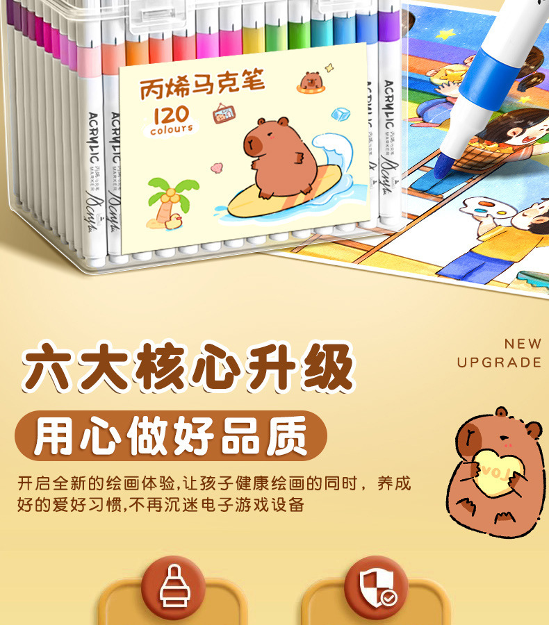 Акриловые маркеры для учащихся начальной школы, специальные для творчества, акриловые маркеры «Капибара», непрозрачные, многослойные, смываемые, для детей.