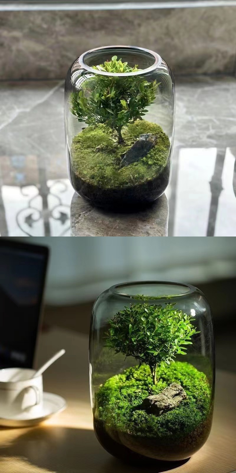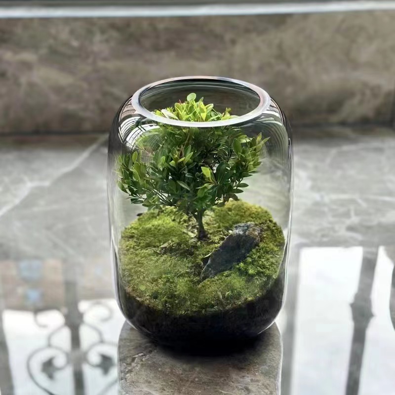 Творческий круглый стеклянный аквариум прозрачный рабочий стол утолщение аквариум с золотыми рыбками гостиная микроландшафт дерево жизни экологическая бутылка