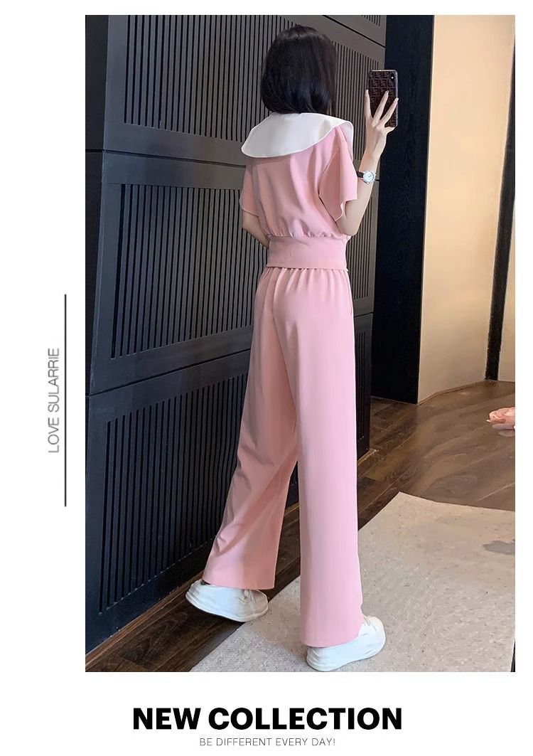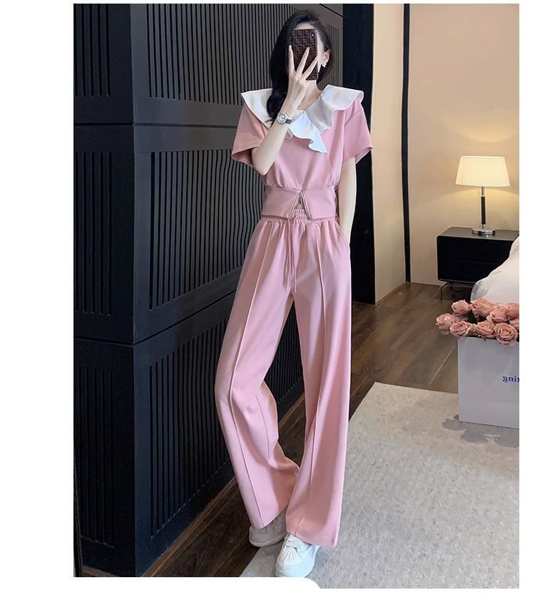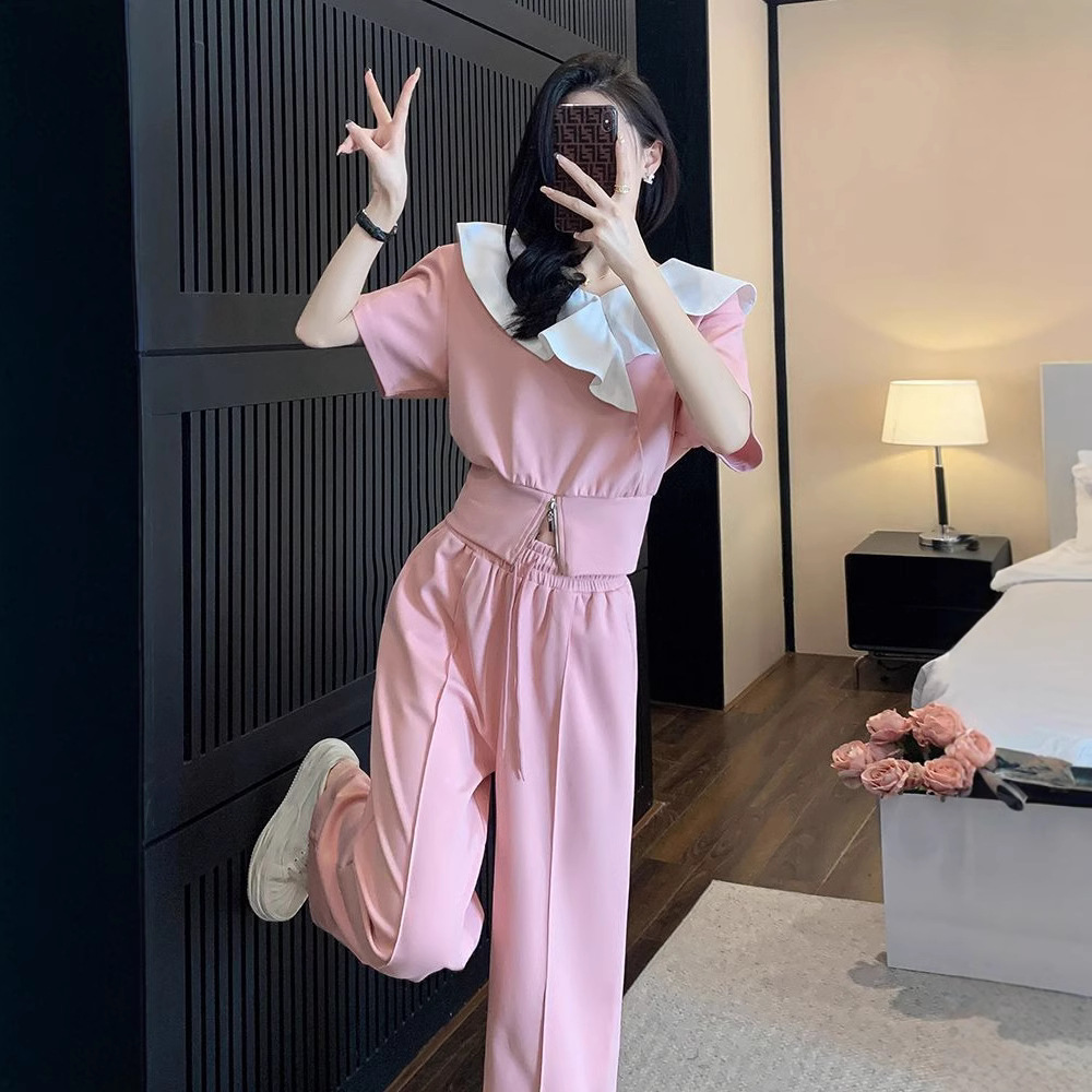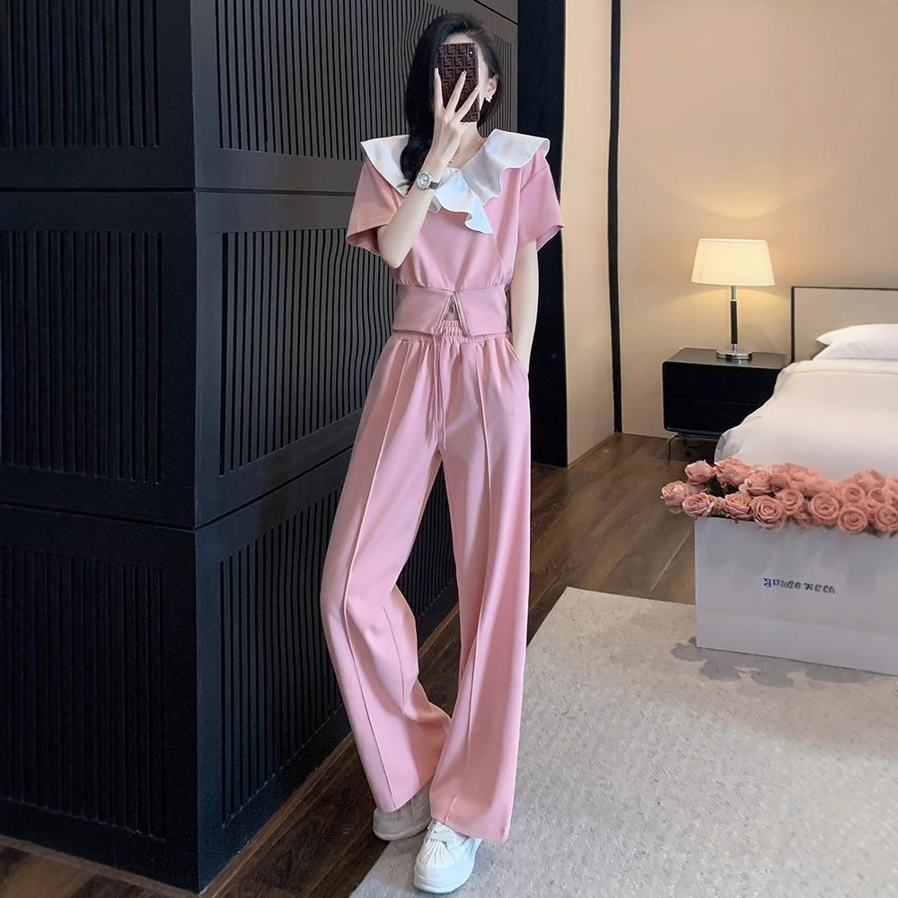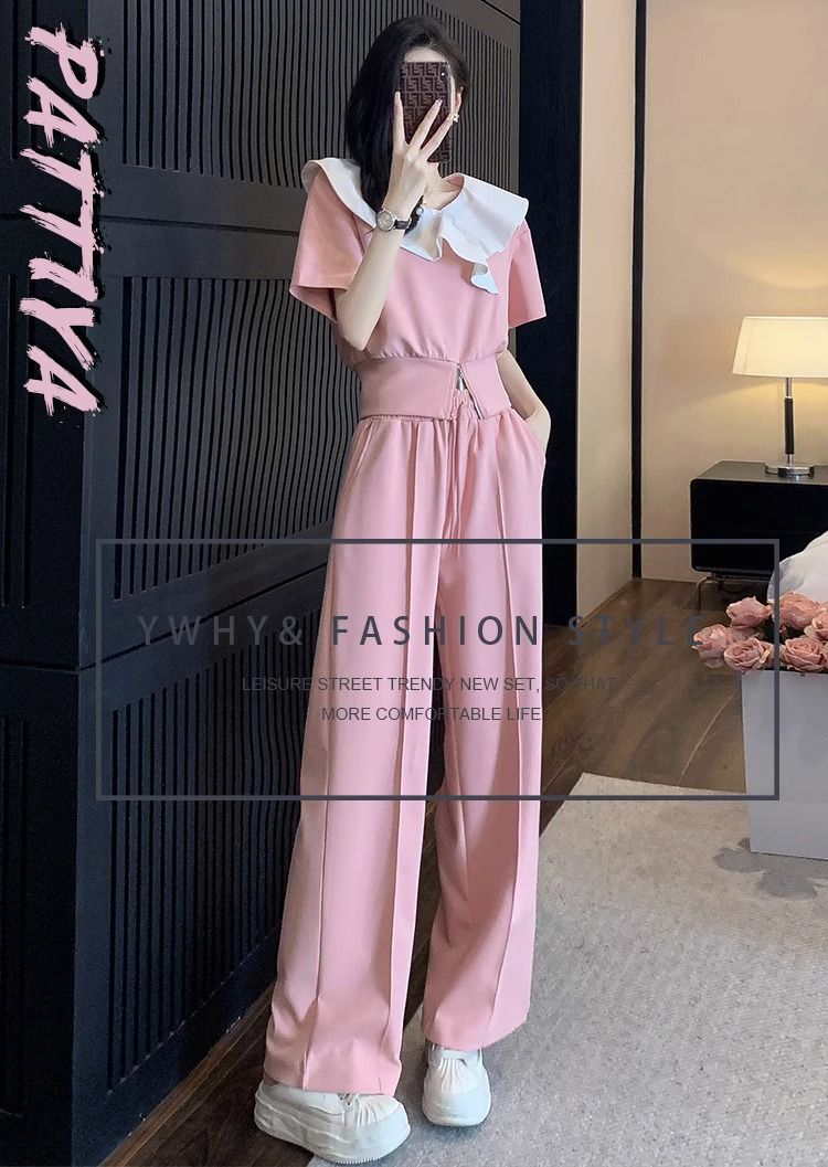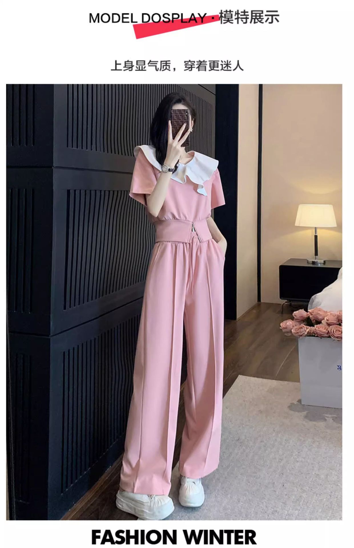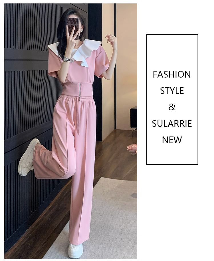 Внешняя торговля Трансграничные 2025 Новый модный повседневный спортивный костюм женский летний сладкий темперамент с короткими рукавами, широкие брюки, два комплекта