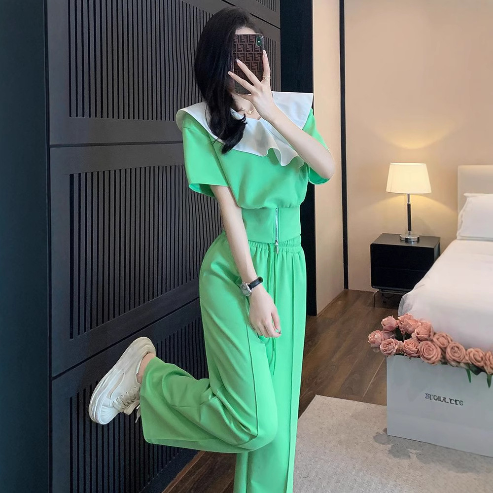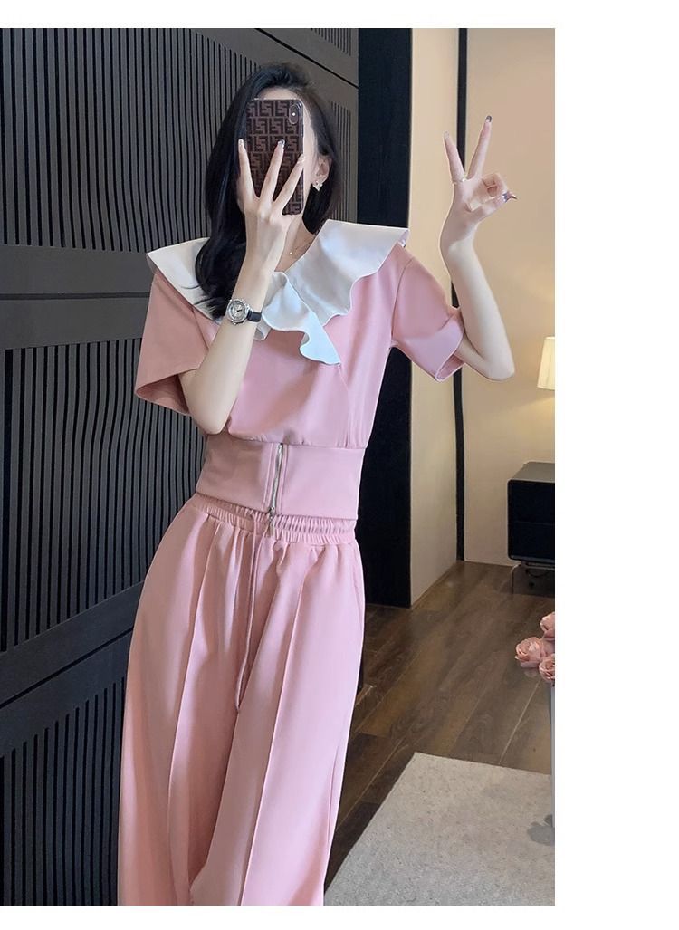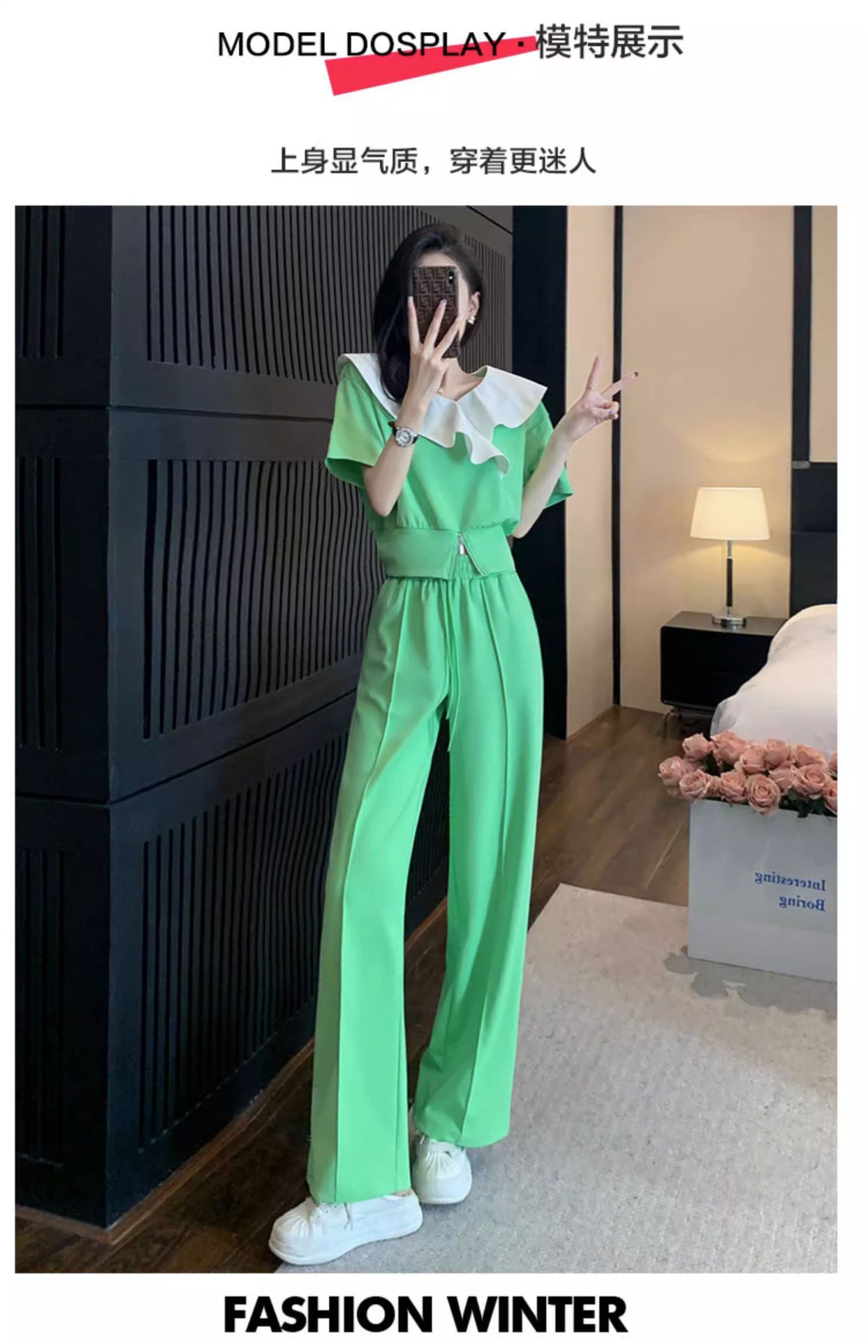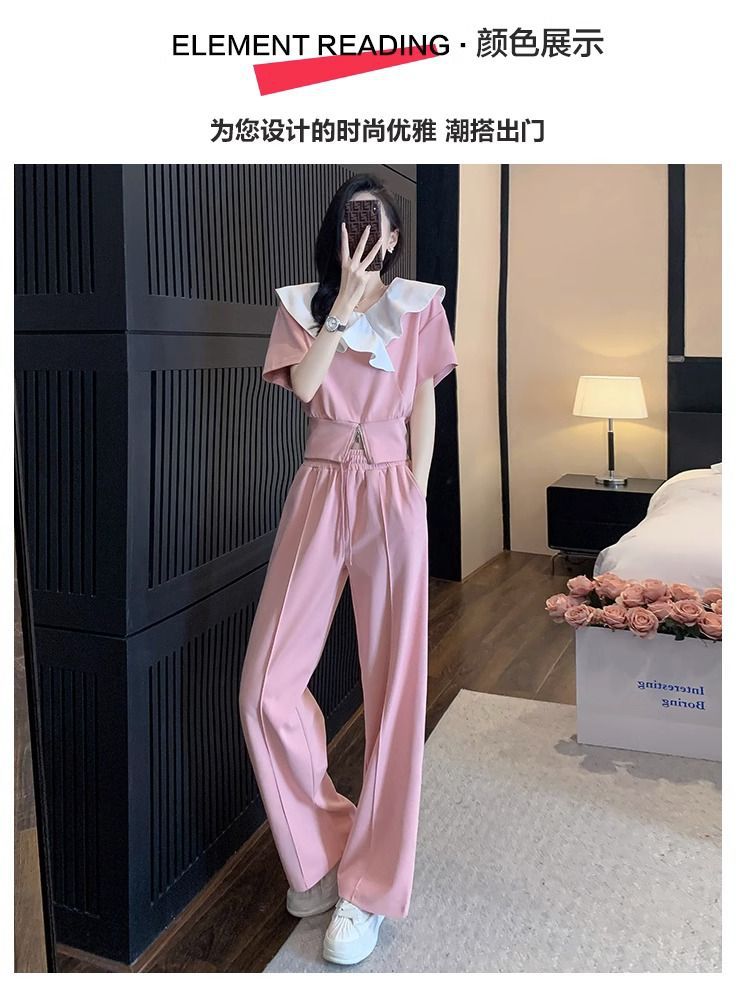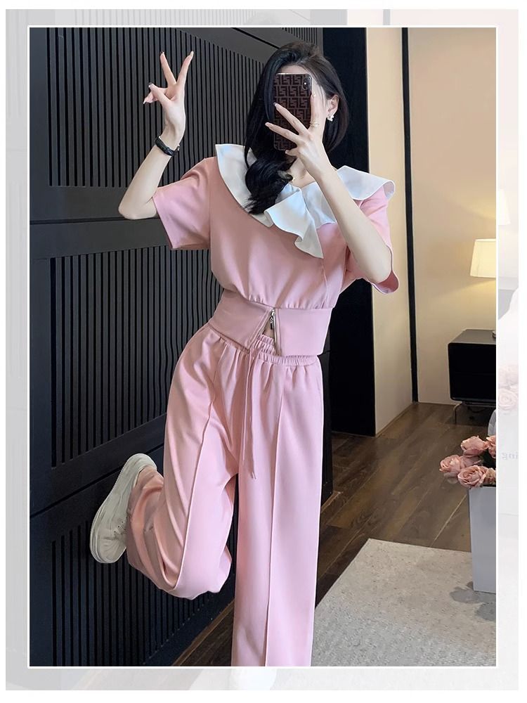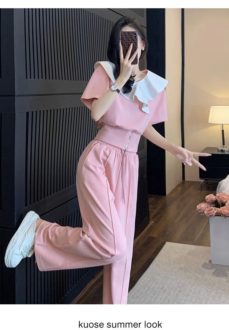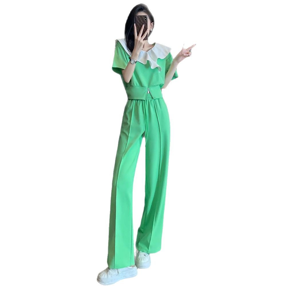 Внешняя торговля Трансграничные 2025 Новый модный повседневный спортивный костюм женский летний сладкий темперамент с короткими рукавами, широкие брюки, два комплекта
