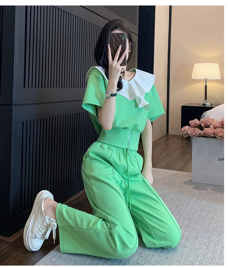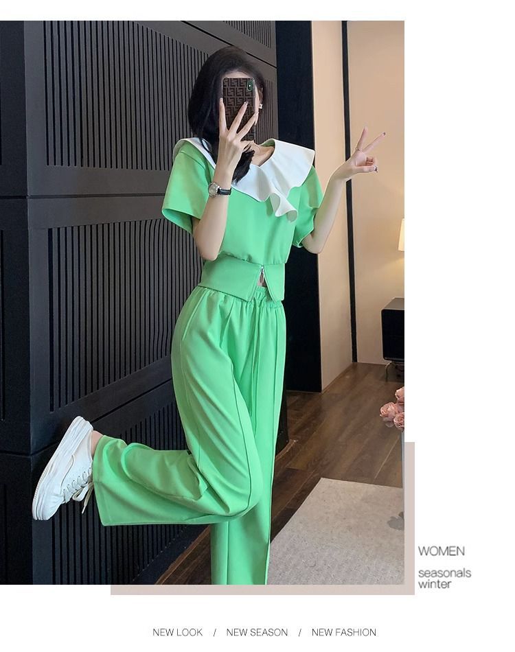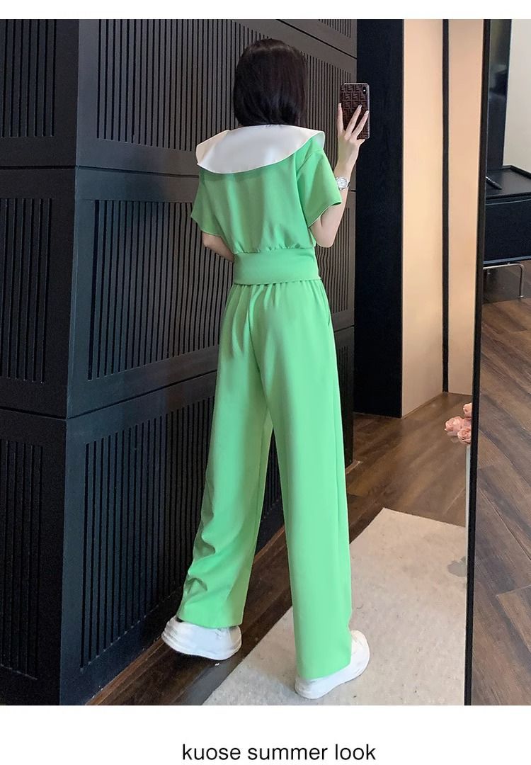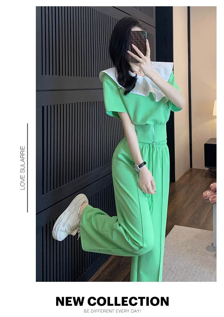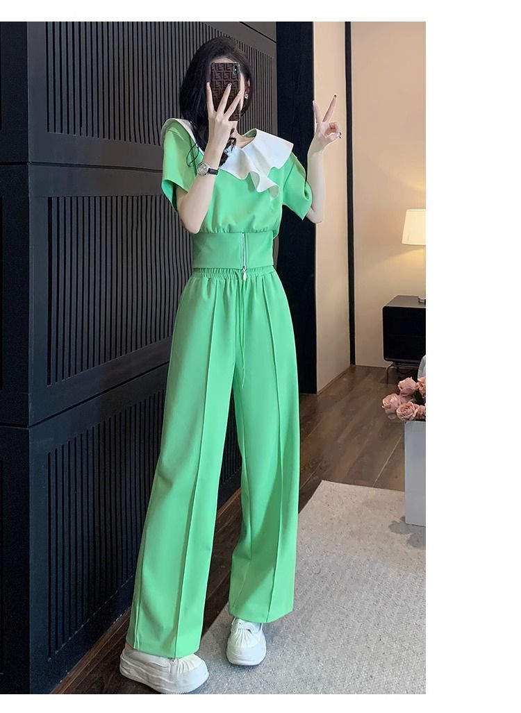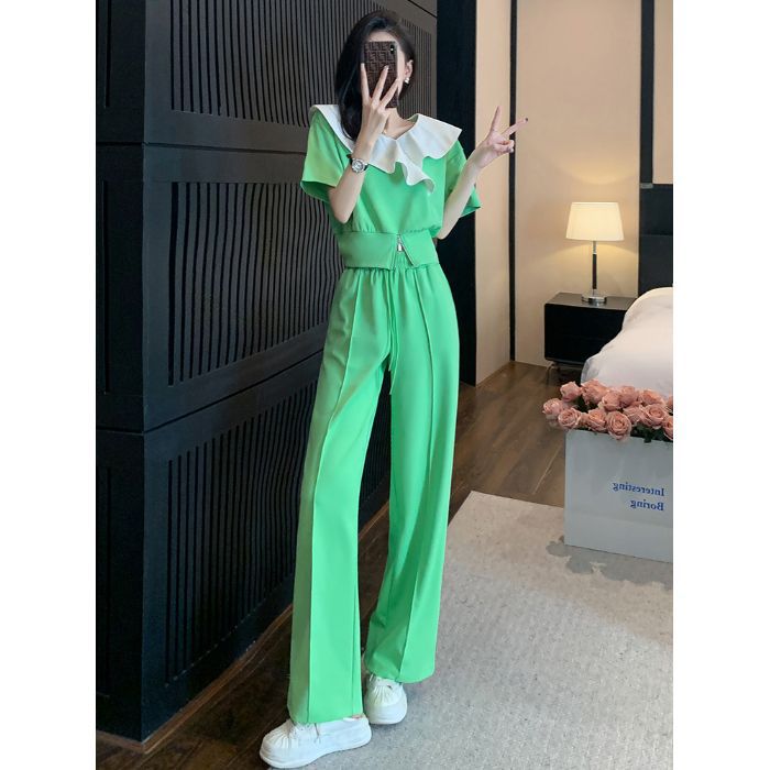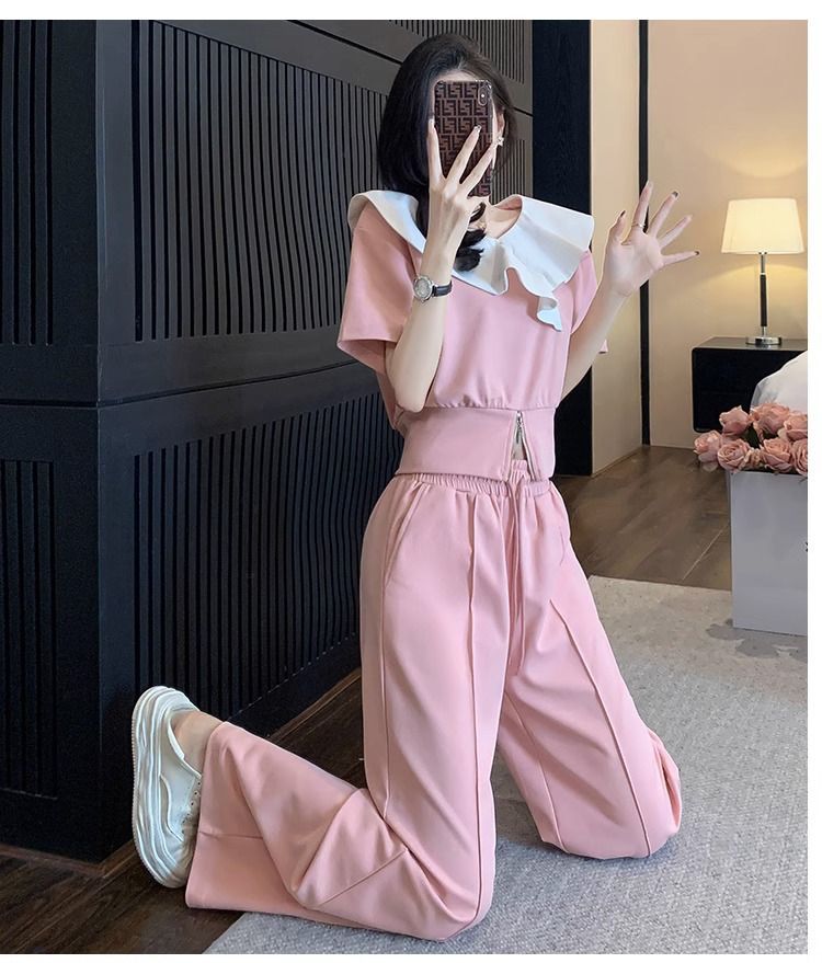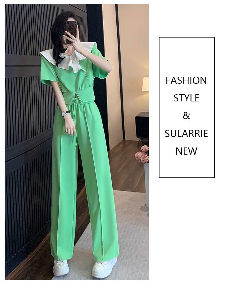 Внешняя торговля Трансграничные 2025 Новый модный повседневный спортивный костюм женский летний сладкий темперамент с короткими рукавами, широкие брюки, два комплекта