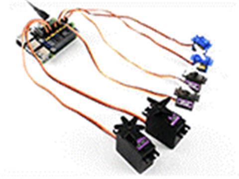 - I2C接口控制,仅需2根信号线,即可实现舵机驱动