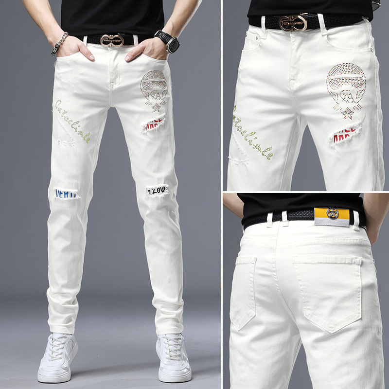 Высококачественные европейские новые эластичные мужские джинсы узкие мужские джинсы мужские европейские модные штаны