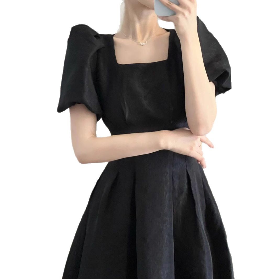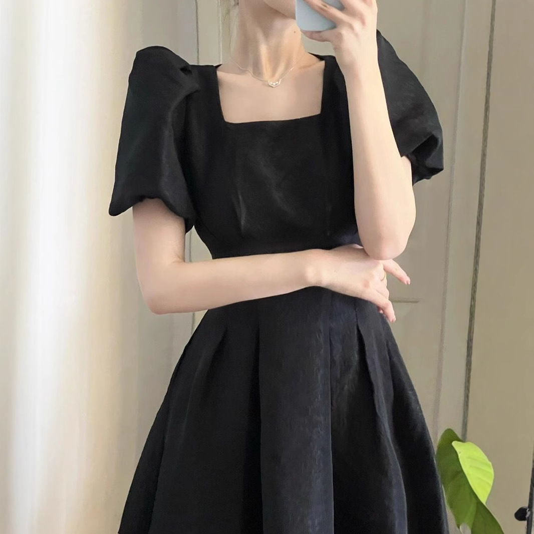 Летний новый французский квадратный воротник первая любовь белая длинная юбка женская талия тонкая и свежая темпераментная юбка с короткими рукавами