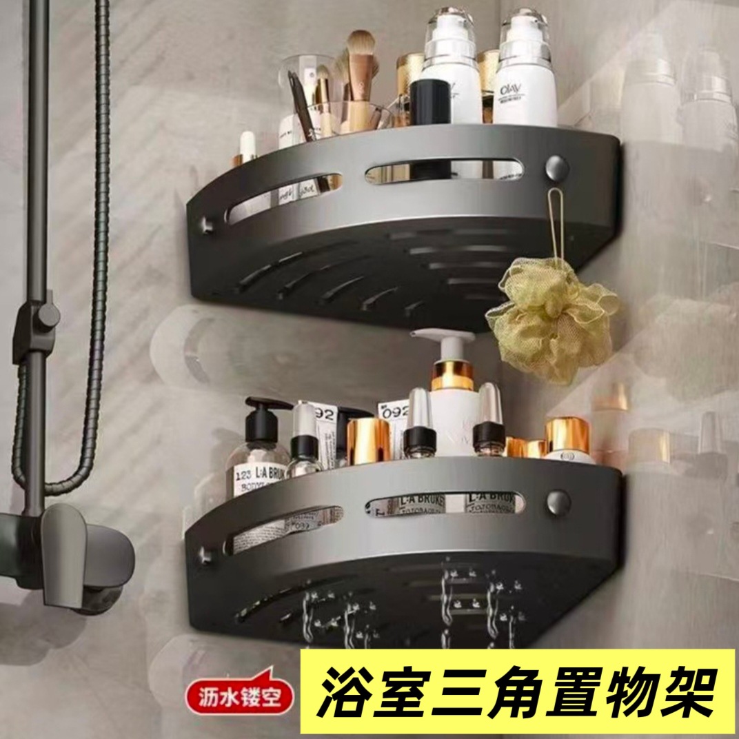 免打孔 浴室 转角 置物架 厨卫 收纳 收纳架 墙角架 墙角 壁挂式 洗手间 三角篮 层架 无痕贴 卫生间