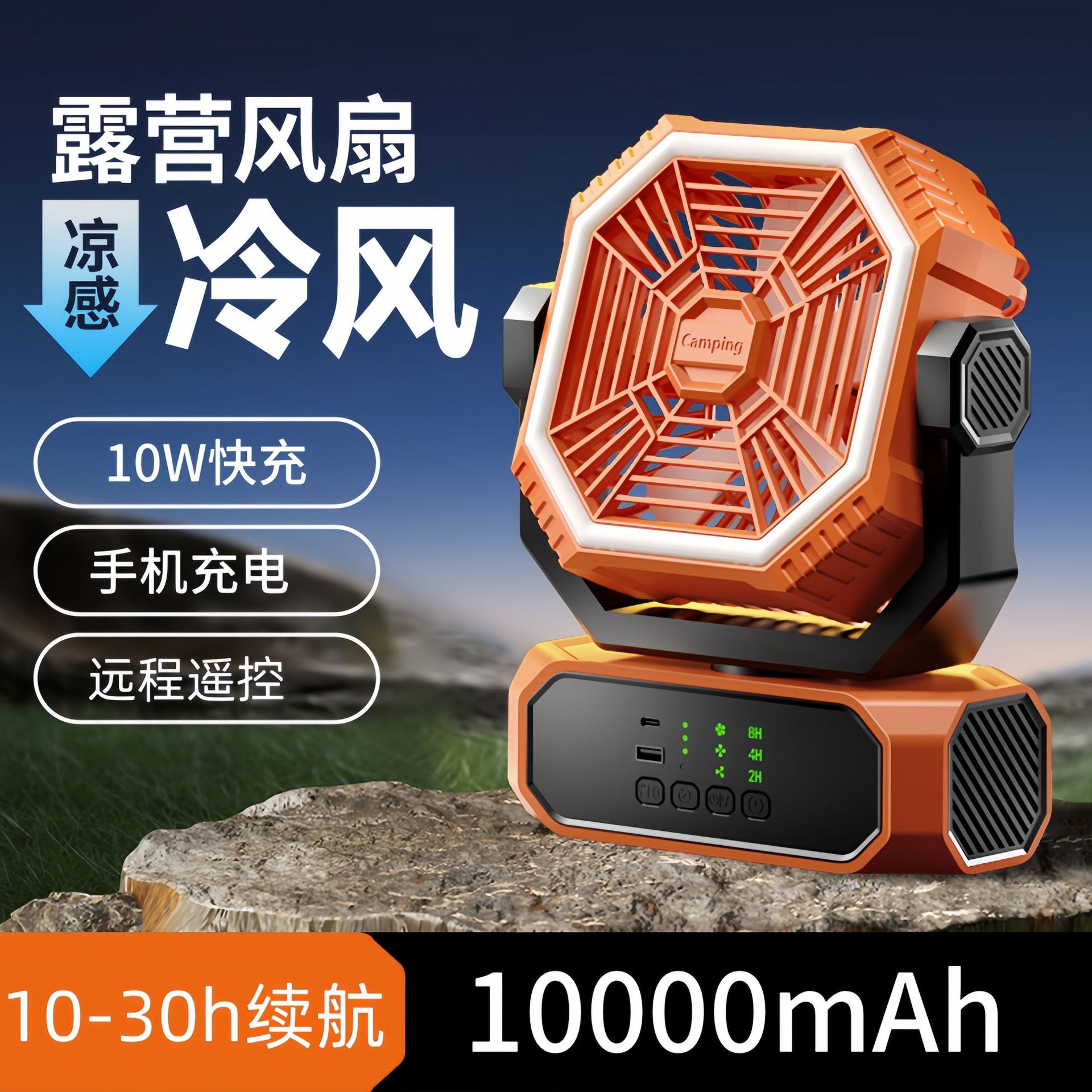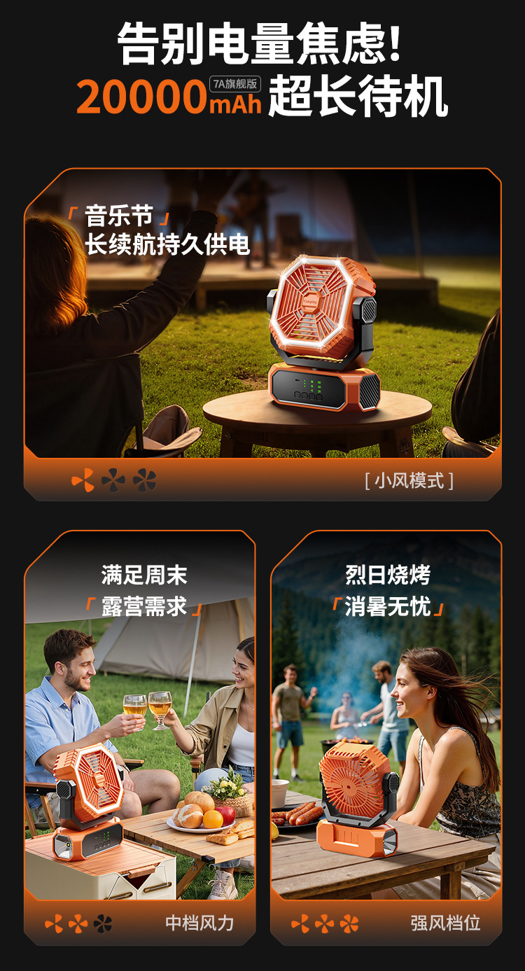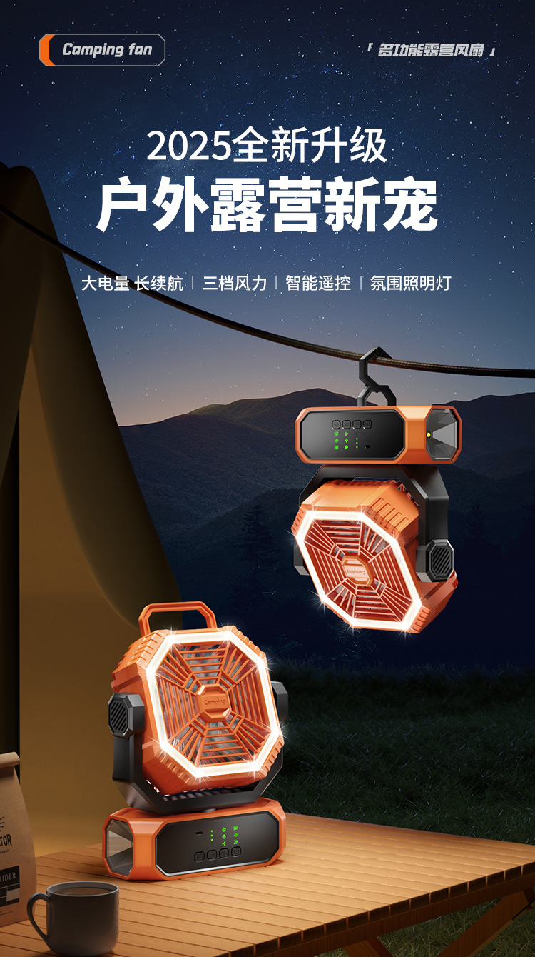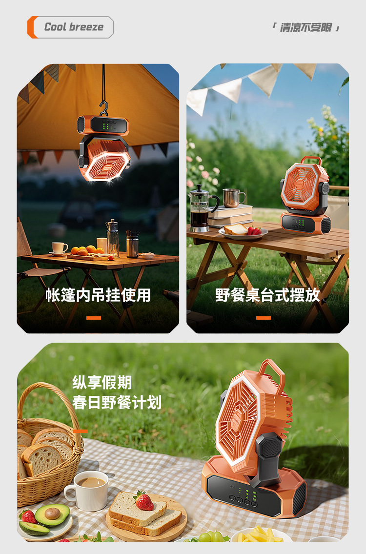 Вентилятор для кемпинга и активного отдыха с длительным временем автономной работы, поворотной головкой, зарядкой от повербанка, для кемпинга, рыбалки, с умным пультом дистанционного управления