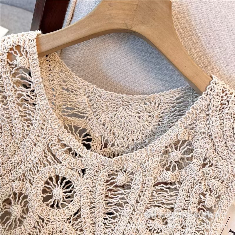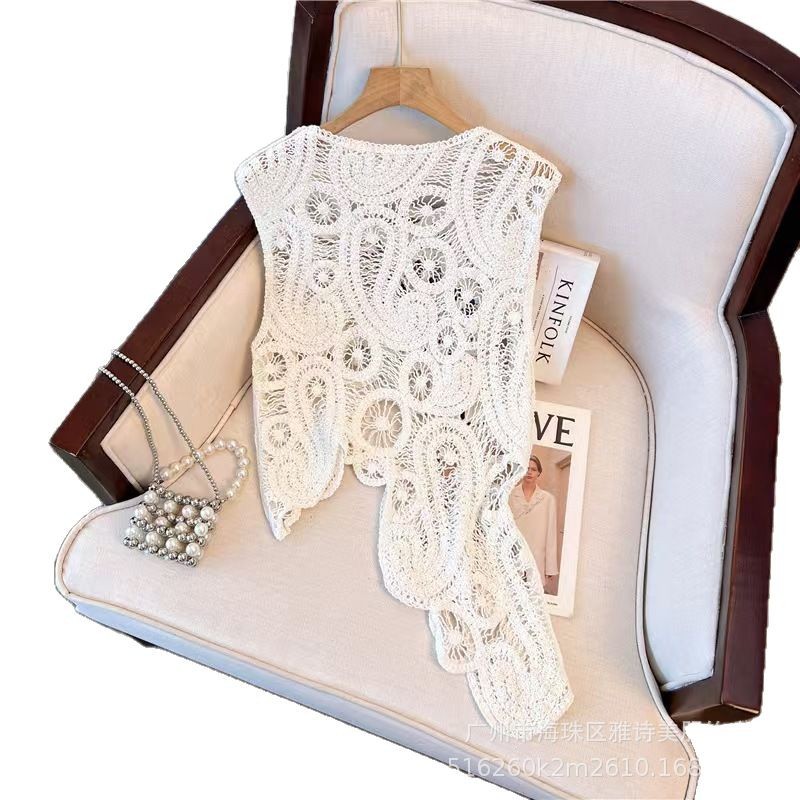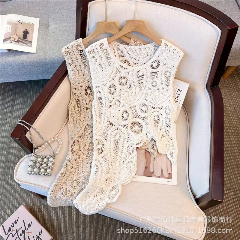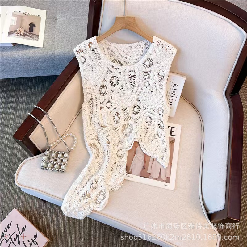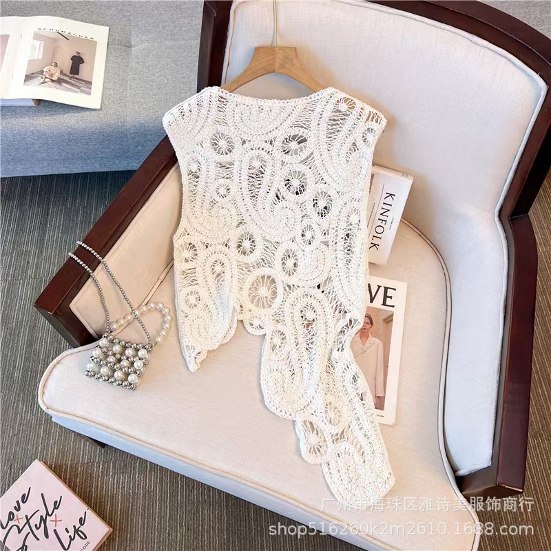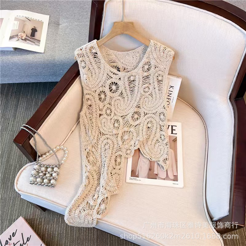 Весенняя французская наружная одежда с гофровыми полыми блузками нишевые шикарные и красивые нерегулярные вязаные тонкие блузки без рукавов