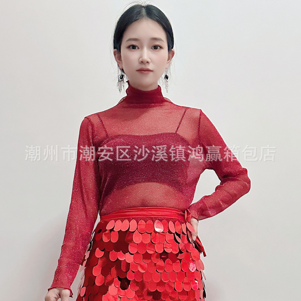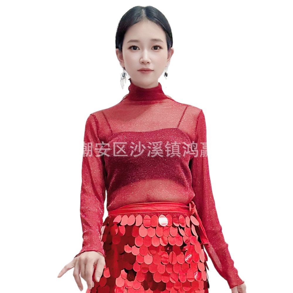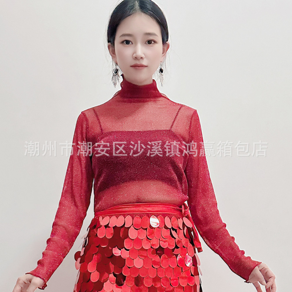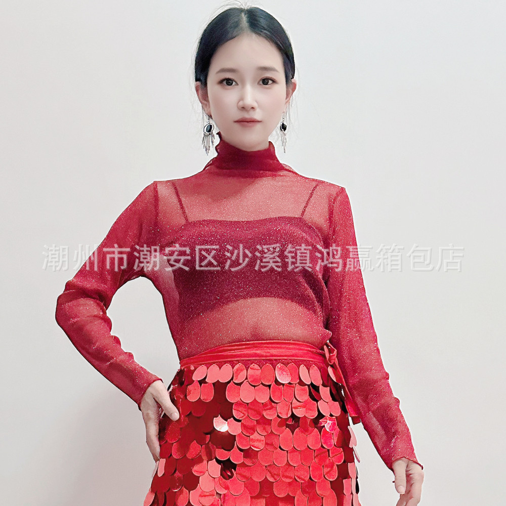 Танец живота костюм топ 2025 новый сексуальный серебряный точечный сетчатый пряжа с длинными рукавами