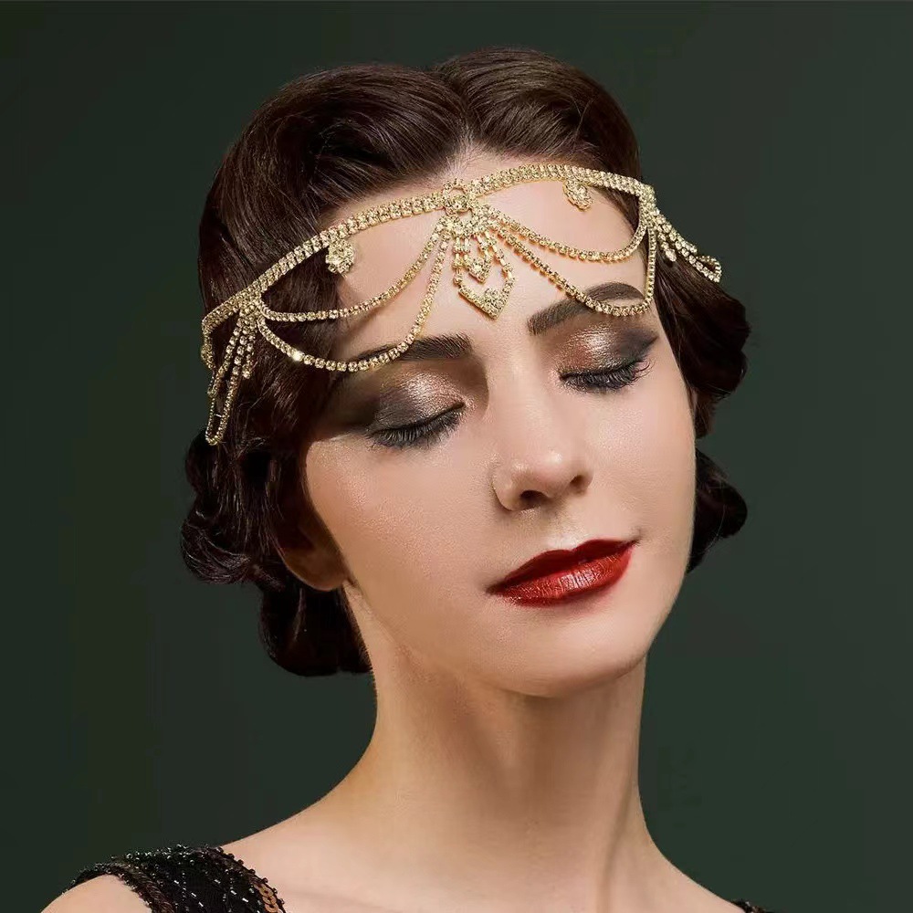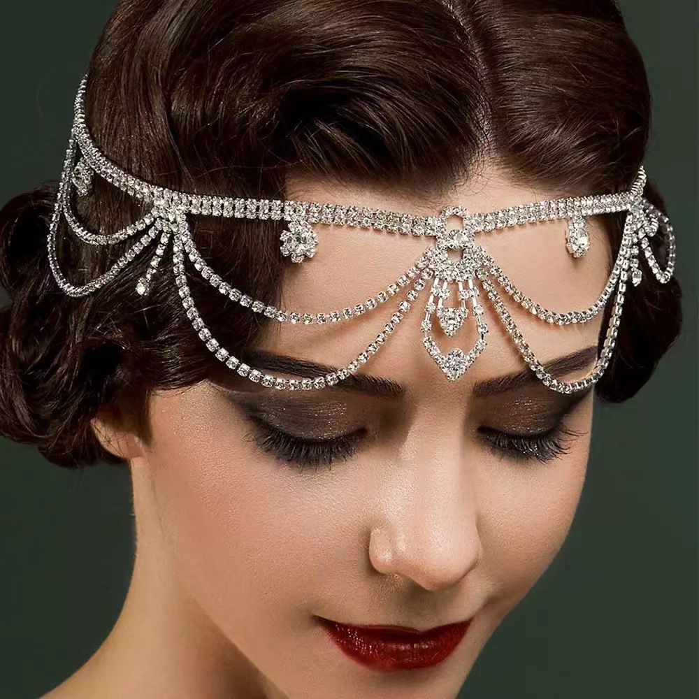 跨境新品欧美时尚水钻发链女式波西米亚风多层发饰小众个性风潮