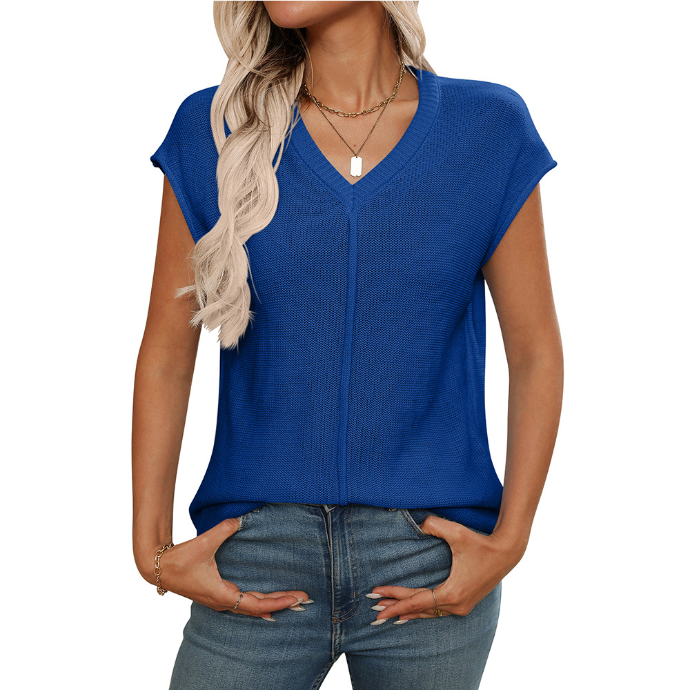 2025 лето новый трансграничный европейский и американский женский амазонка женский топ с V-образным вырезом вязаный толстый свитер повседневный