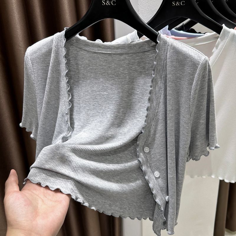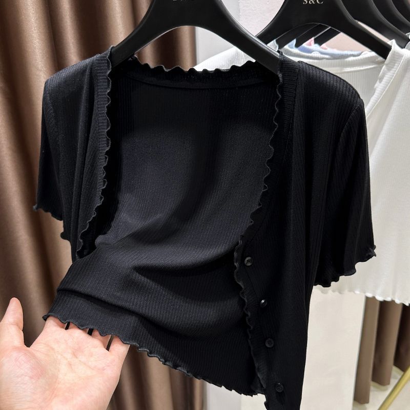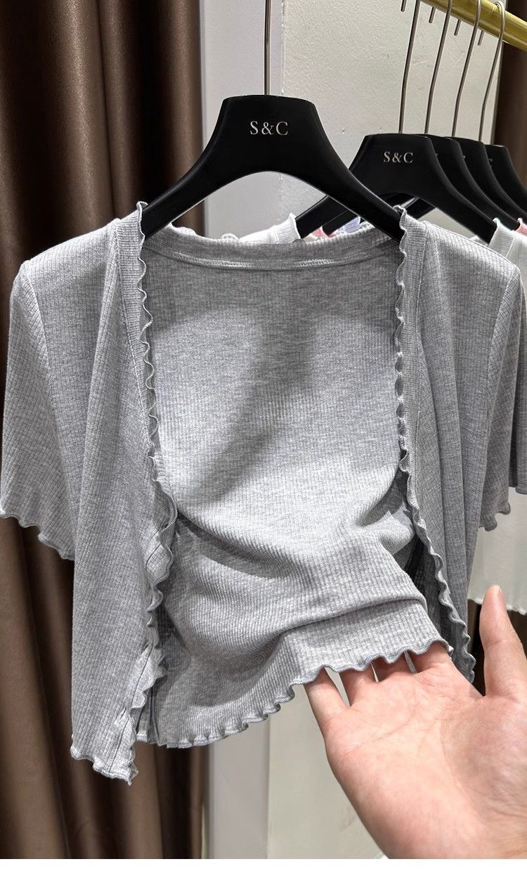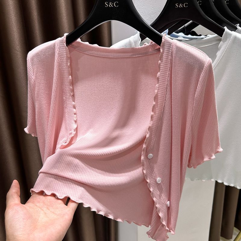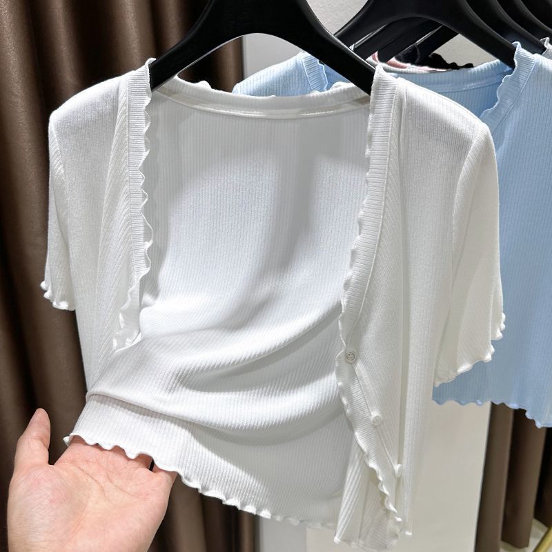 Модал большого размера с короткими рукавами шаль женский толстый мм летний кардиган солнцезащитный крем деревянный грибок плеча короткая блузка