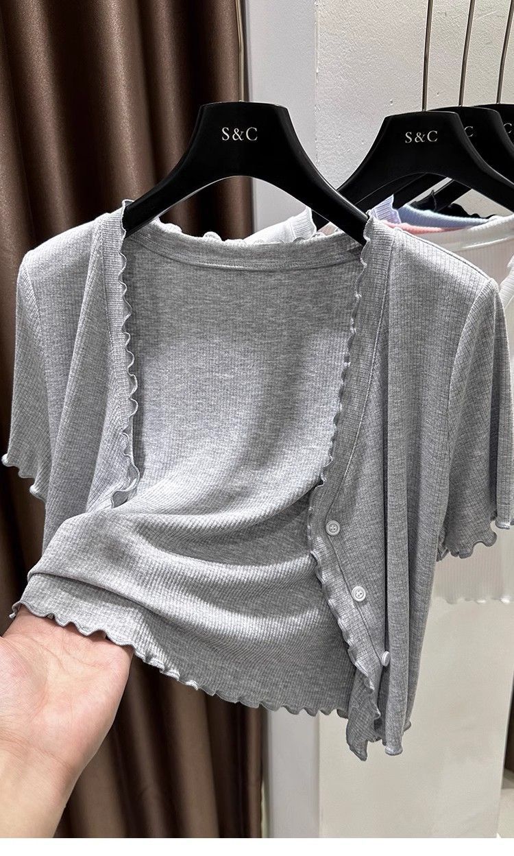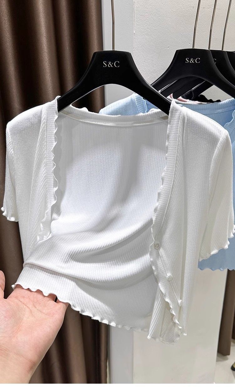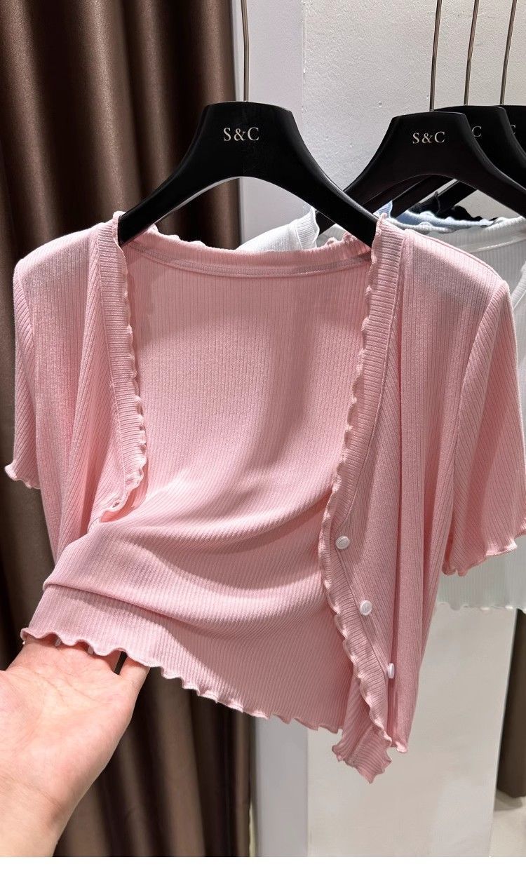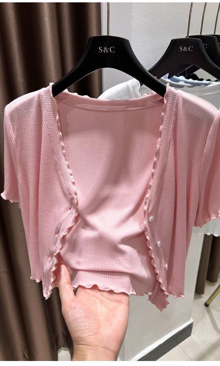 Модал большого размера с короткими рукавами шаль женский толстый мм летний кардиган солнцезащитный крем деревянный грибок плеча короткая блузка