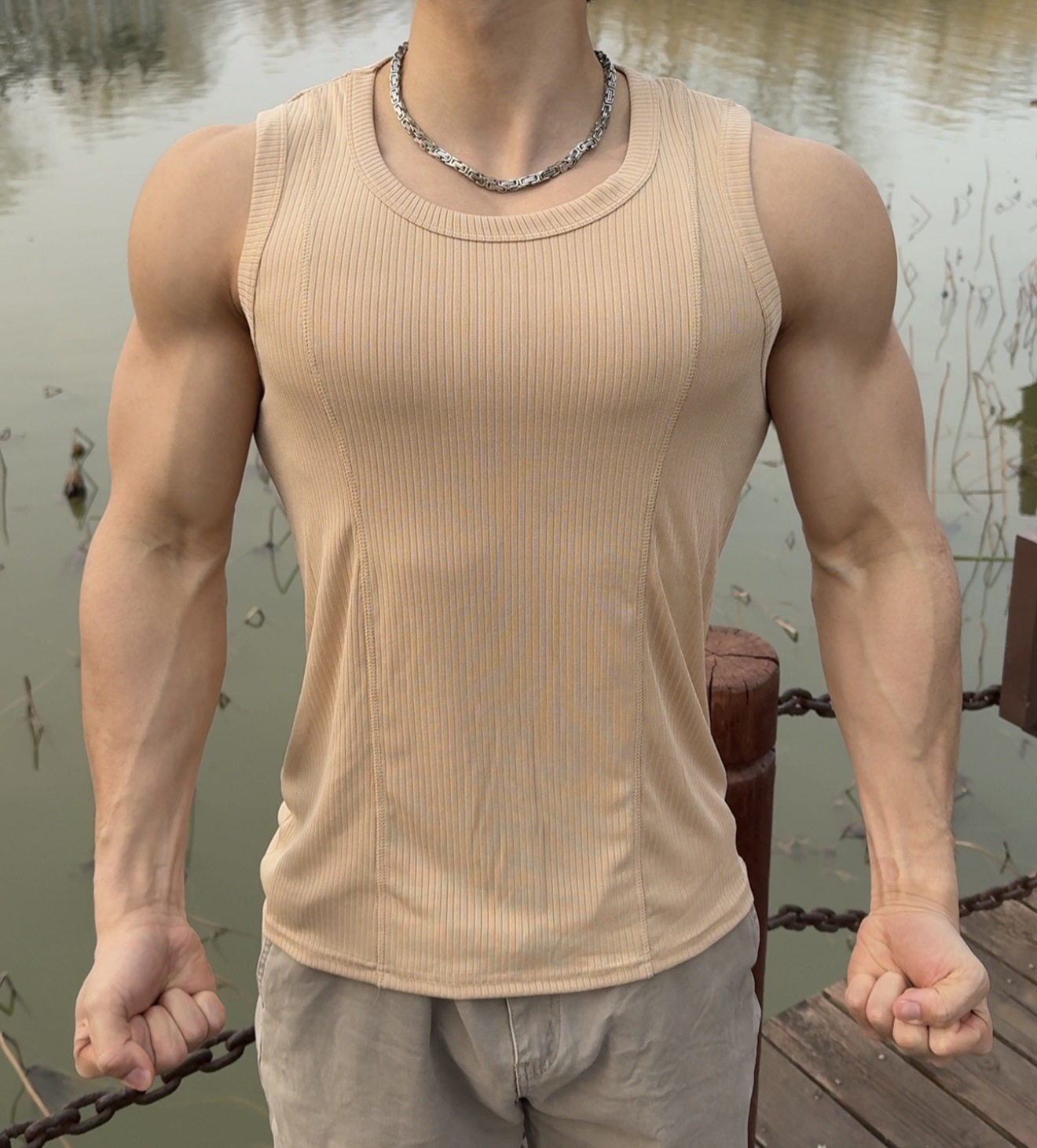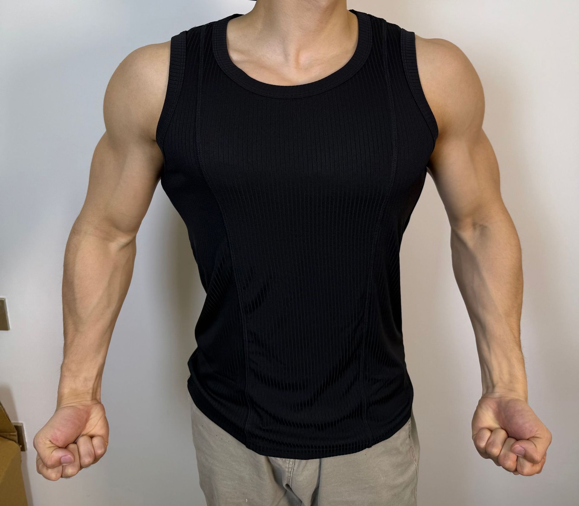 Гребенчатая текстура показывает большой высокий жилет мужской летний спорт-отдых фитнес-тренировки