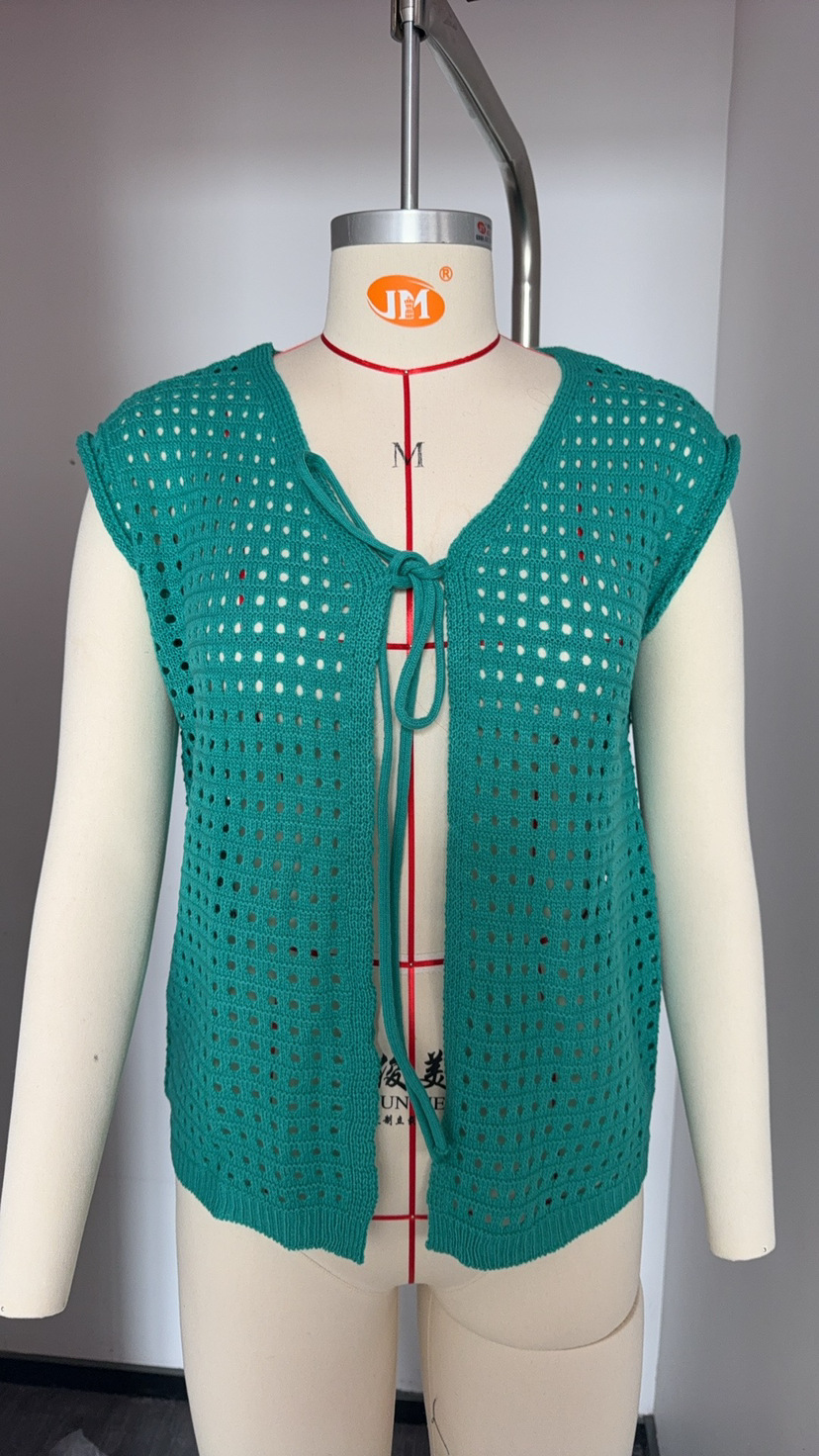 2025 Трансграничная амазонка Европейская и американская внешняя торговля женская полый свитер с короткими рукавами трикотажный кардиган для отдыха шнуровка блузка