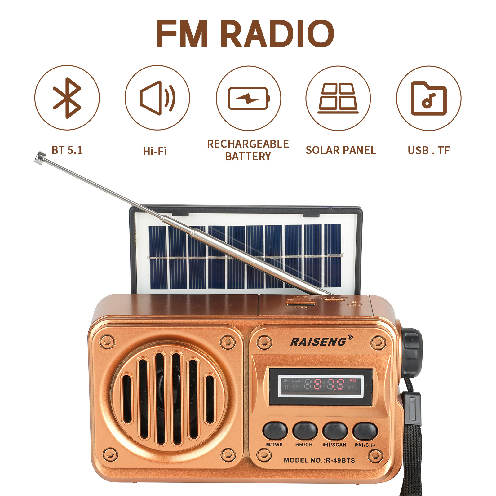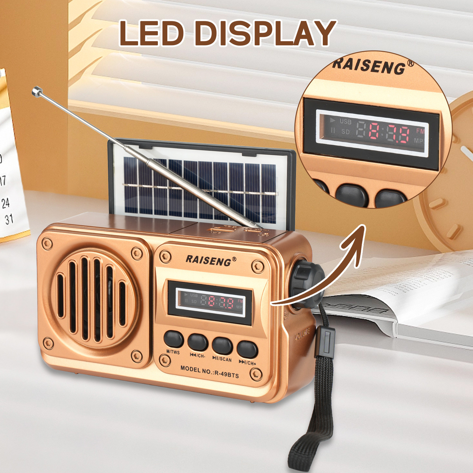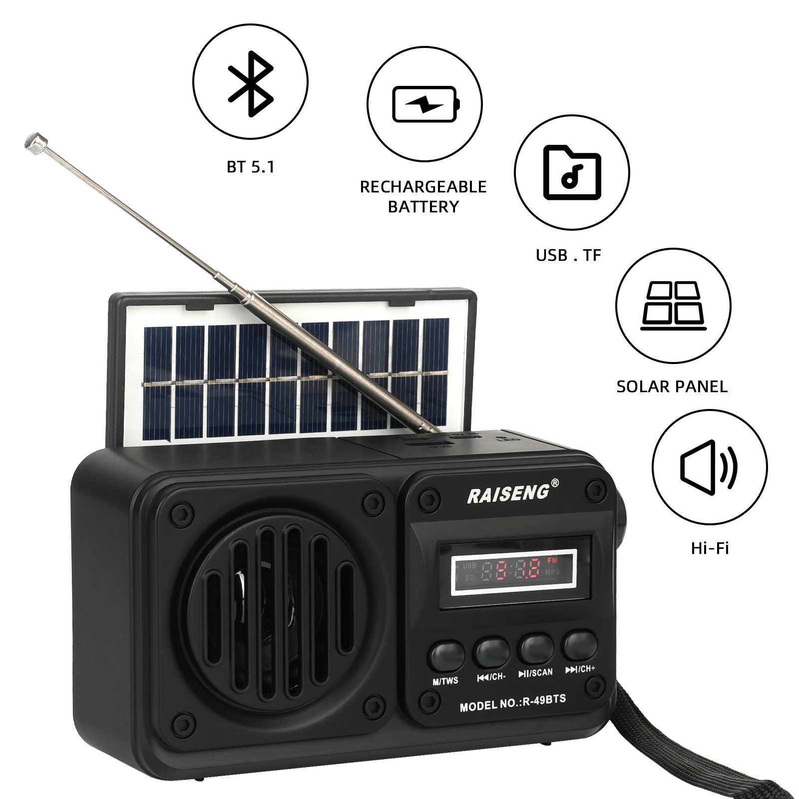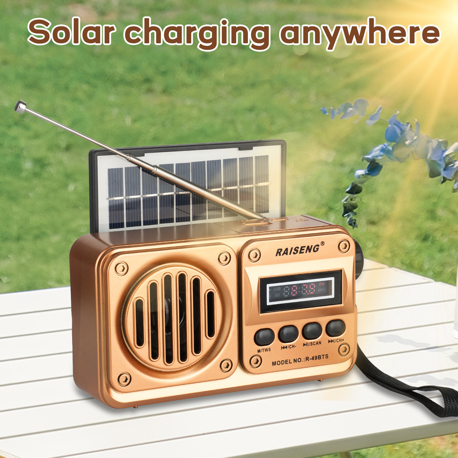 Трансграничный R-49BTS внешней торговли новый солнечный бас может вставлять карты высокого качества звука Bluetooth динамик FM автоматический поиск стола