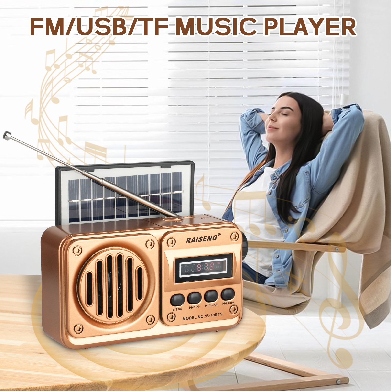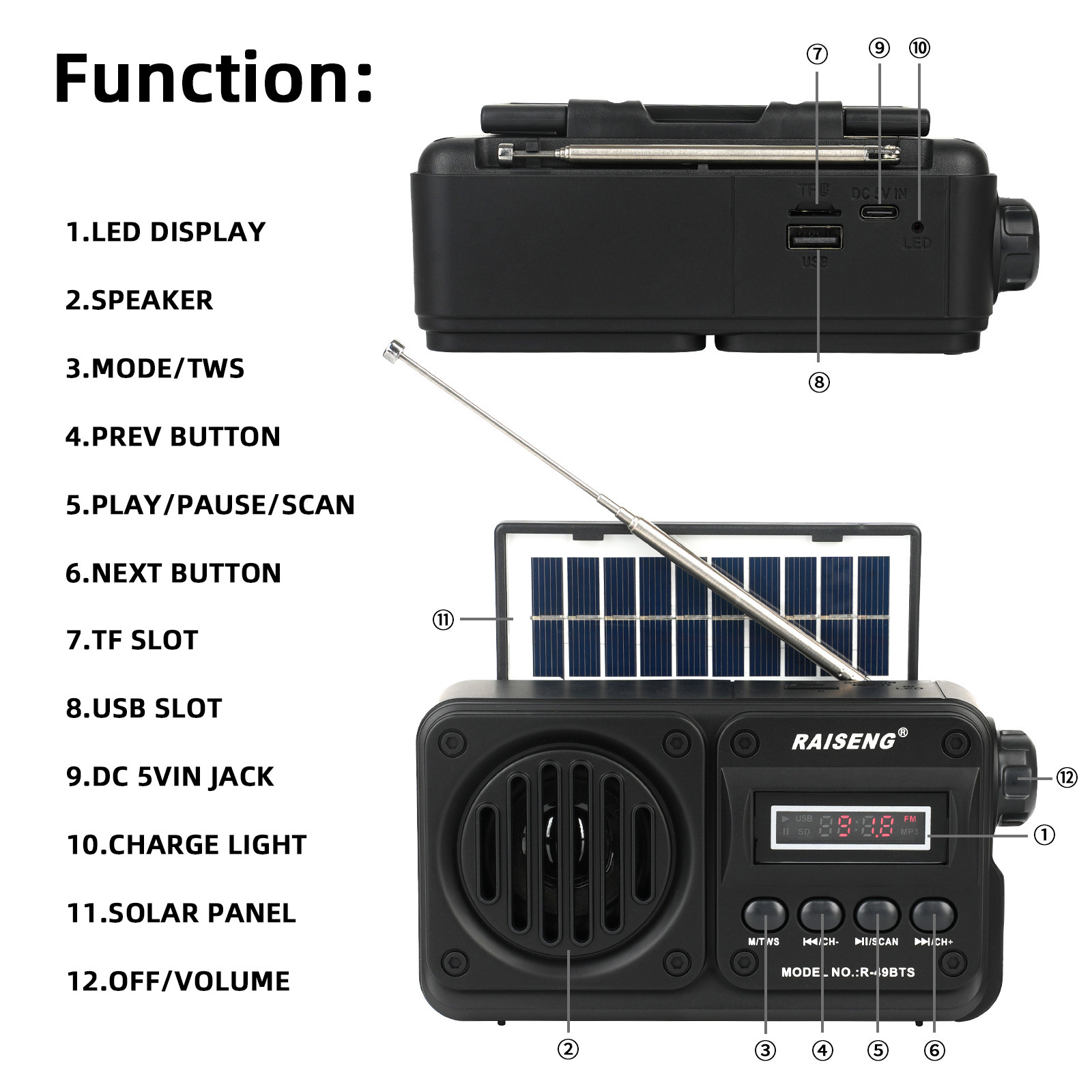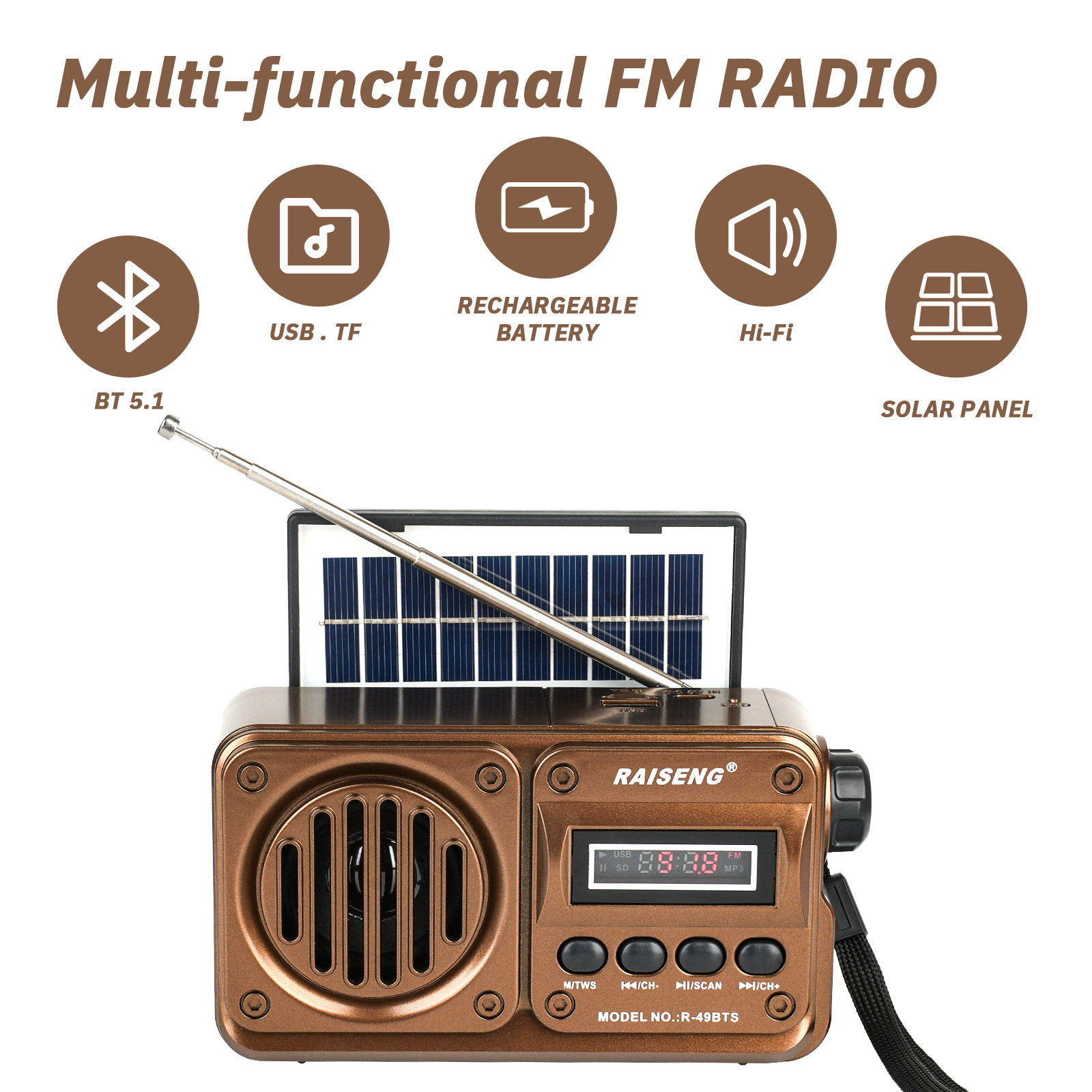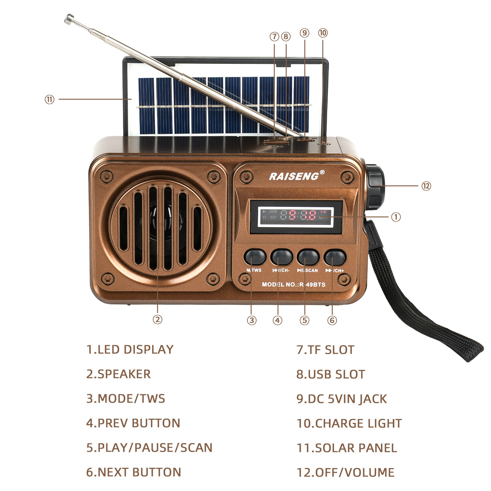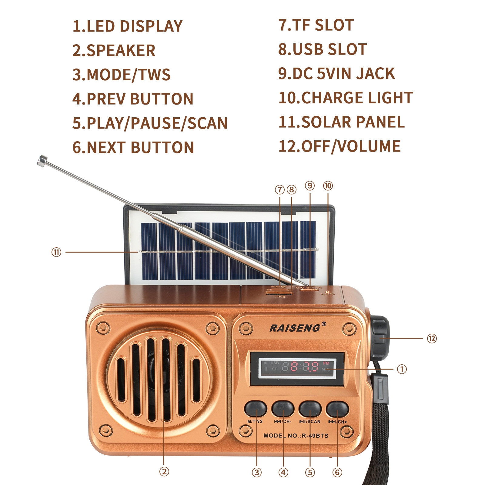 Трансграничный R-49BTS внешней торговли новый солнечный бас может вставлять карты высокого качества звука Bluetooth динамик FM автоматический поиск стола