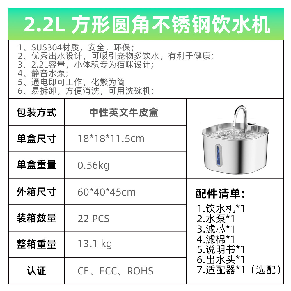 Новый 2.2L кошачий дозатор 304 из нержавеющей стали кормушка для домашних животных нейтральный английский мини-миска для кошек
