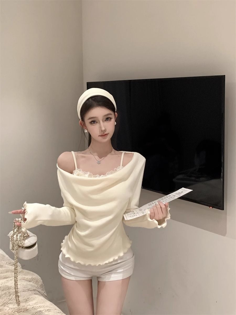 Трансграничные новые сшитые поддельные две футболки с длинными рукавами