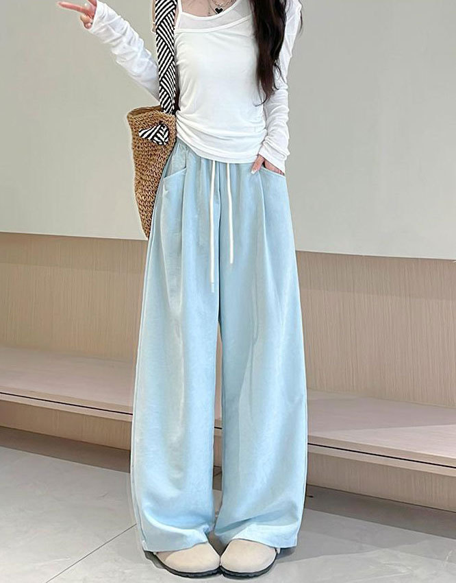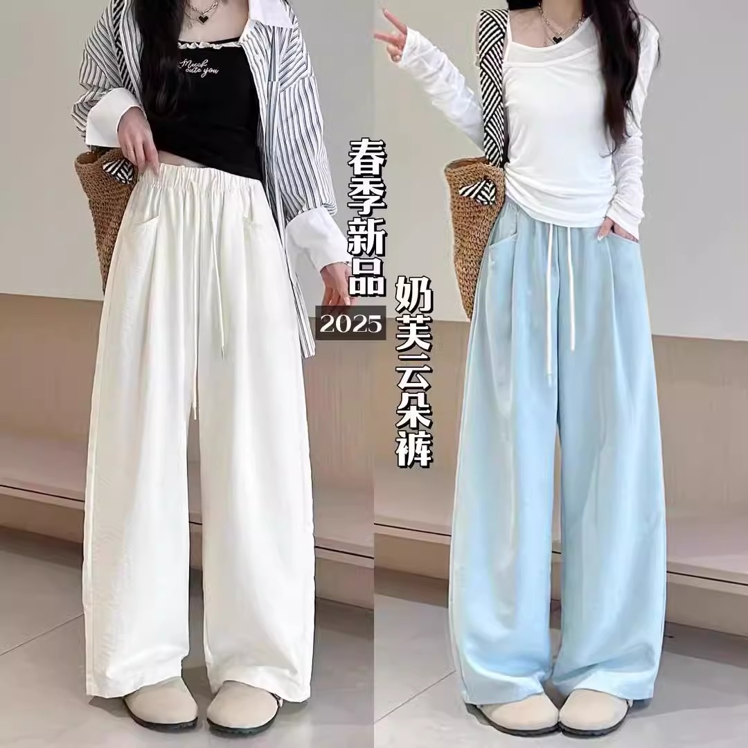 Naifu Cloud Брюки женские, лето 2023, новый корейский стиль, свободные тонкие повседневные женские брюки, драпированные широкие брюки в ленивом стиле