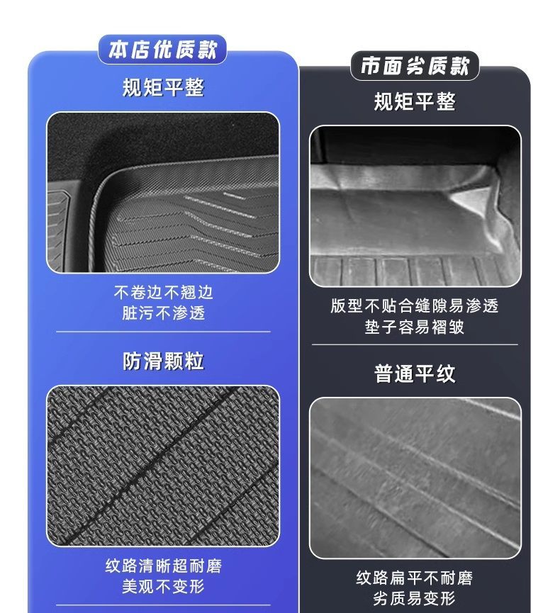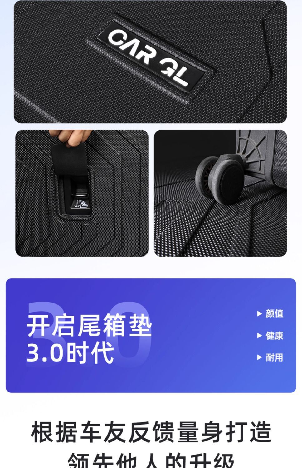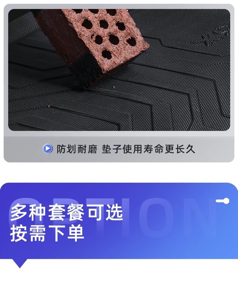 [Флагманское качество] Коврик для багажника из ТПЭ — трехмерная высокая сторона; [Водонепроницаемая и износостойкая] Задняя спинка из ТПЭ — улучшенная и утолщенная.; [Резервное обновление] Коврик багажника из ТПЭ + перегородки с обеих сторон; [Защитные сокровища] Коврик багажника из ТПЭ + задняя спинка; [Роскошный полный комплект] Коврик в багажник + подушка спинки + перегородки с обеих сторон; [Удобное хранение] Перегородки с обеих сторон