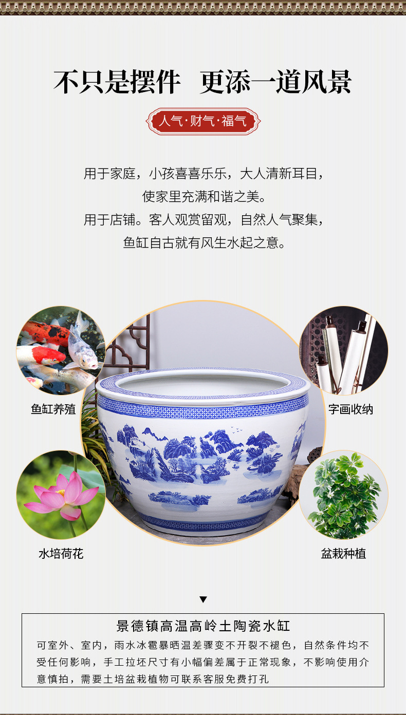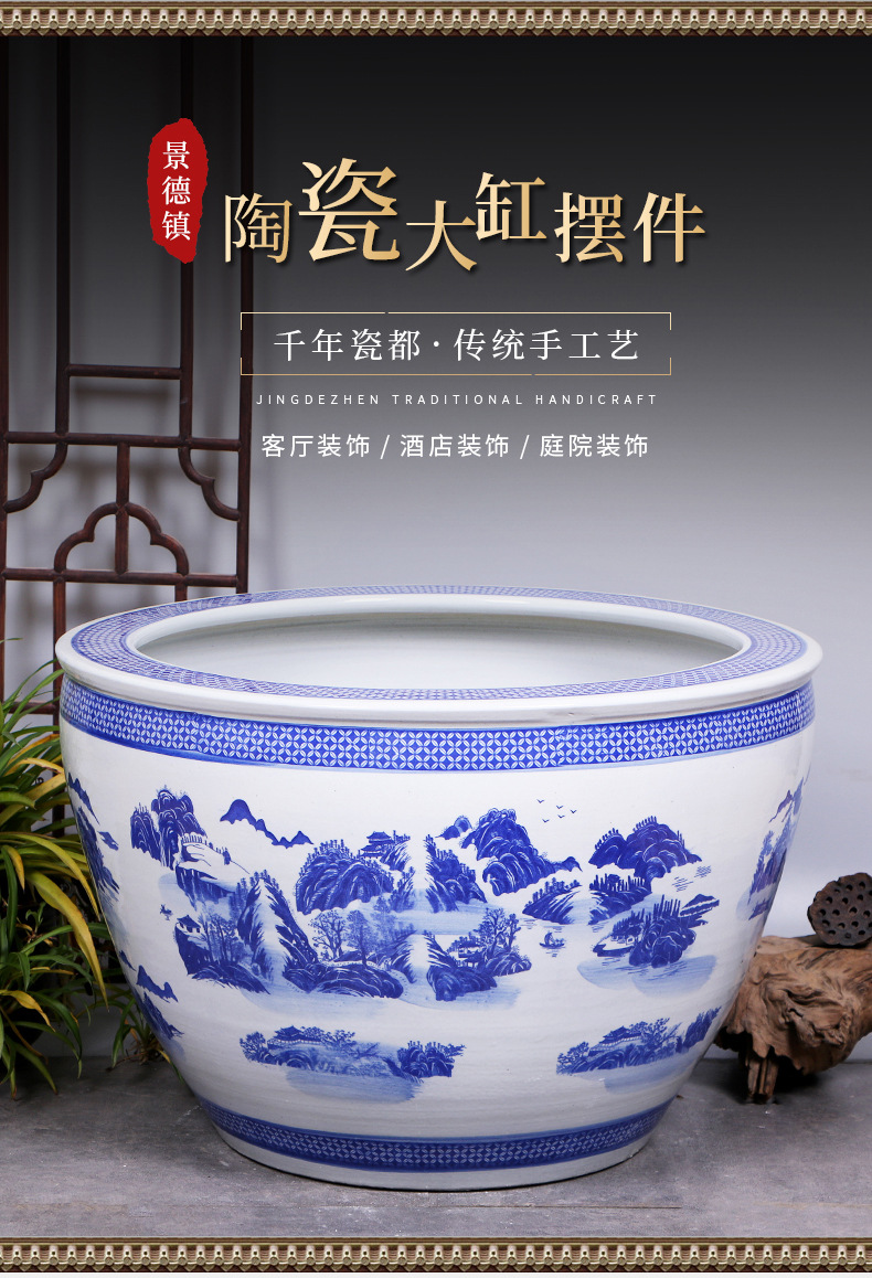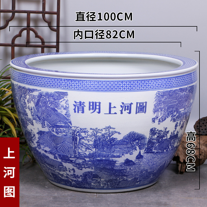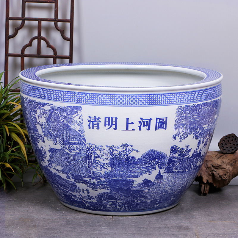 Большой внутренний дворик Цзиндэчжэнь сине-белый фарфоровый аквариум с золотой рыбкой