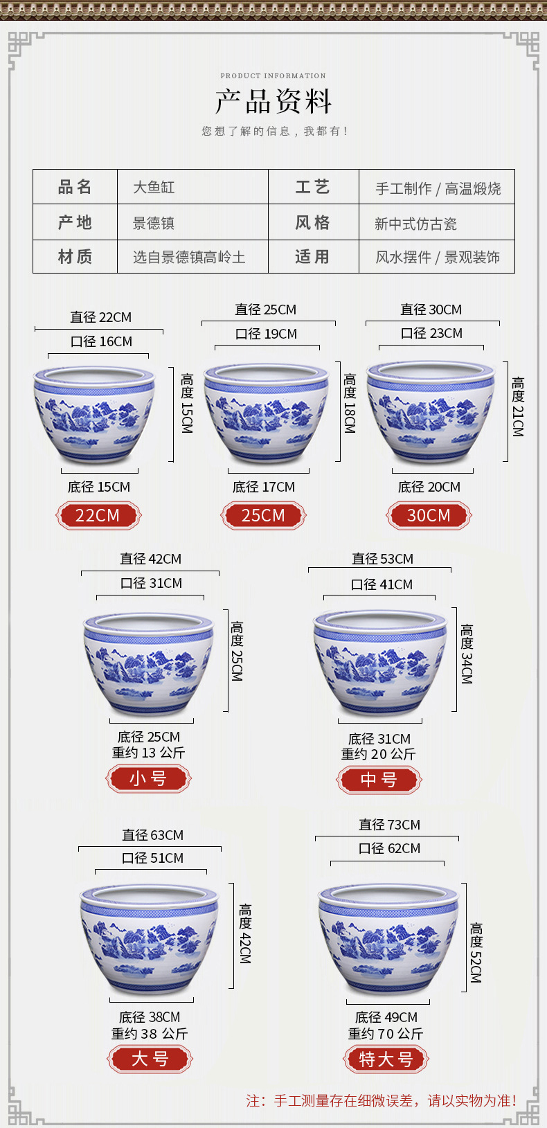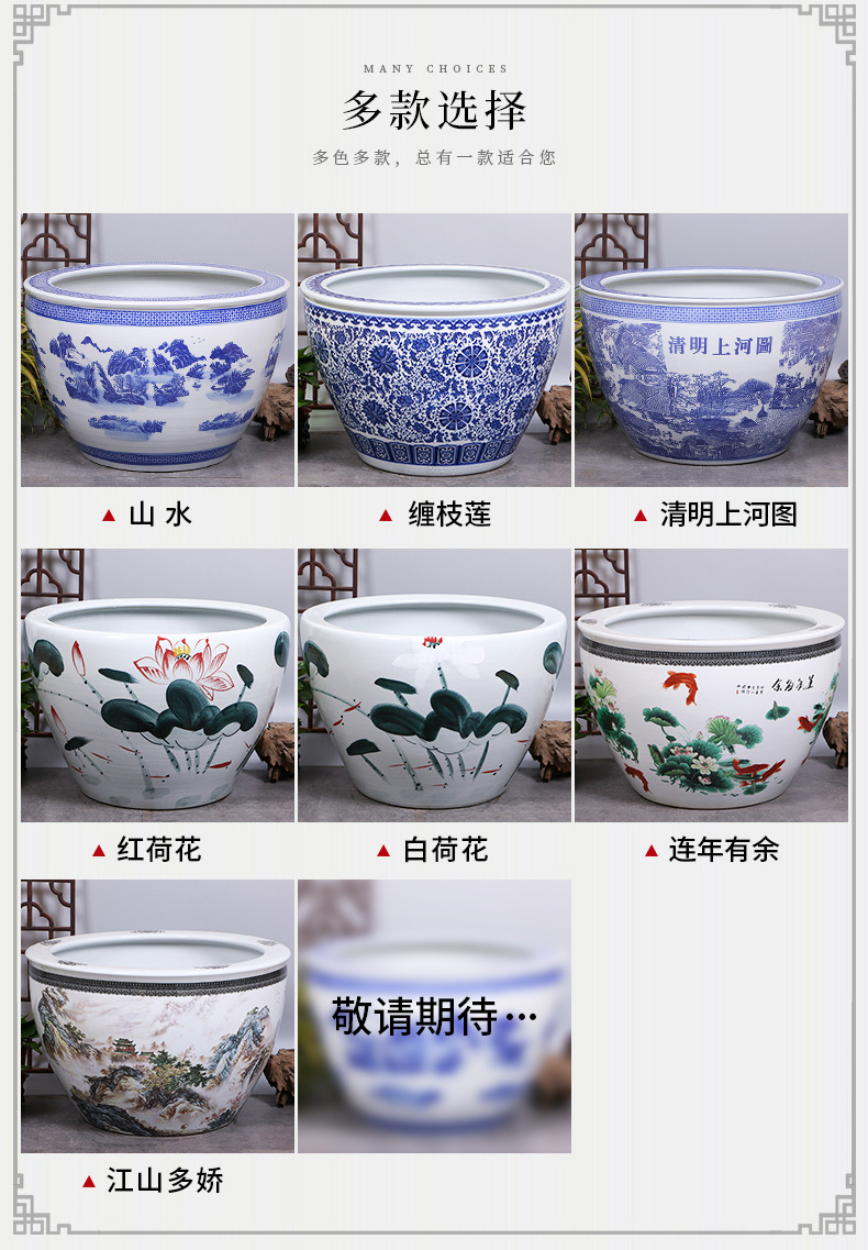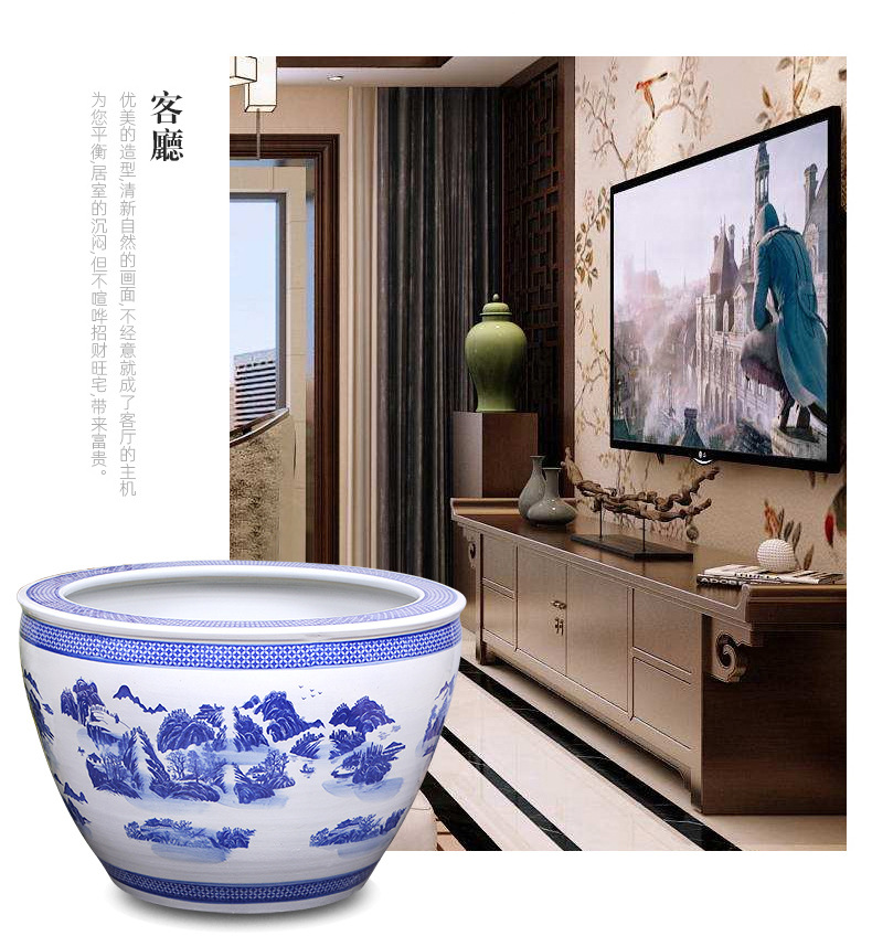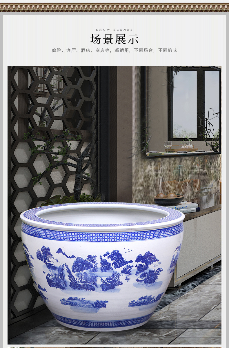 Большой внутренний дворик Цзиндэчжэнь сине-белый фарфоровый аквариум с золотой рыбкой