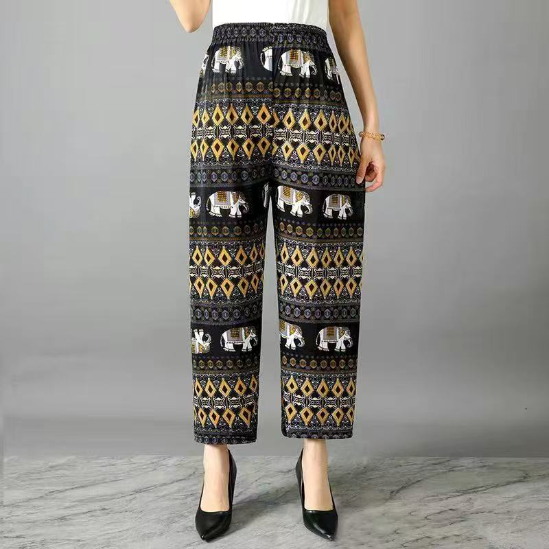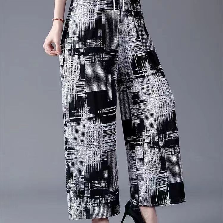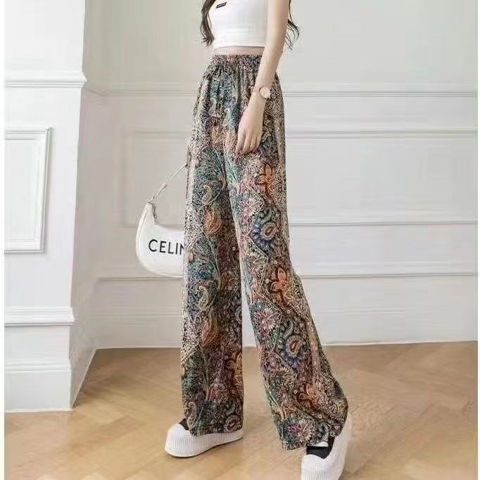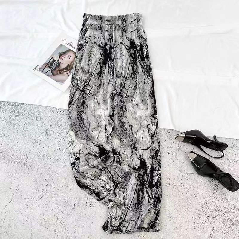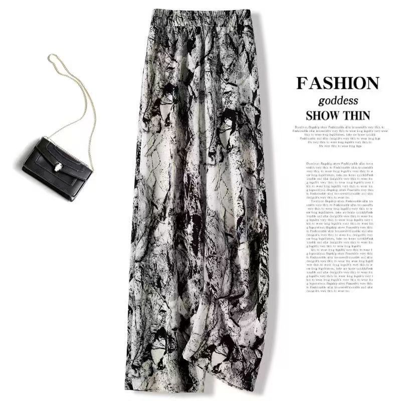 Чернила живопись дикая повседневная свободная и висяча тонкие широкие брюки брюки иностранные брюки женские летние брюки женский лед