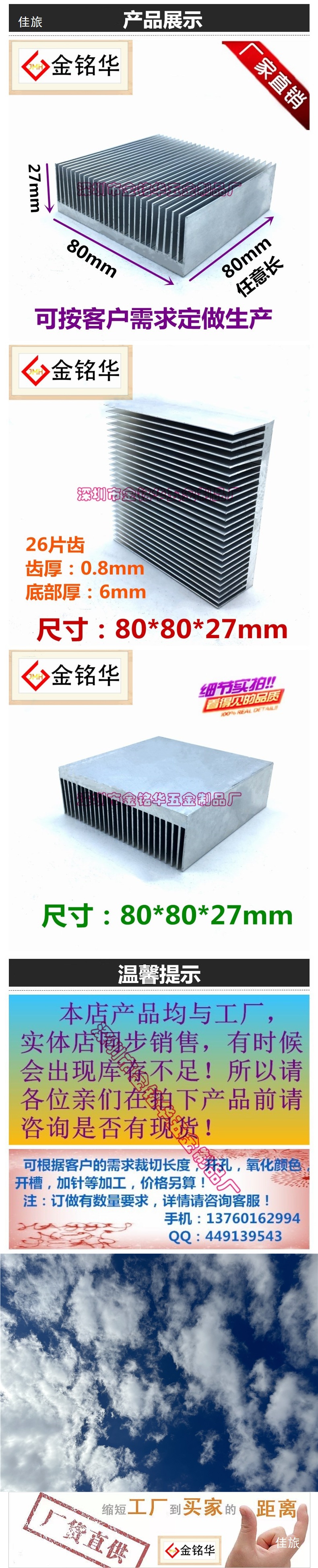 Алюминиевый профиль с плотным зубцом высокой мощности радиатор 80x80x27 мм алюминиевый радиатор модуль питания