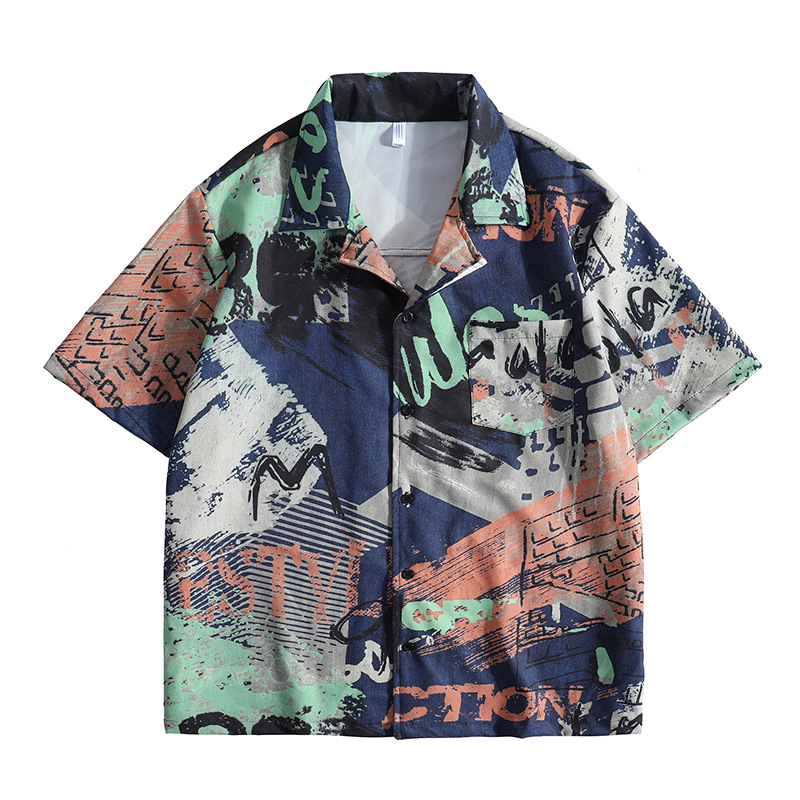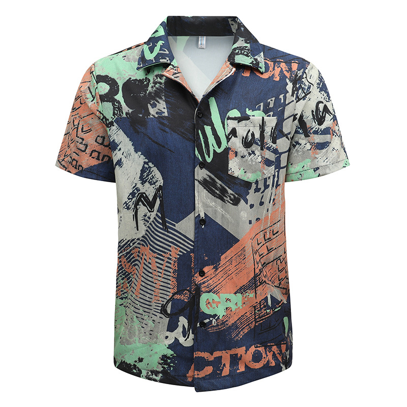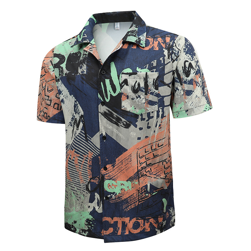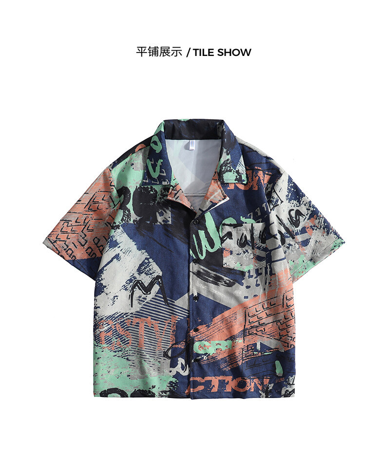 Летняя новая модная мода большого размера трансграничного свободного принта рубашка с короткими рукавами