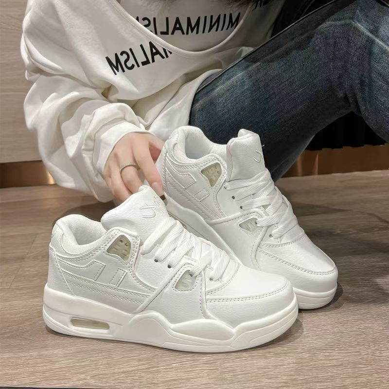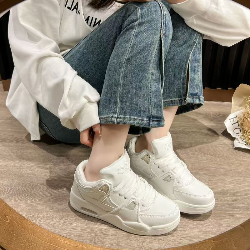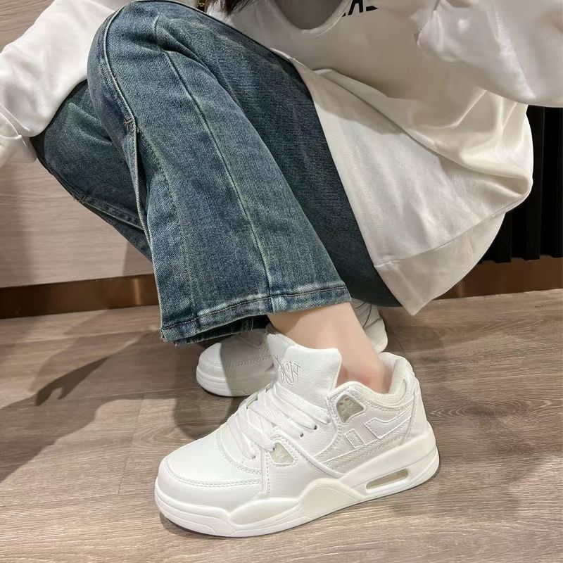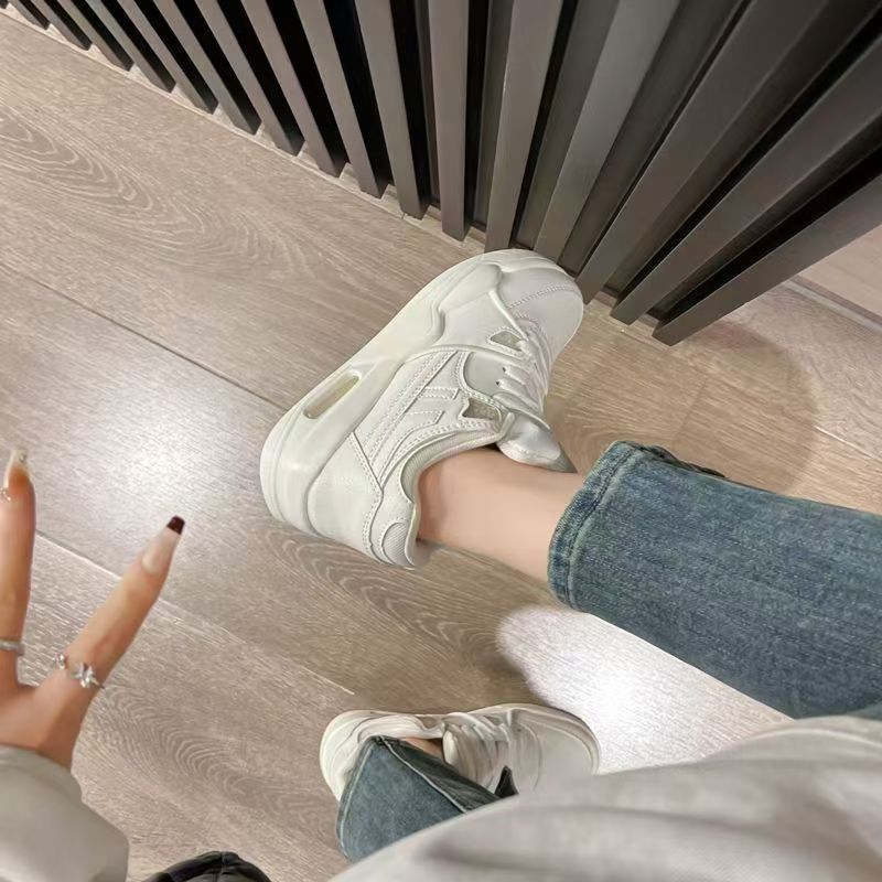2025 весна дикая новая мода мода белая обувь на воздушной подушке баскетбольная обувь детская толстая подошва увеличена маленькая белая обувь женщина
