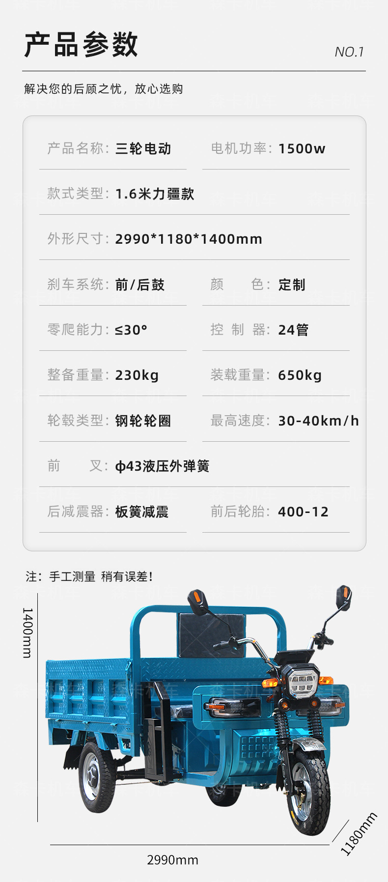 因产品不同,地区不同,运费有所差异,请联系客户咨询运费,自主拍下不发货哦!感谢亲支持,偏远地区包含:浙江省,福建省,广东,广西,海南省,江西,湖北,湖南,黑龙江,吉林,辽宁,新疆,内蒙古,西藏,青海,云,贵,川,宁夏,甘肃,山西,陕西,重庆,河北,香港,澳门,台湾省等。车子属于大件物品哦,运输途中有小的磕碰属于正常现象,介意慎拍,我们有送喷漆修复一下就可以了呢!1.6m电动三轮车标配不含电机和后桥控制器,根据需求咨询客服哦!