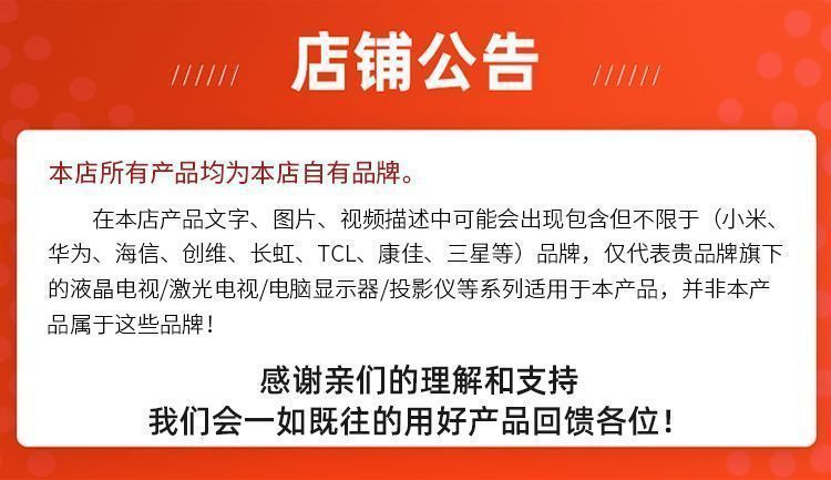 【 32-40inch 】Бренд серии B Нейтральный/20-летняя гарантия качества; 【 43inch 】Серия L всех марок Нейтральный/20 лет гарантии качества; 【 50inch 】Серия L всех марок Нейтральный/20 лет гарантии качества; 【 55inch 】Серия L всех марок Нейтральный/20 лет гарантии качества; 【 58inch 】Серия L всех марок Нейтральный/20 лет гарантии качества; 【 60inch 】Серия L всех марок Нейтральный/20 лет гарантии качества; 【 65inch 】Серия L всех марок Нейтральный/20 лет гарантии качества; 【 70inch 】Серия L всех марок Нейтральный/20 лет гарантии качества; 【 75-80inch 】Бренд серии P Нейтральный/20-летняя гарантия качества; 【 85-90inch 】Серия бренда Neutral/20-летняя гарантия качества; 【 95inch 】Серия всех брендов Нейтральная/20-летняя гарантия качества; 【 100inch 】Серия всех брендов Нейтральная/20-летняя гарантия качества; 【 110inch 】Серия всех брендов Нейтральная/20-летняя гарантия качества; 【 120inch 】Серия всех брендов Нейтральная/20-летняя гарантия качества