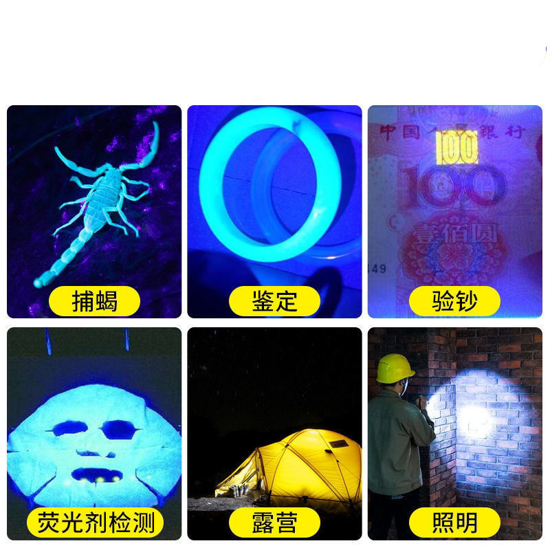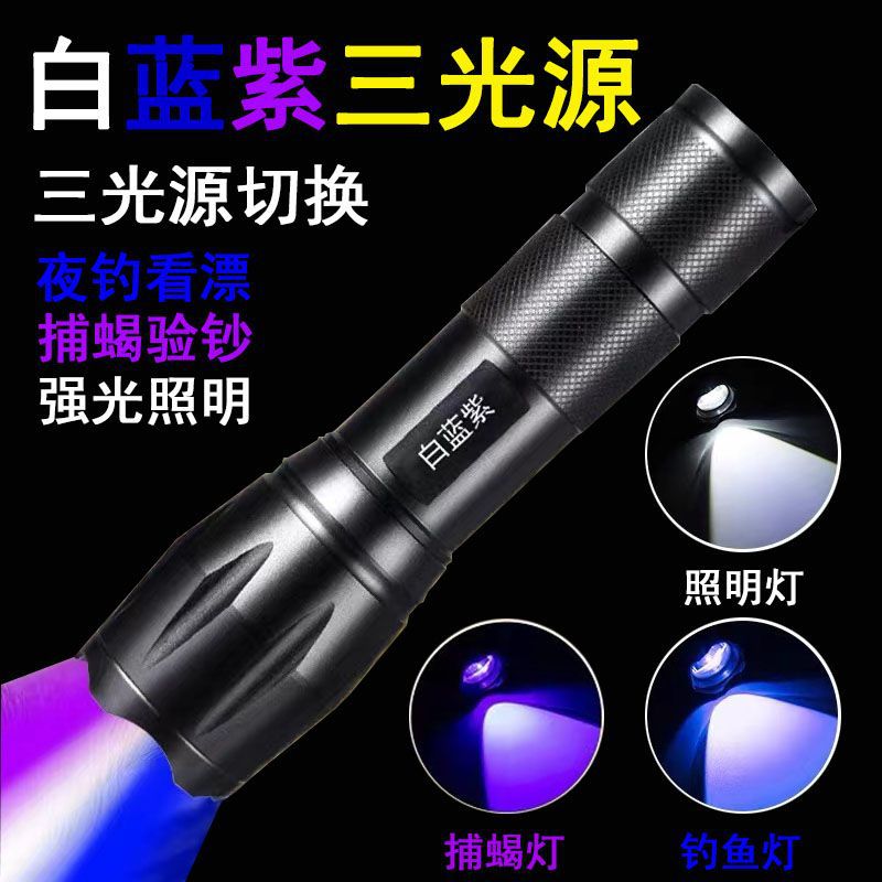 УФ-фонарь с перезаряжаемой батареей, светодиодный инспекционный фонарь, три источника света (белый, синий, фиолетовый), фонарь-«скорпион», ручной, из алюминиевого сплава